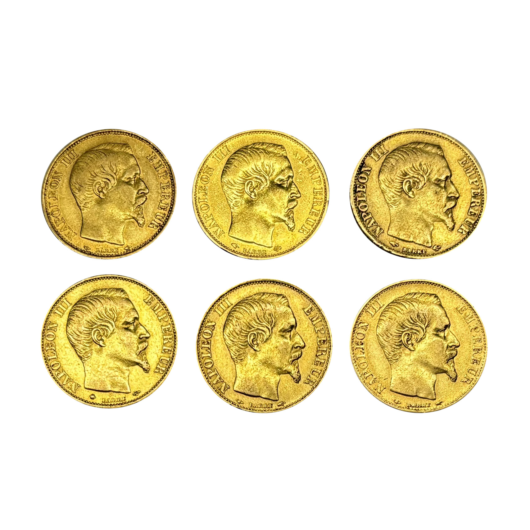 75. Lot format din 6 monede de 20 Franci, aur, Franța