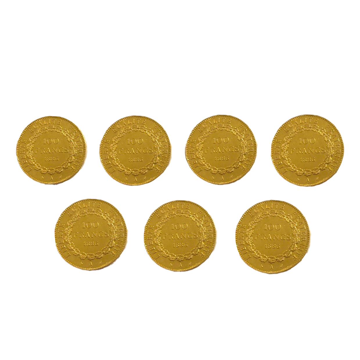 76. Lot format din 7 monede de 100 Franci, aur, Franța, 1886