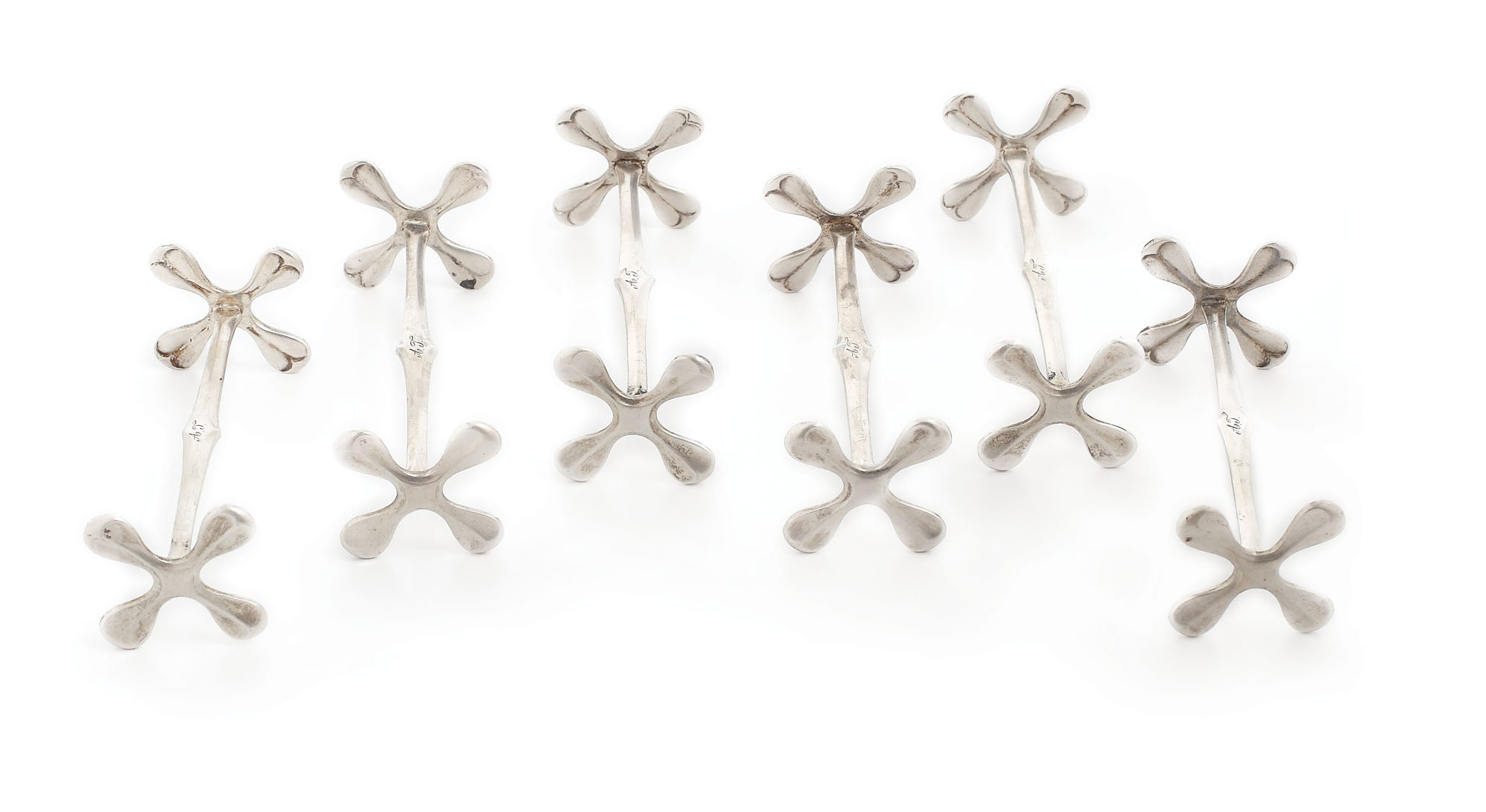 303. Set de 6 suporturi din argint, pentru tacâmuri, 1858