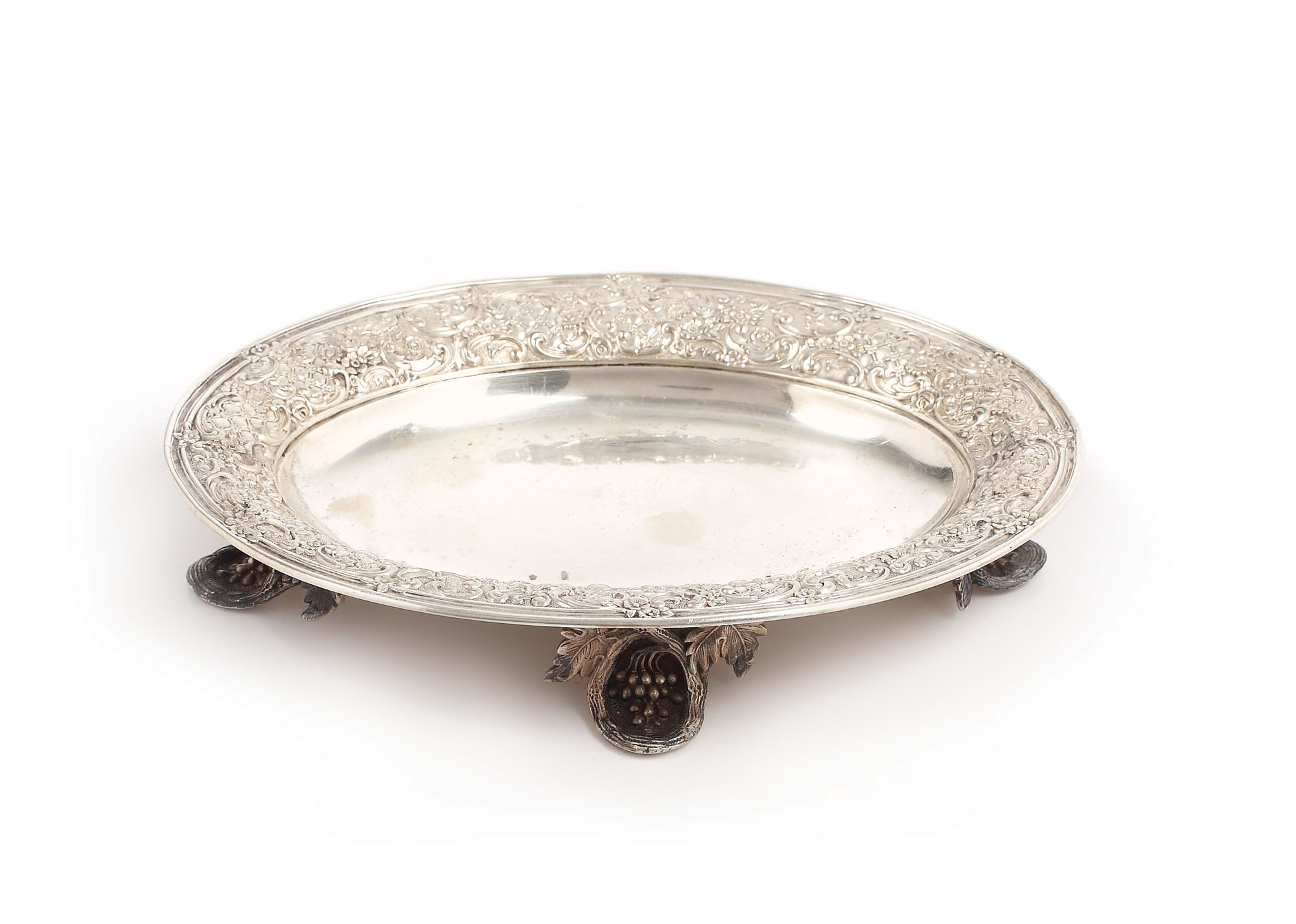 Vide-poche pe picioare mici frunză de viță cu struguri, corp oval, cu buză subliniată cu friză rocaille.