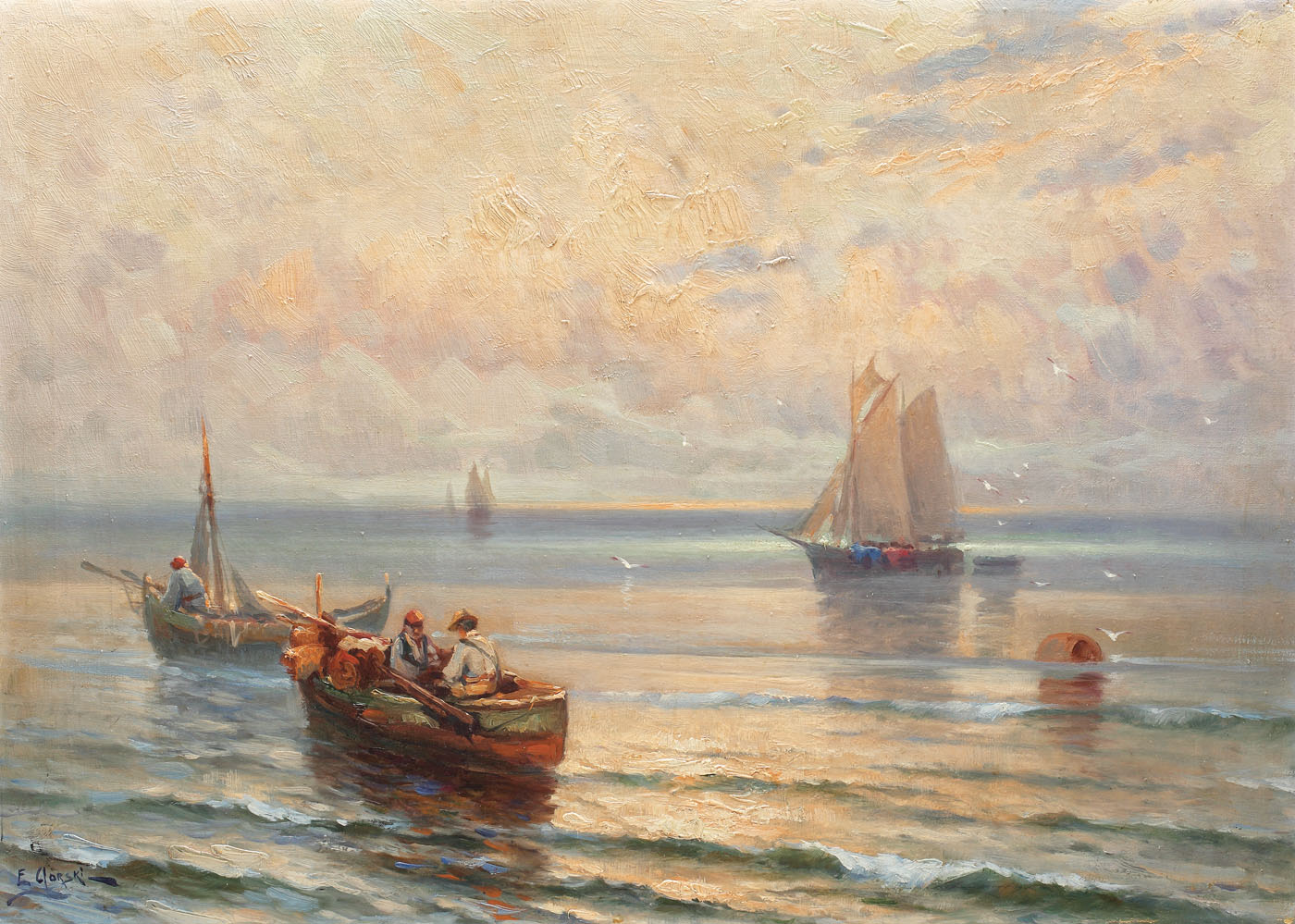 semnat stânga jos, cu albastru, E. Gorski