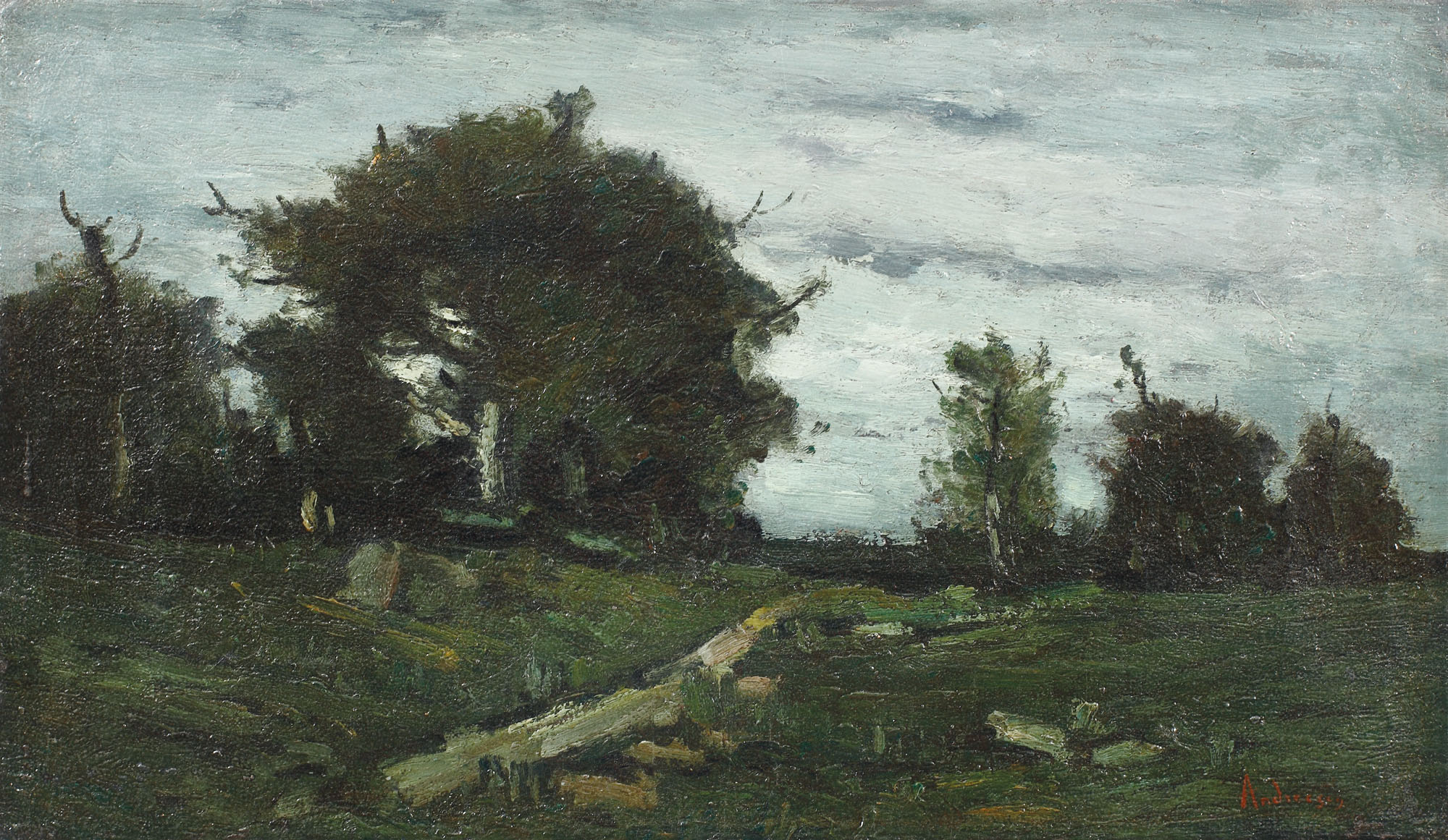 Andreescu își începea educația artistică superioară la recent înfiinţata secţie de desen liniar şi caligrafie a Şcolii Naţionale de Arte Frumoase, condusă de Theodor Aman. Viitorul artist frecventează timp de doi ani cursurile de desen şi, sporadic, pe cele de pictură, unde constată că nu este atras de stilul practicat de Aman sau de Tattarescu şi nici de lecţiile de desen artistic pe care aceştia le predau. Cursurile pe care le găsea interesante erau cele ţinute de C. I. Stăncescu, profesor de estetică şi istoria artei. De la acesta, Andreescu a aflat pentru prima dată de artiştii de la Barbizon şi de noile principii ale picturii de peisaj, prin care putea înţelege picturile lui Nicolae Grigorescu. Opera acestuia, prin noutatea şi semnificaţiile pe care le aducea, avea să aibă ecouri adânci în creaţia lui Andreescu. Anii de încercări și experimente aveau să îl conducă finalmente către Franța, unde, sub influența lui Grigorescu, va căuta pictura în plein-air și exercițiul în natură. La 29 de ani, în 1879, Andreescu ajungea în Paris, unde se înscria la binecunoscuta Academie Julian. Chiar dacă o va frecventa cu întreruperi până în 1881, anul reîntoarcerii în țară, Andreescu nu va resimți în urma contactului influențe ce au depășit granițele atelierelor de creație. Poate și lipsa unor nume mari din rândul culturii franceze a transformat vizitele pictorului doar în etape de studiu de laborator în care, dincolo de cercetare și exercițiu, a căutat să își desăvârșească unele procedee exclusiv coordonate de tehnică. După câteva luni petrecute la Paris, Andreescu pleacă la Barbizon, moment intuitiv în cariera artistului. Desigur că la un nivel ideatic putem admite că pictorul călătorește în binecunoscuta colonie în căutarea naturii, în aceeași manieră pe care o cunoștea de la membrii școlii de peisaj de la Barbizon. Creația anilor petrecuți în Franța (1879-1881) avea să devină cea care l-a plasat pe Andreescu în vârful impresionismului românesc, chiar mai sus decât Nicolae Grigorescu. Într-o execuție spontană, drept urmare rapidă, în care improvizația pare să certifice apariția reală, pictorul concepe una dintre tipicele compoziții cu margini de pădure. Chiar dacă compoziția pare spontană ea este în realitate rodul unei observații îndelungate, transpusă sub imperiul cerebralității tipice unui artist totuși realist. În ceea ce privește alegerea paletei, aceasta are o trăire picturală visceral unită de cea a tușei, făcând din culoare prelungirea materială a întregului bagaj senzorial. Întreaga suprafață picturală este împânzită de tușe ce la o primă vedere nu își găsesc locul în alcătuirea formei, însă, fără aportul lor, aspectul de firesc, translucid și natural nu ar putea fi atins.