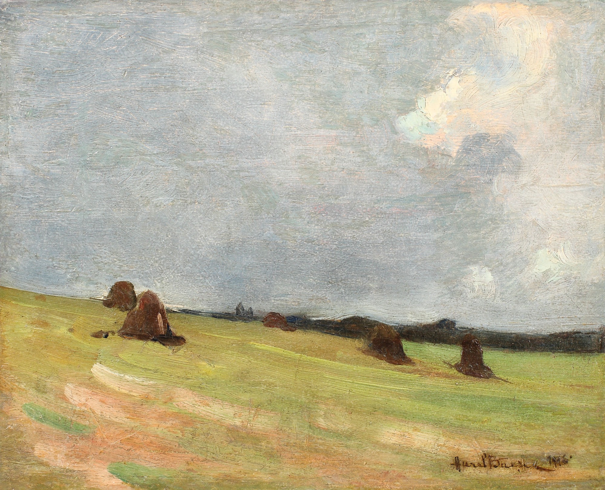 semnat şi datat dreapta jos, cu negru, "Aurel Băeşu, 1915"