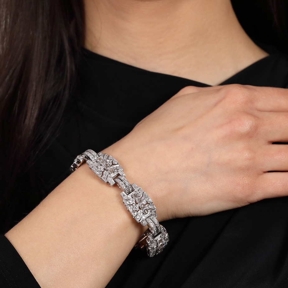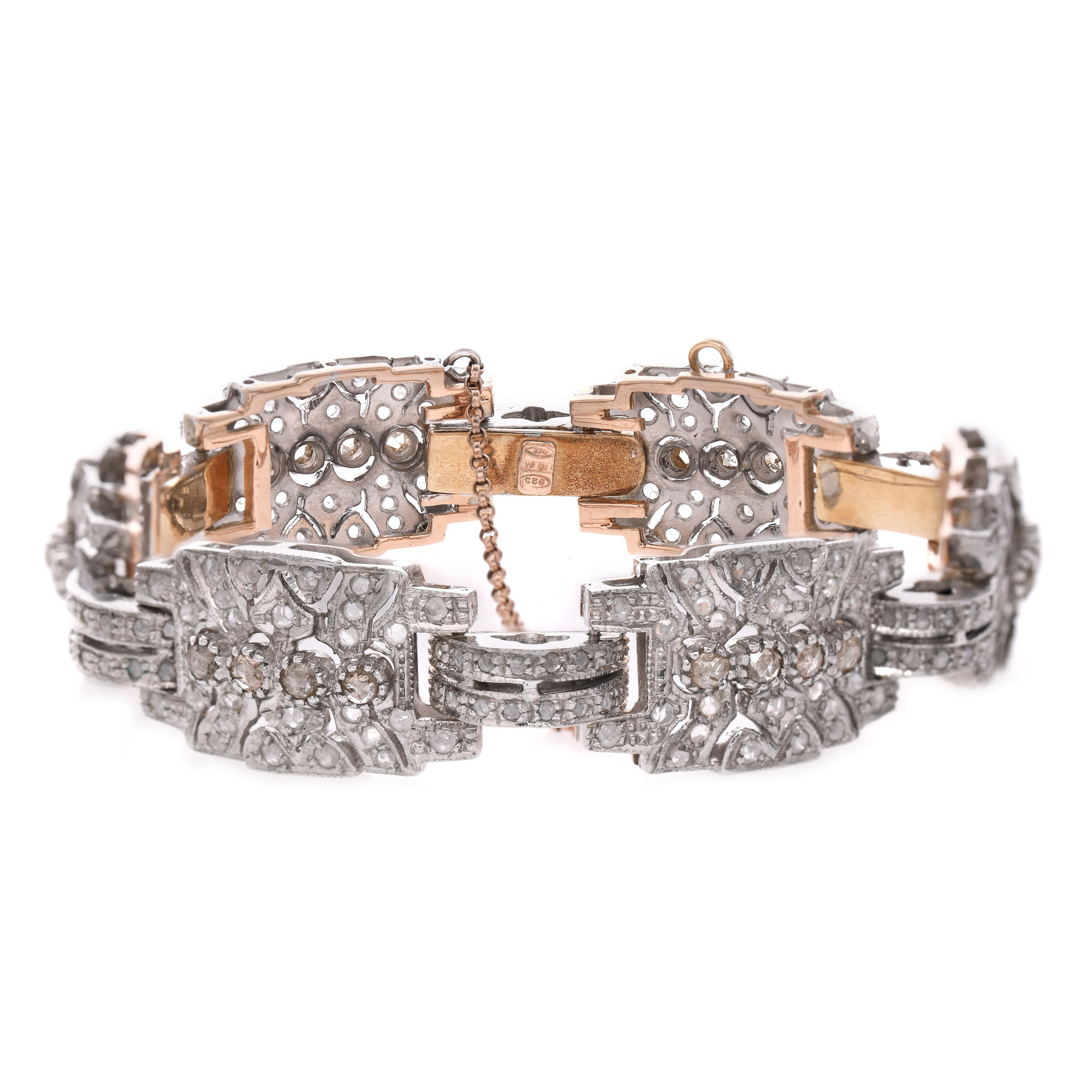 68. Brățară Art Deco din aur roșu și argint, ornată cu diamante, cca. 1930-1940