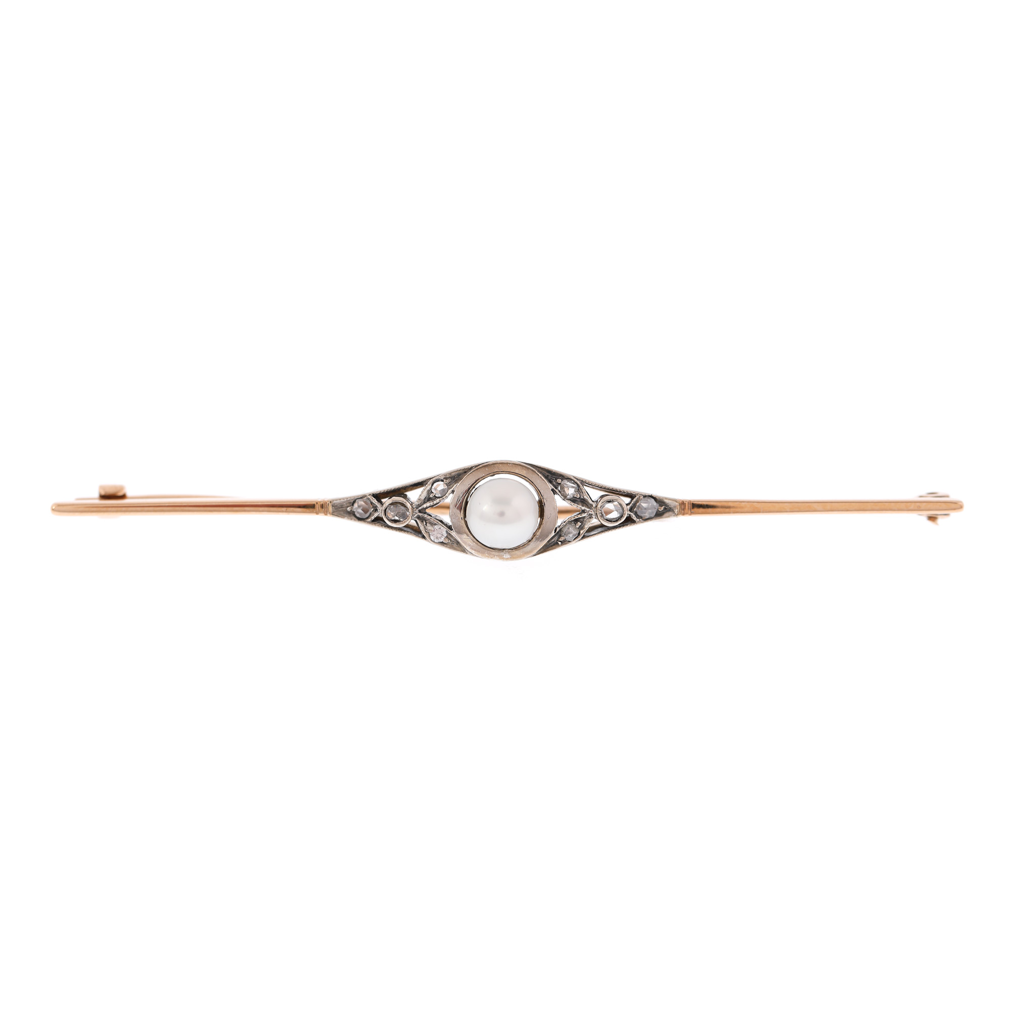 71. Broșă Art Deco din aur și argint, decorată cu perlă și diamante, cca. 1920-1930