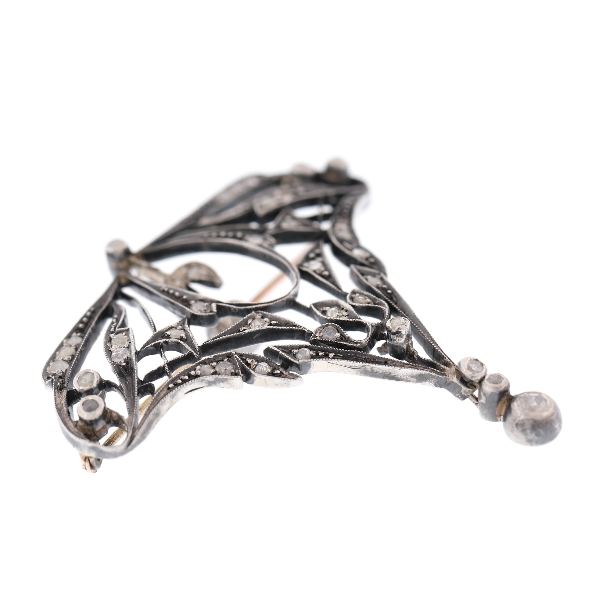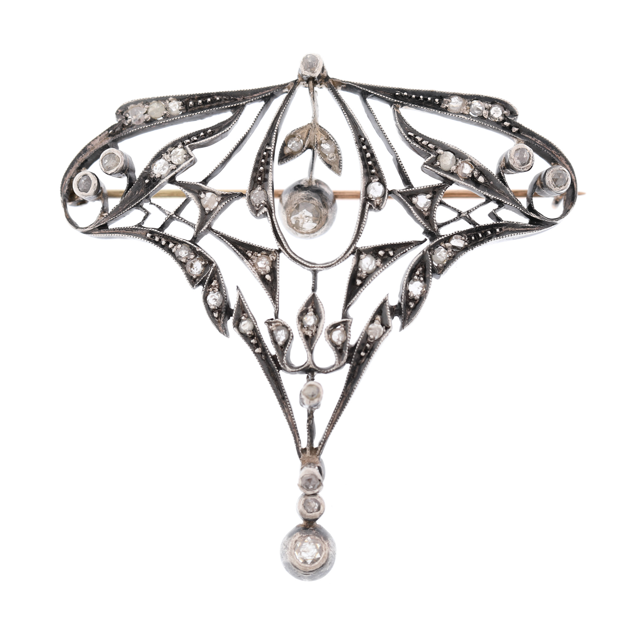 75. Broșă Art Nouveau din aur roz și argint, decorată cu diamante, cca. 1900