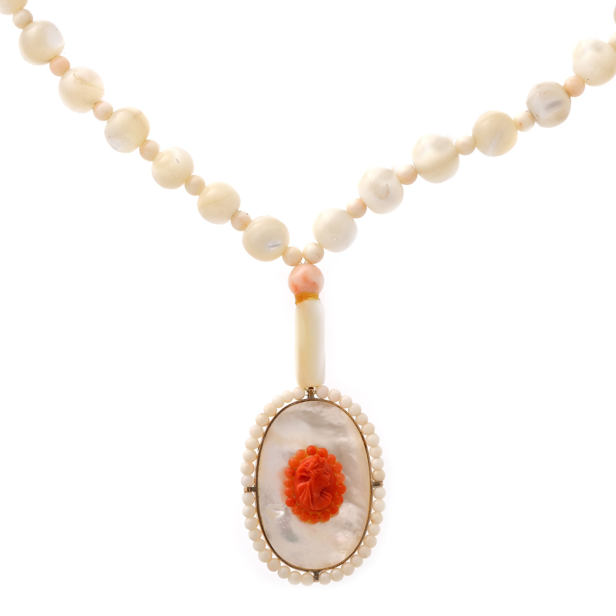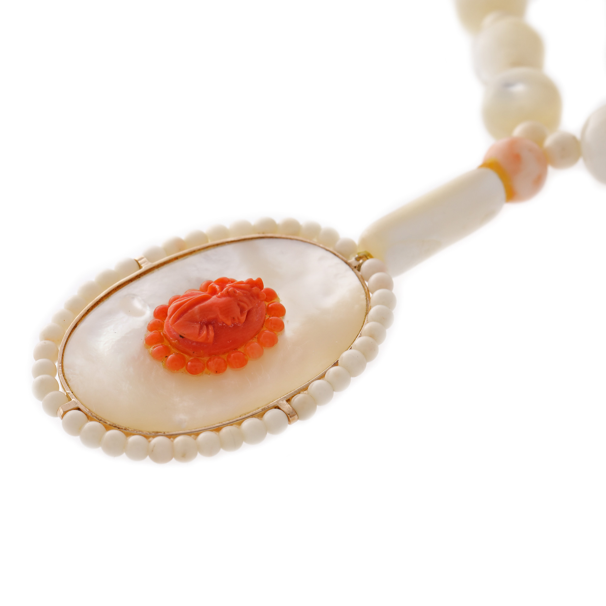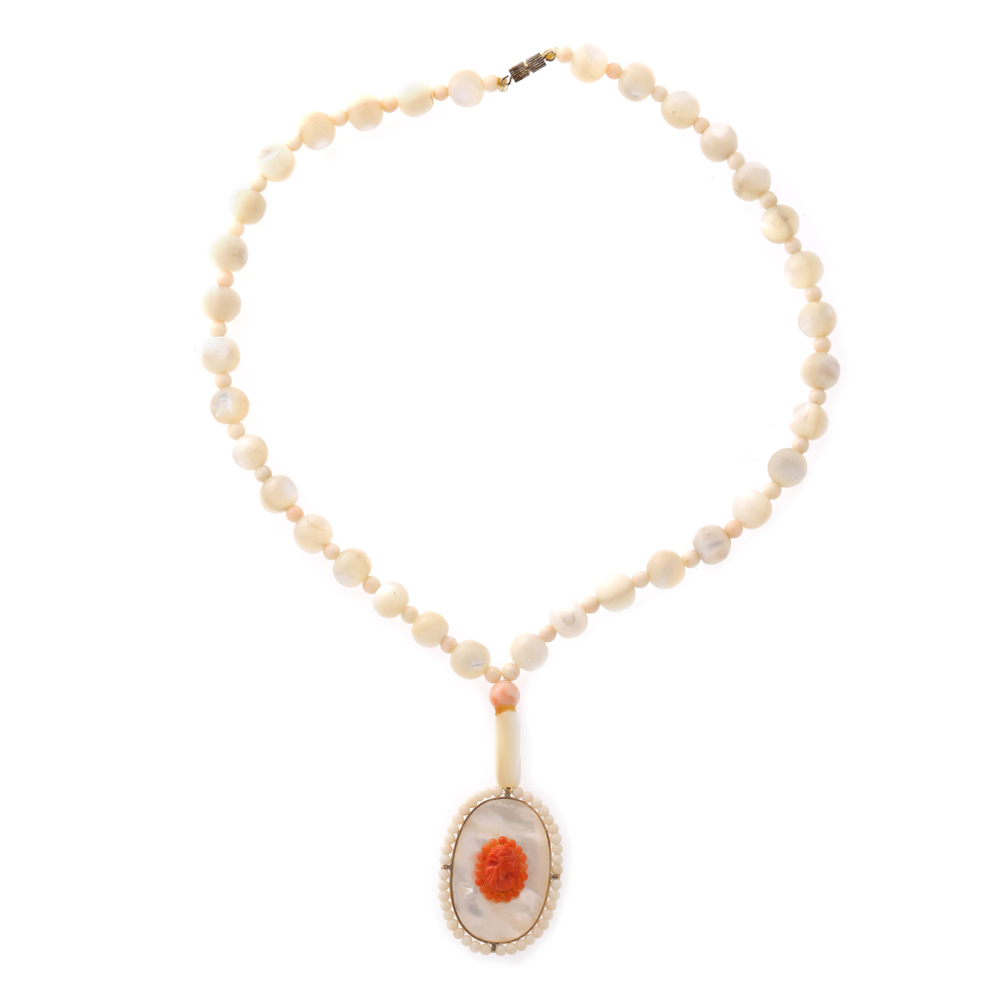 79. Colier din sidef, decorat cu coral sculptat [Cca. 1950-1960]