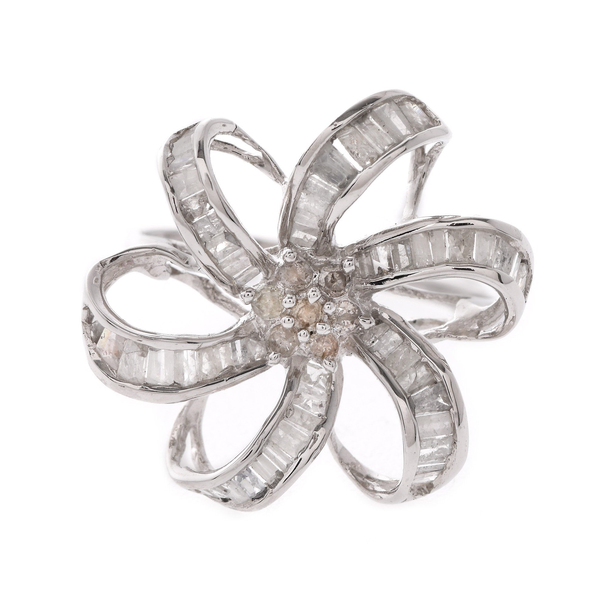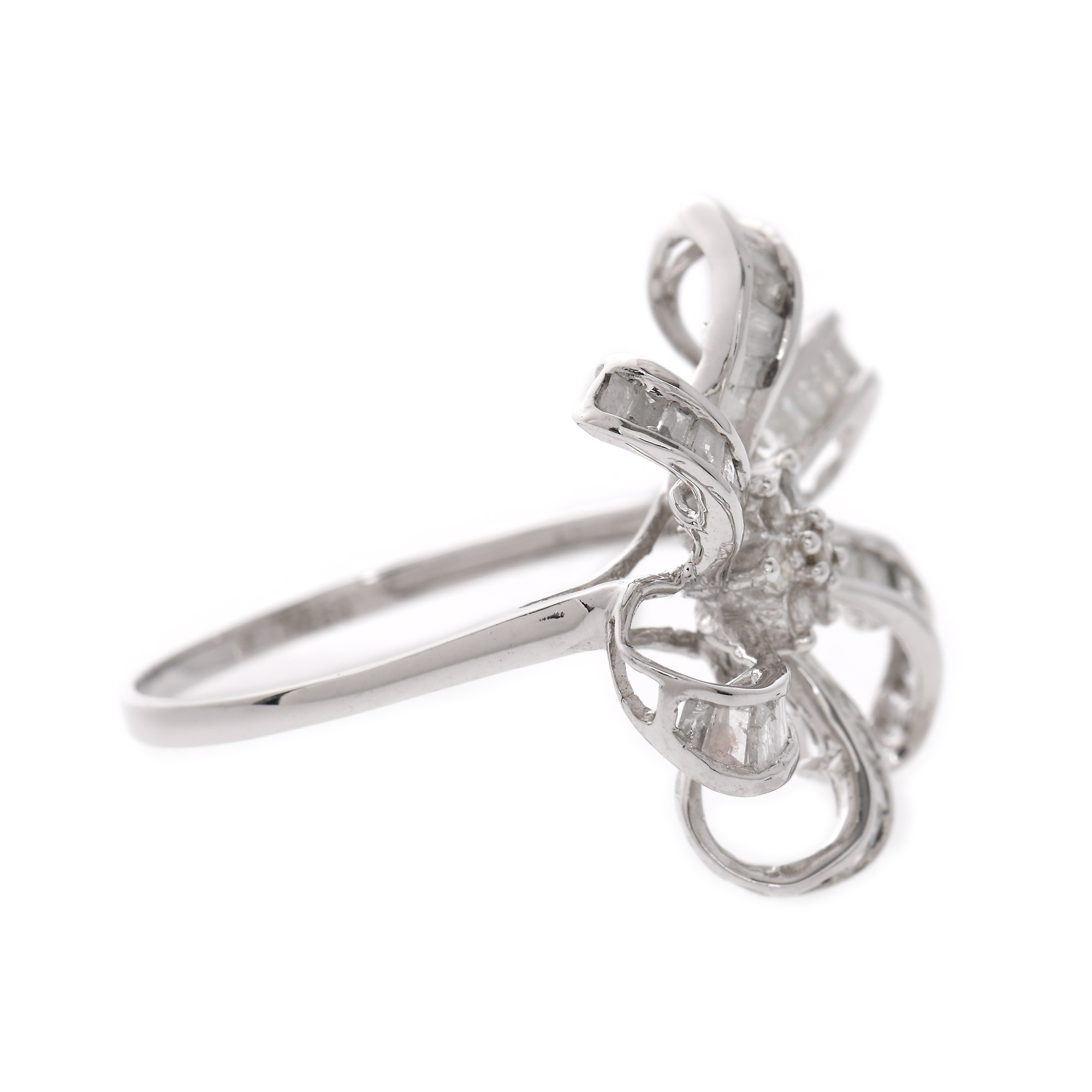 94. Inel din aur alb, decorat cu diamante briliante și baghete