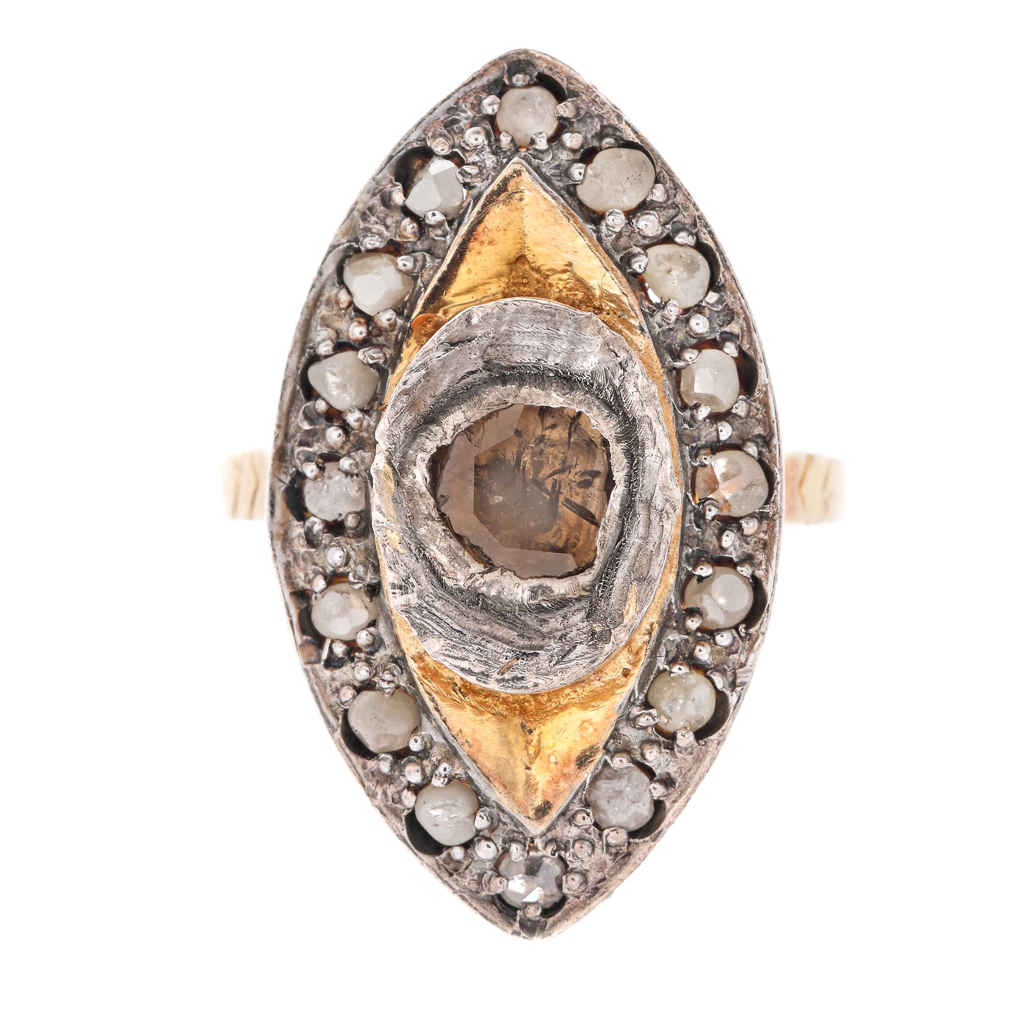 17 diamante rose cut, culoare L-T, claritate I2-I3, cca. 0,60 ct.