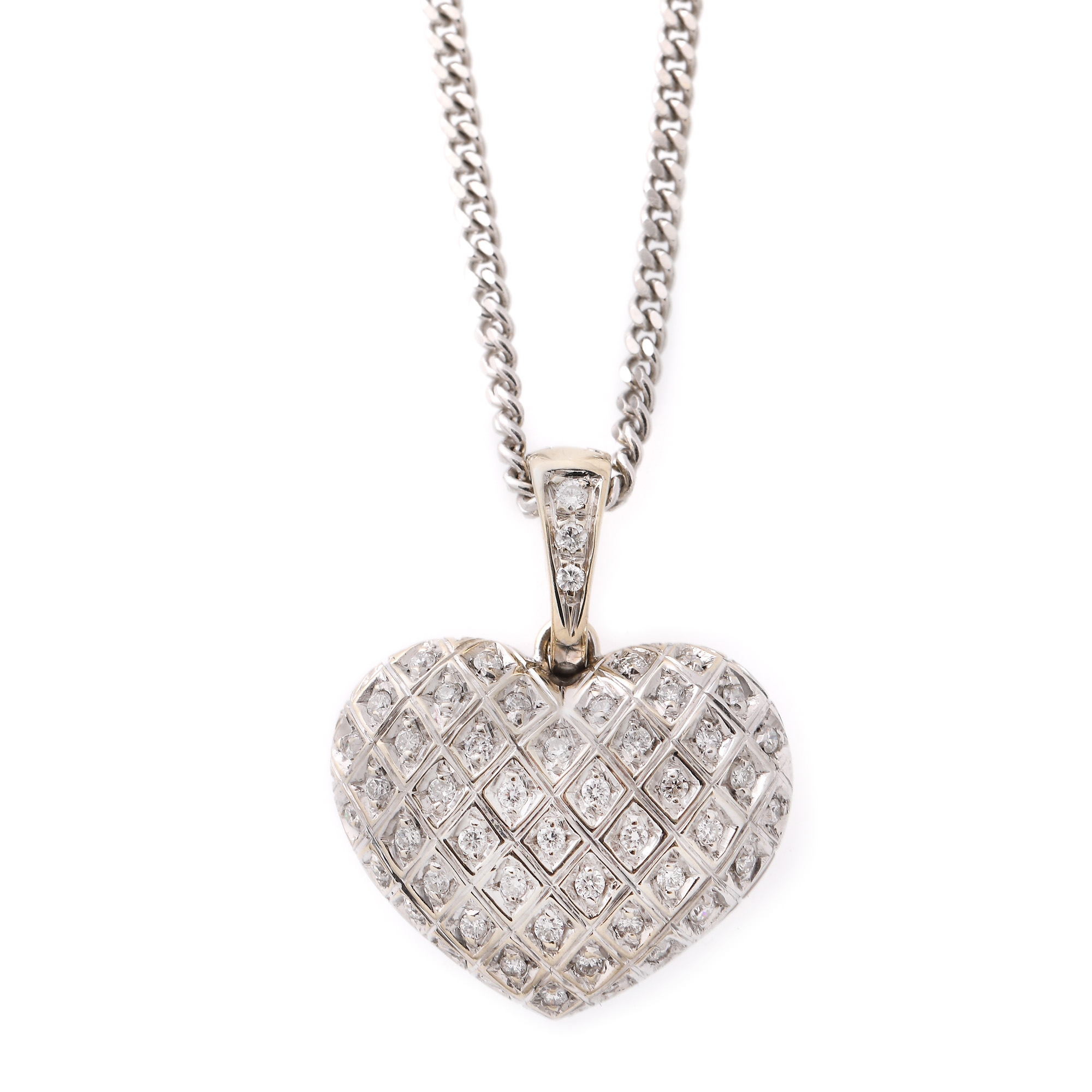 88. Lanț cu pandantiv din aur alb, decorat cu diamante