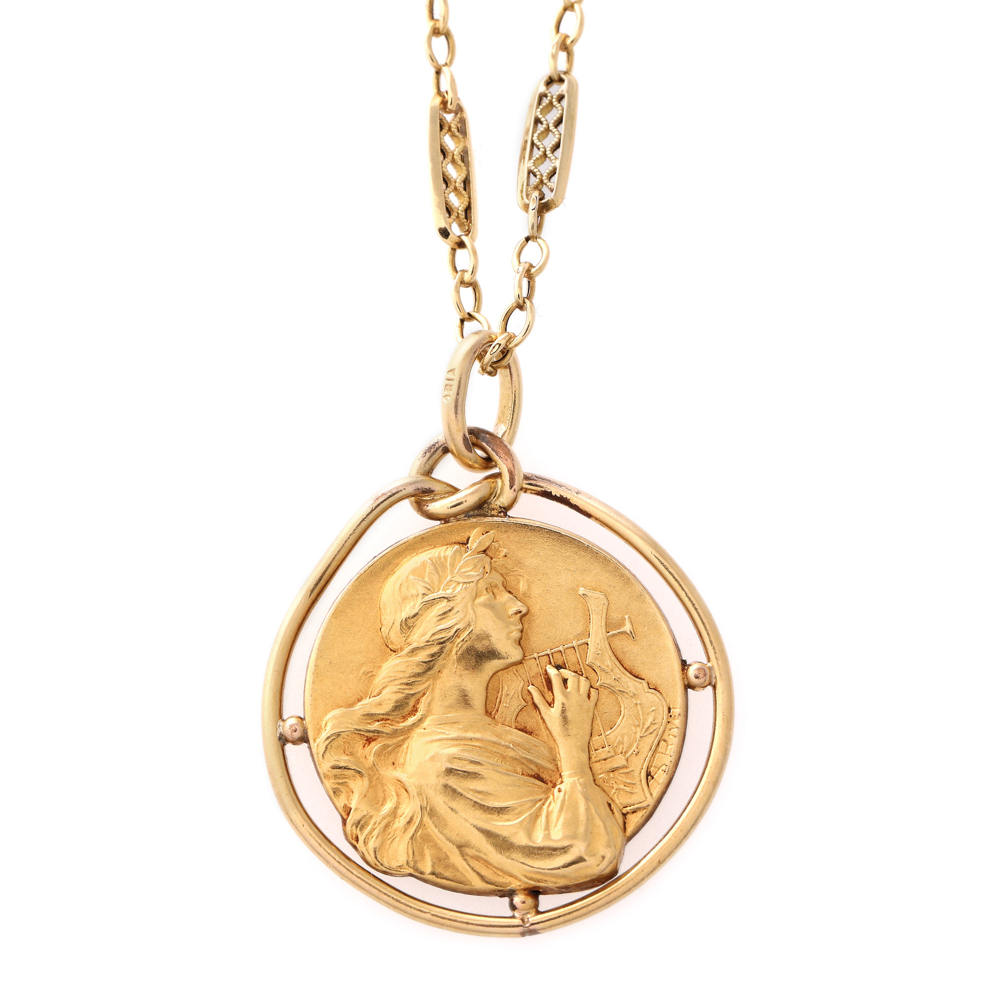 82. Lanț cu pandantiv din aur în stil Art Nouveau, autor Adolphe Rivet, cca. 1890-1900
