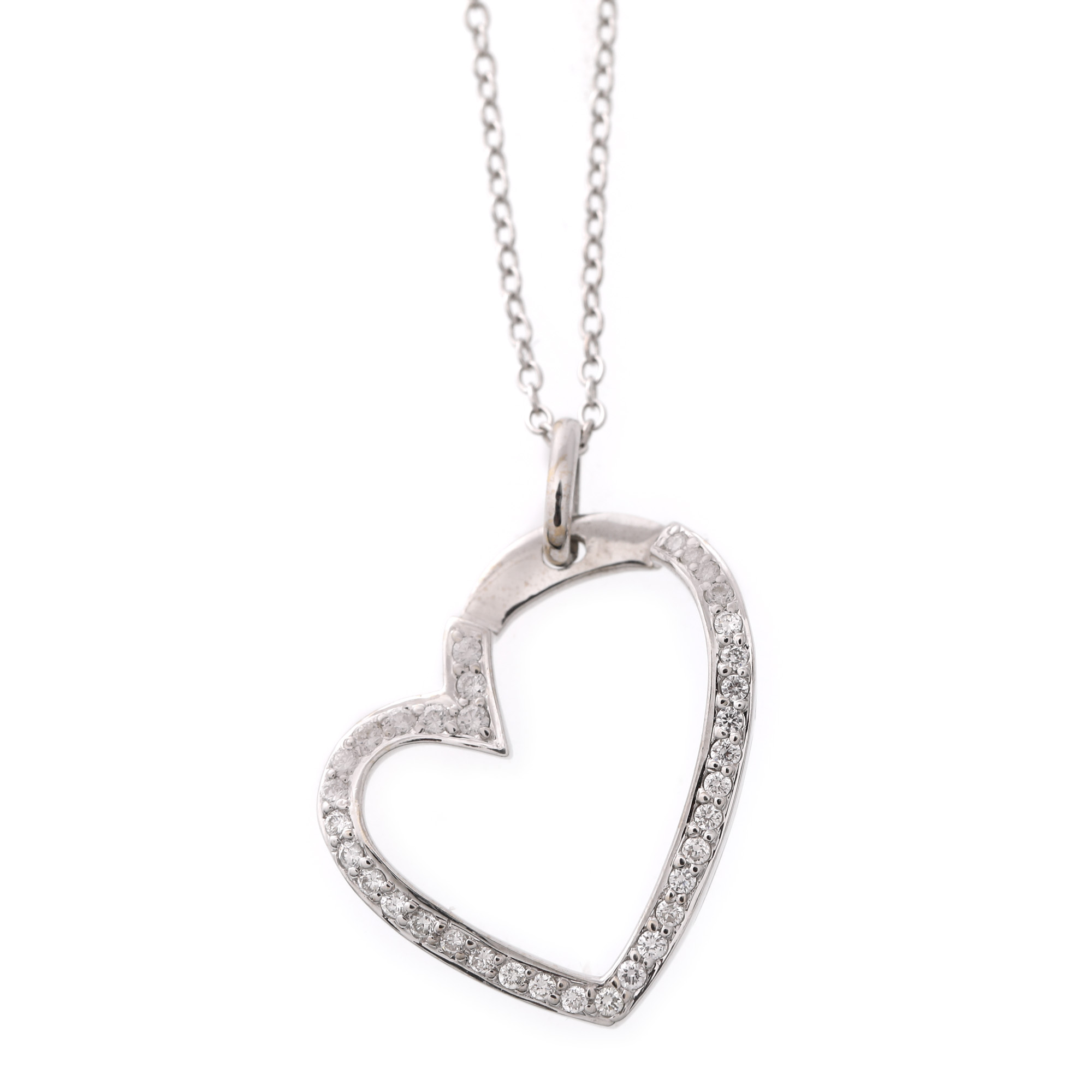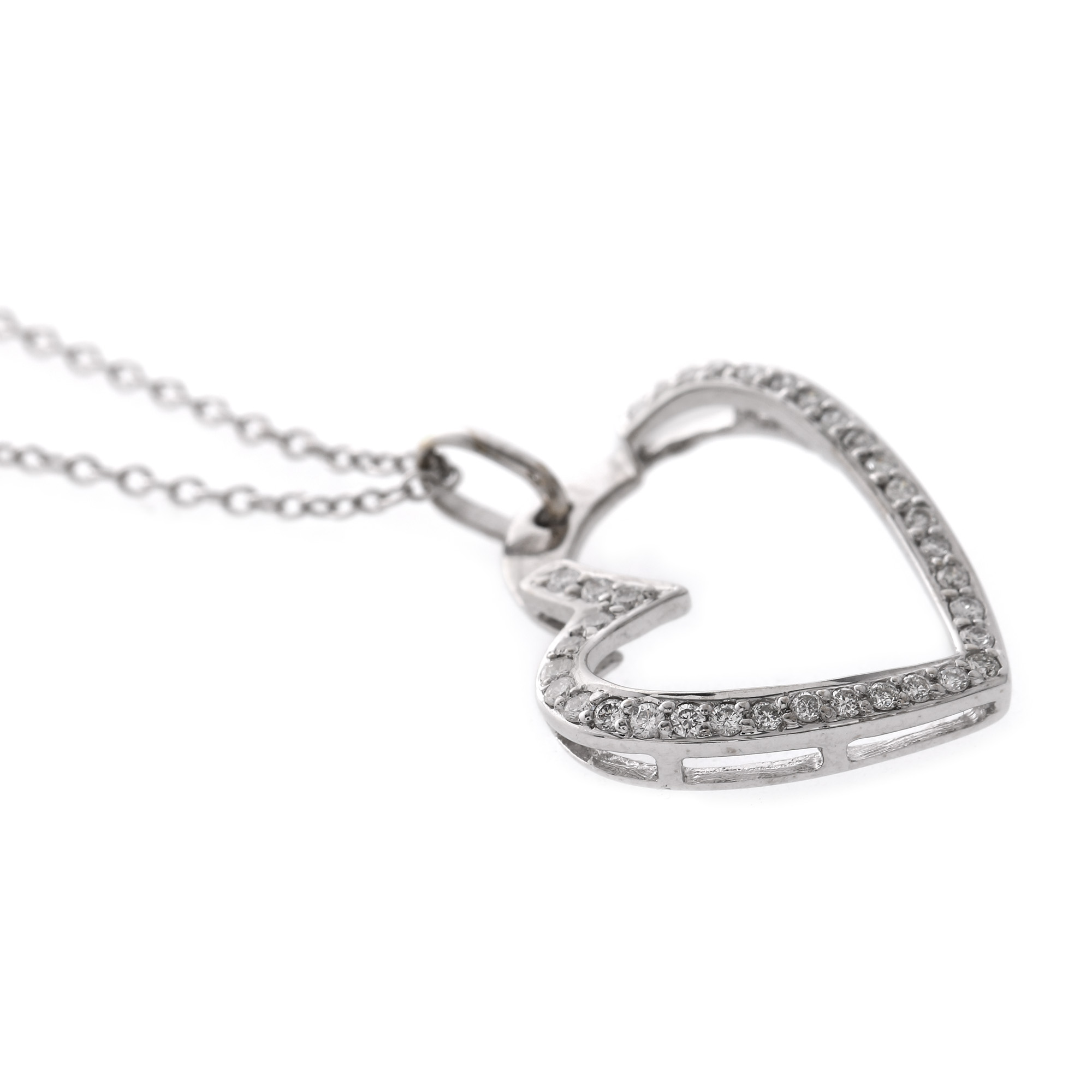 95. Lanț cu pandantiv în formă de inimă din aur alb, decorat cu diamante