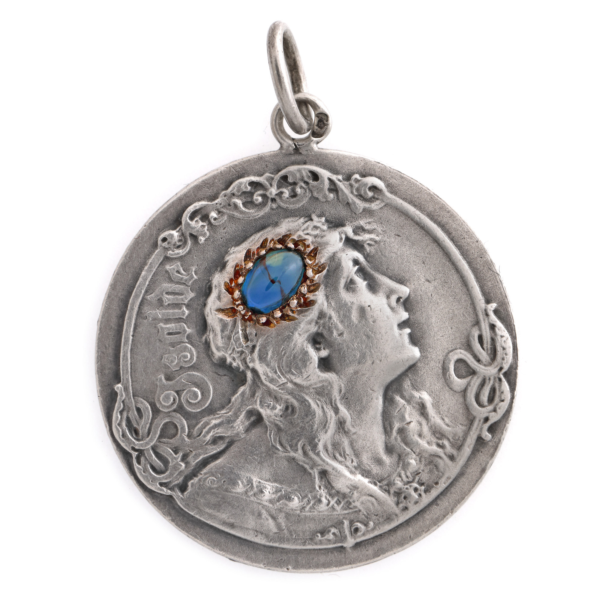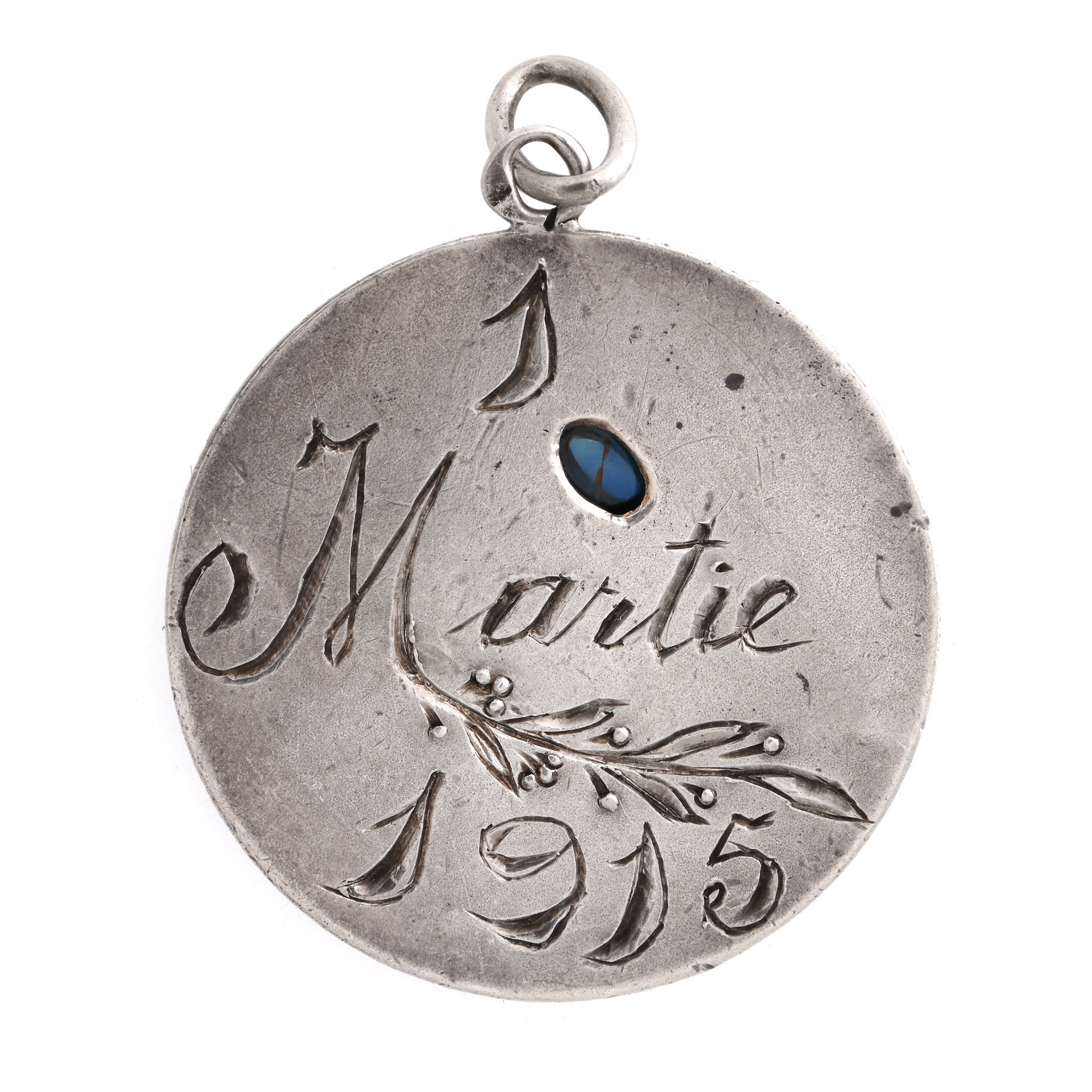 84. Pandantiv Art Nouveau din argint, decorat cu safir, marcat verso 1 martie 1915