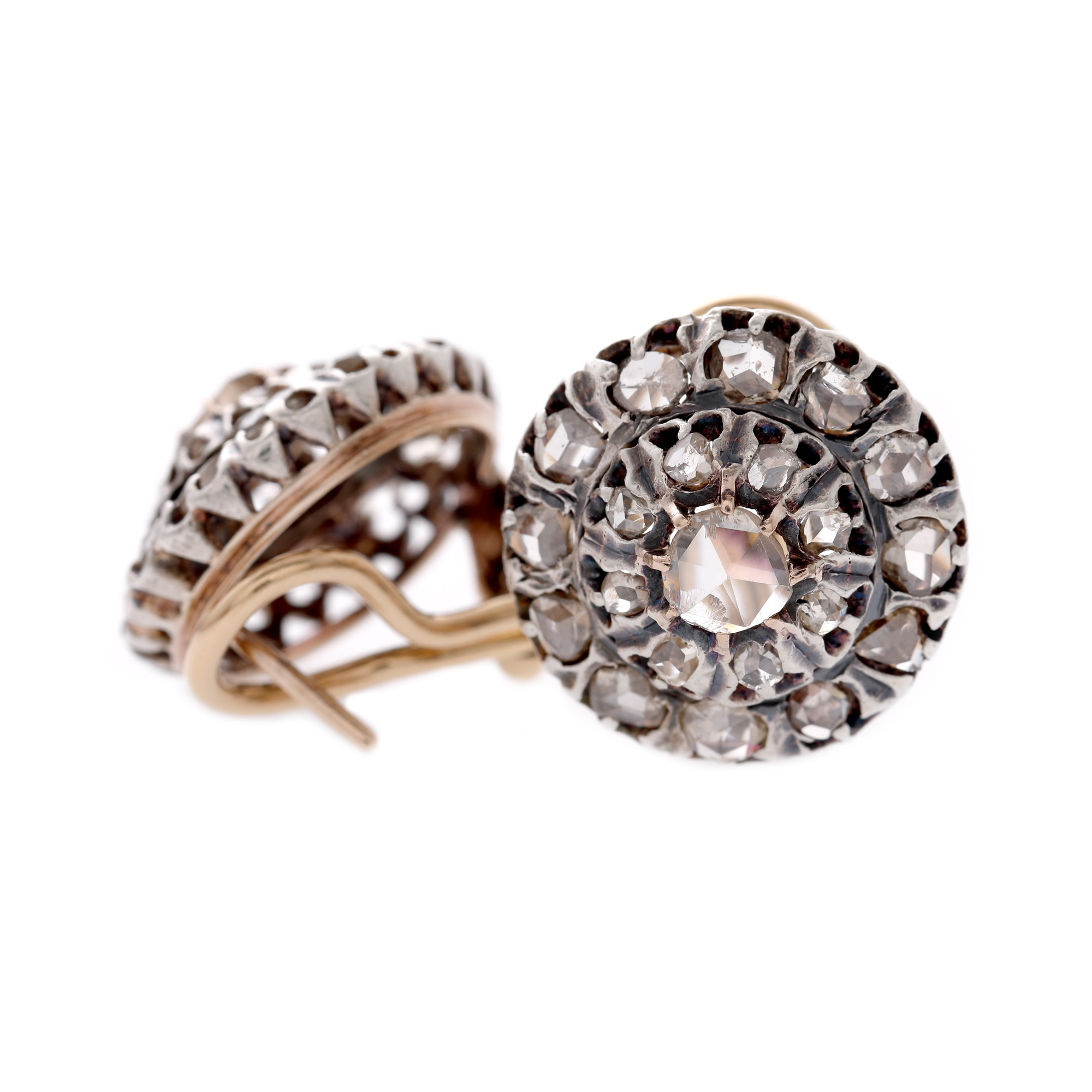 73. Pereche de cercei din aur și argint, decorată cu diamante, începutul sec. XX