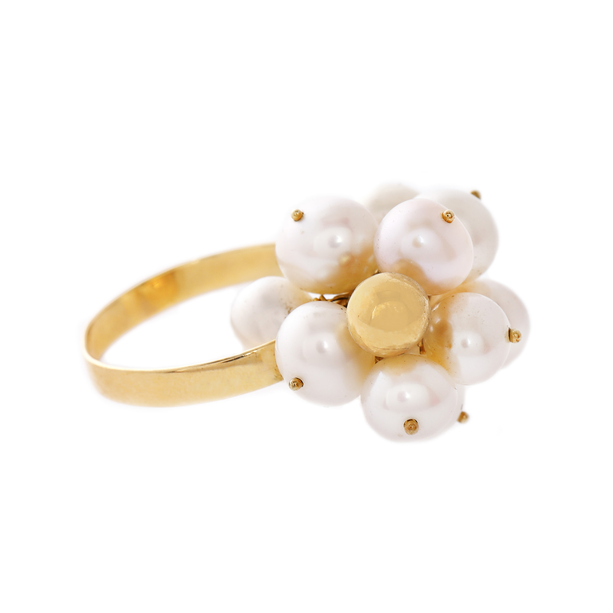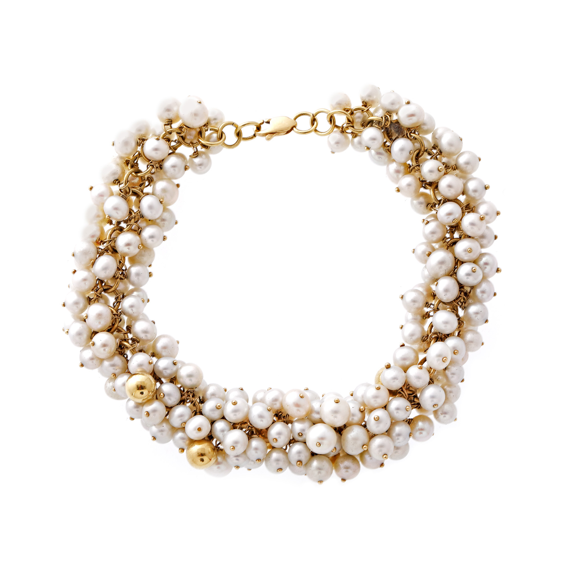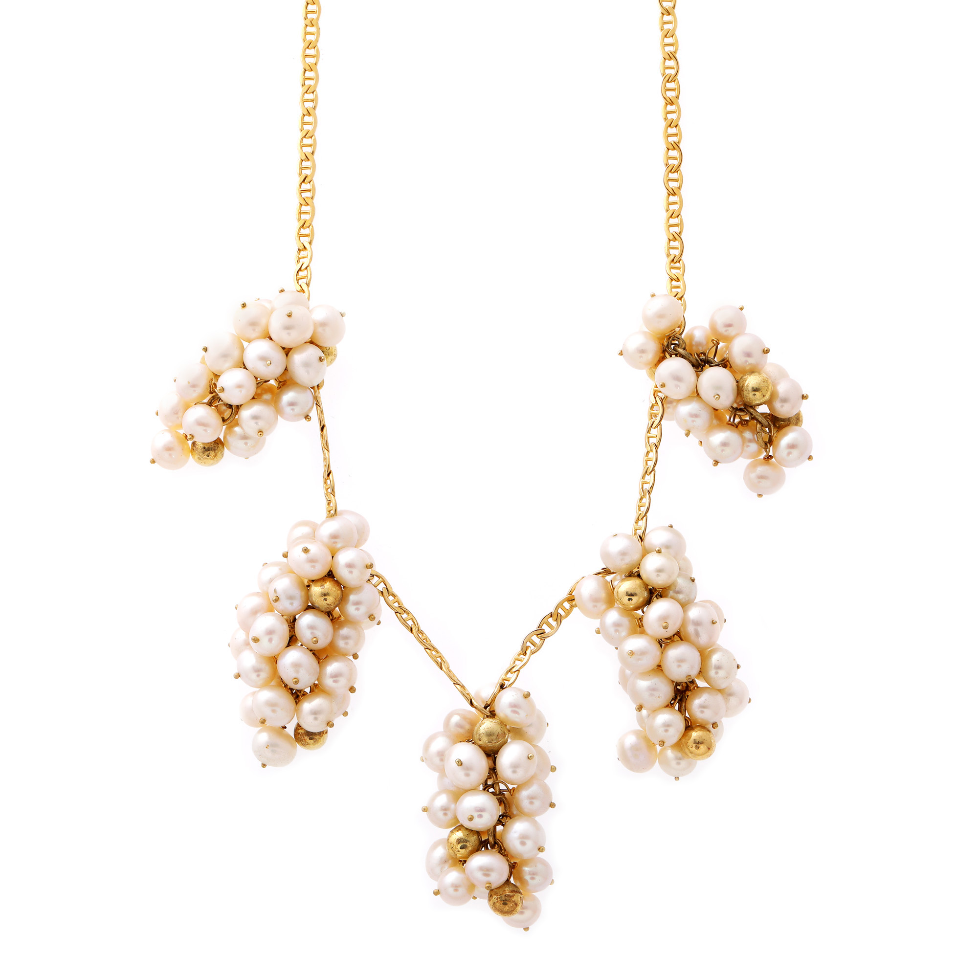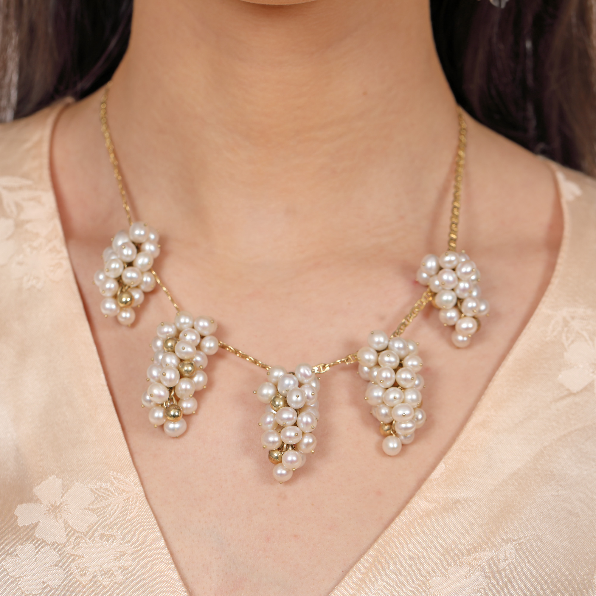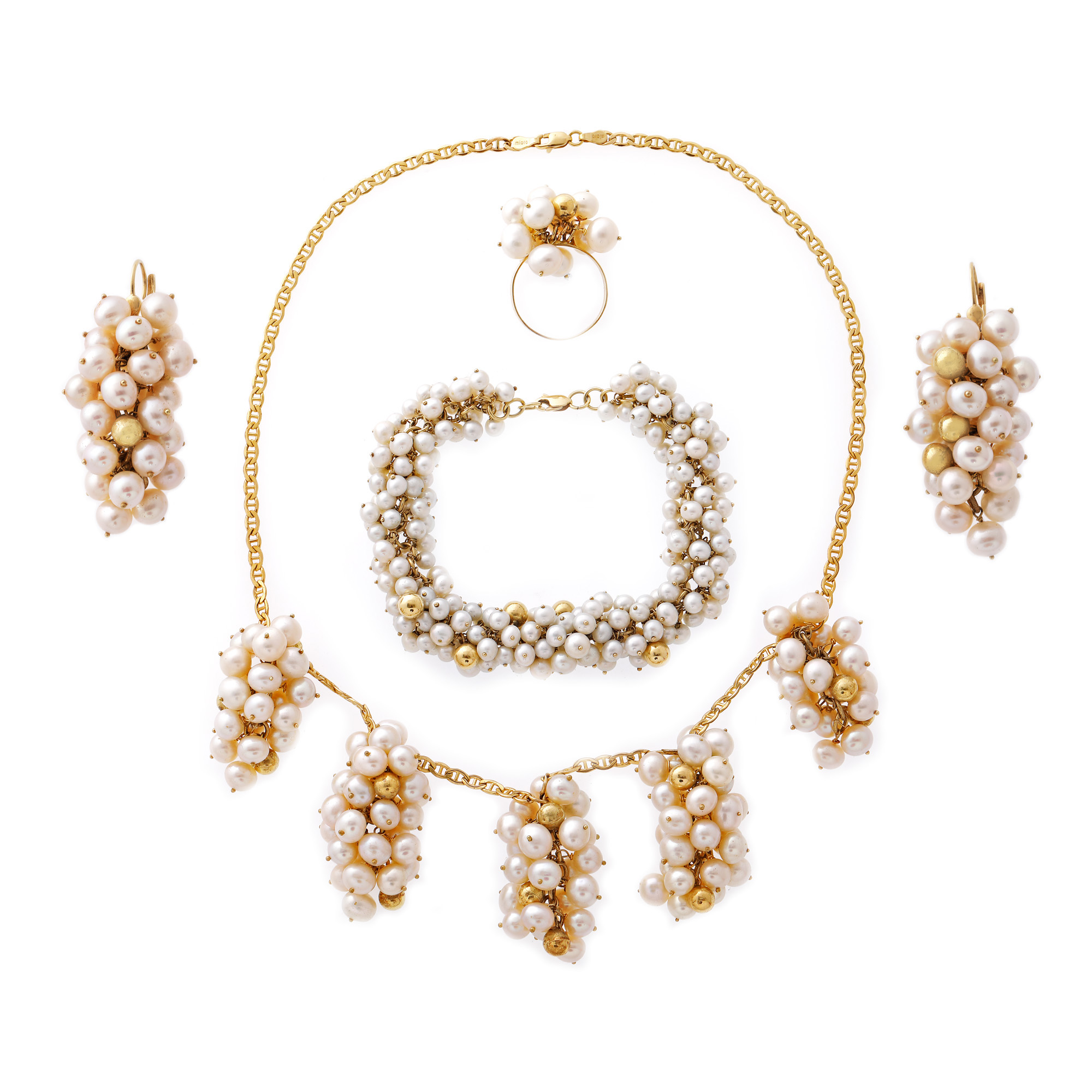 86. Set din aur, format din colier, brățară, inel și pereche de cercei, ornat cu perle