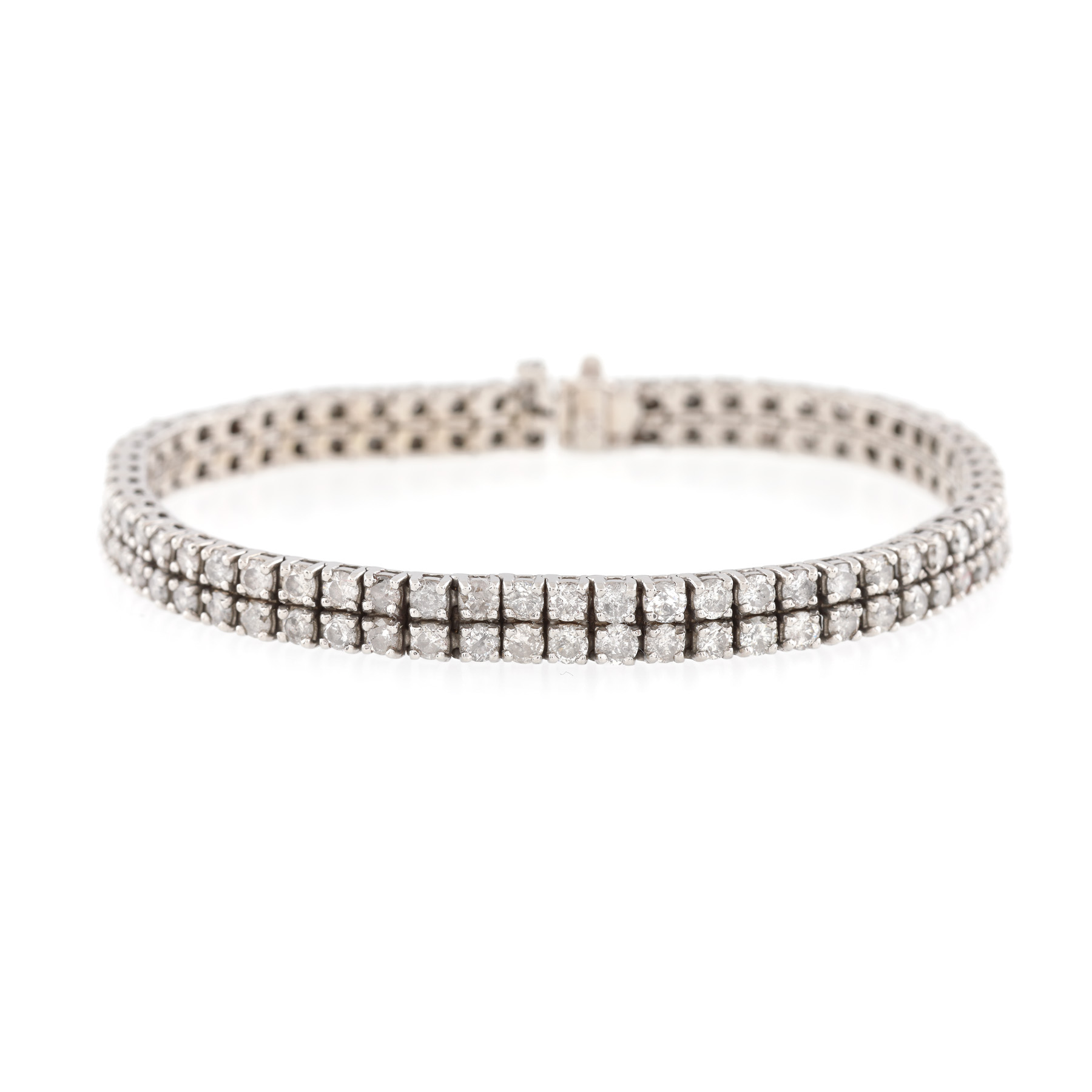 225. Brățară tennis din aur alb, decorată cu două rânduri de diamante