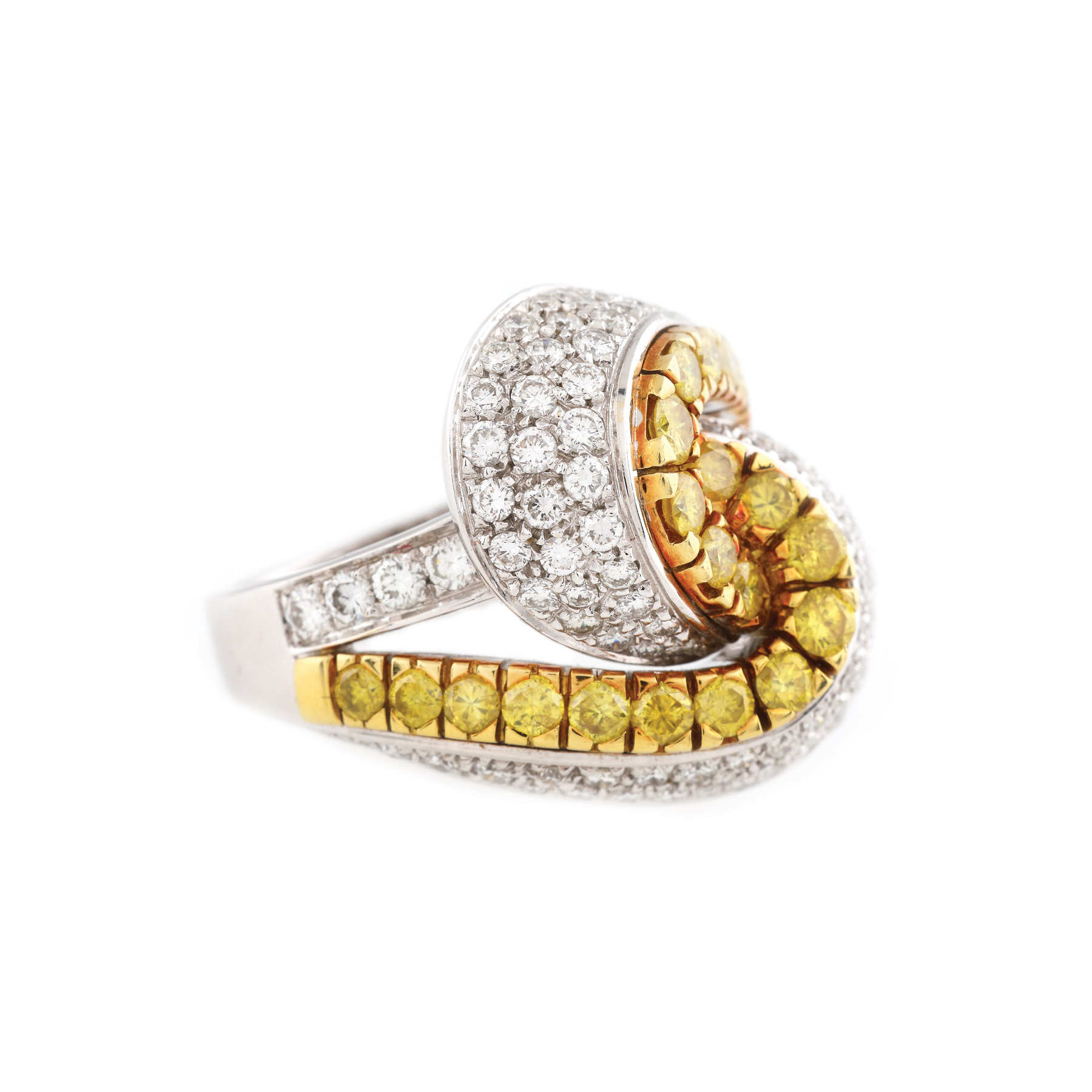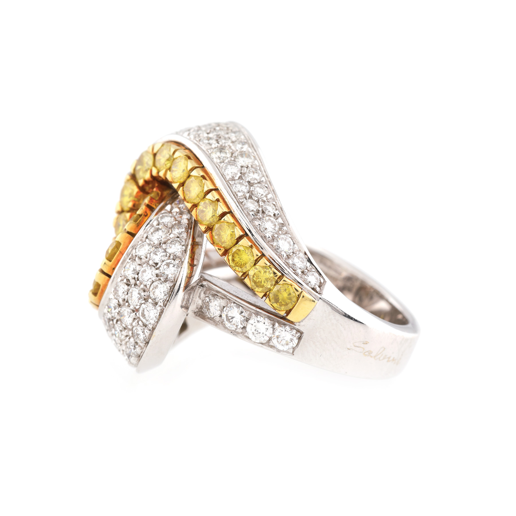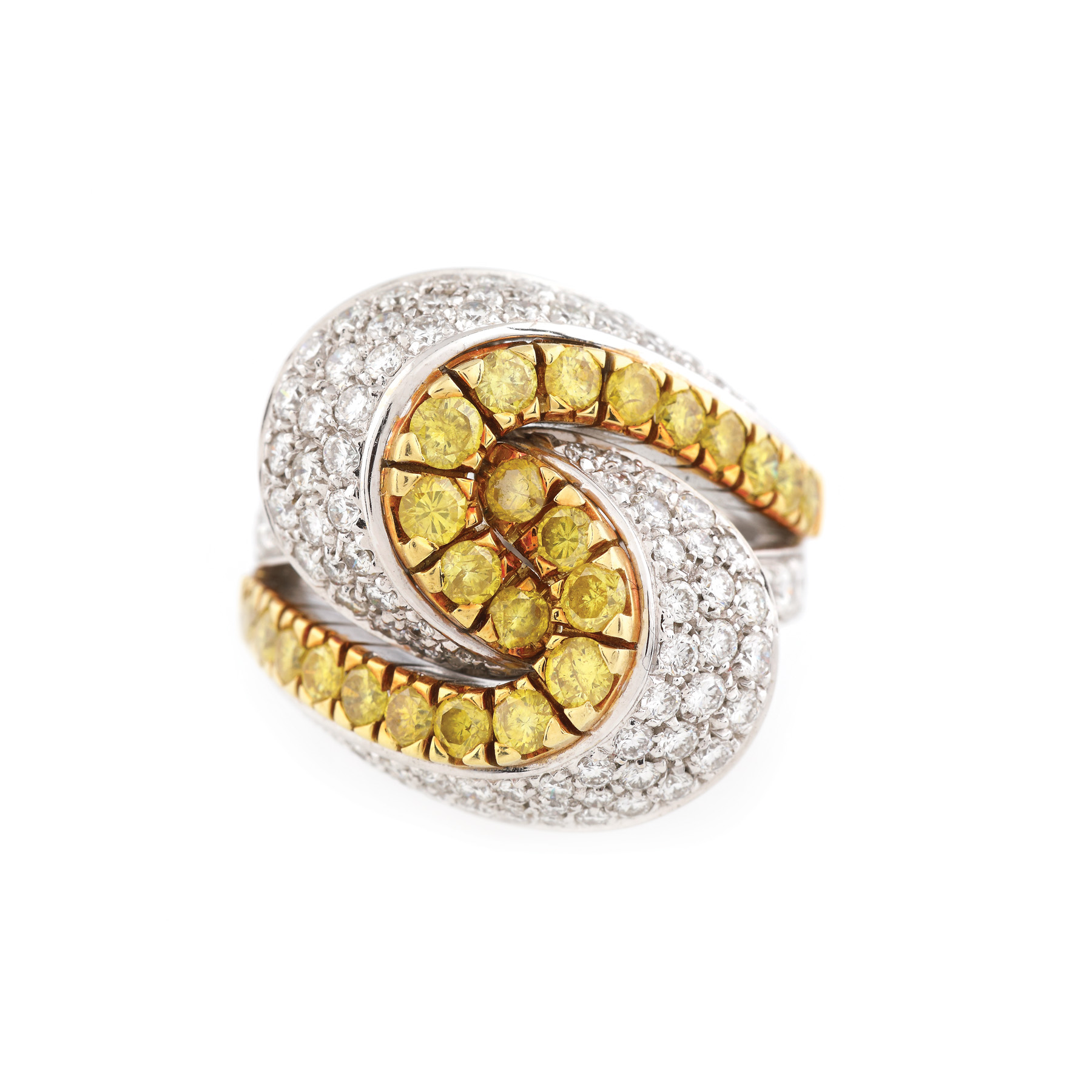 217. "Diamonds knot" - inel din aur în două culori, decorat cu diamante albe și galbene