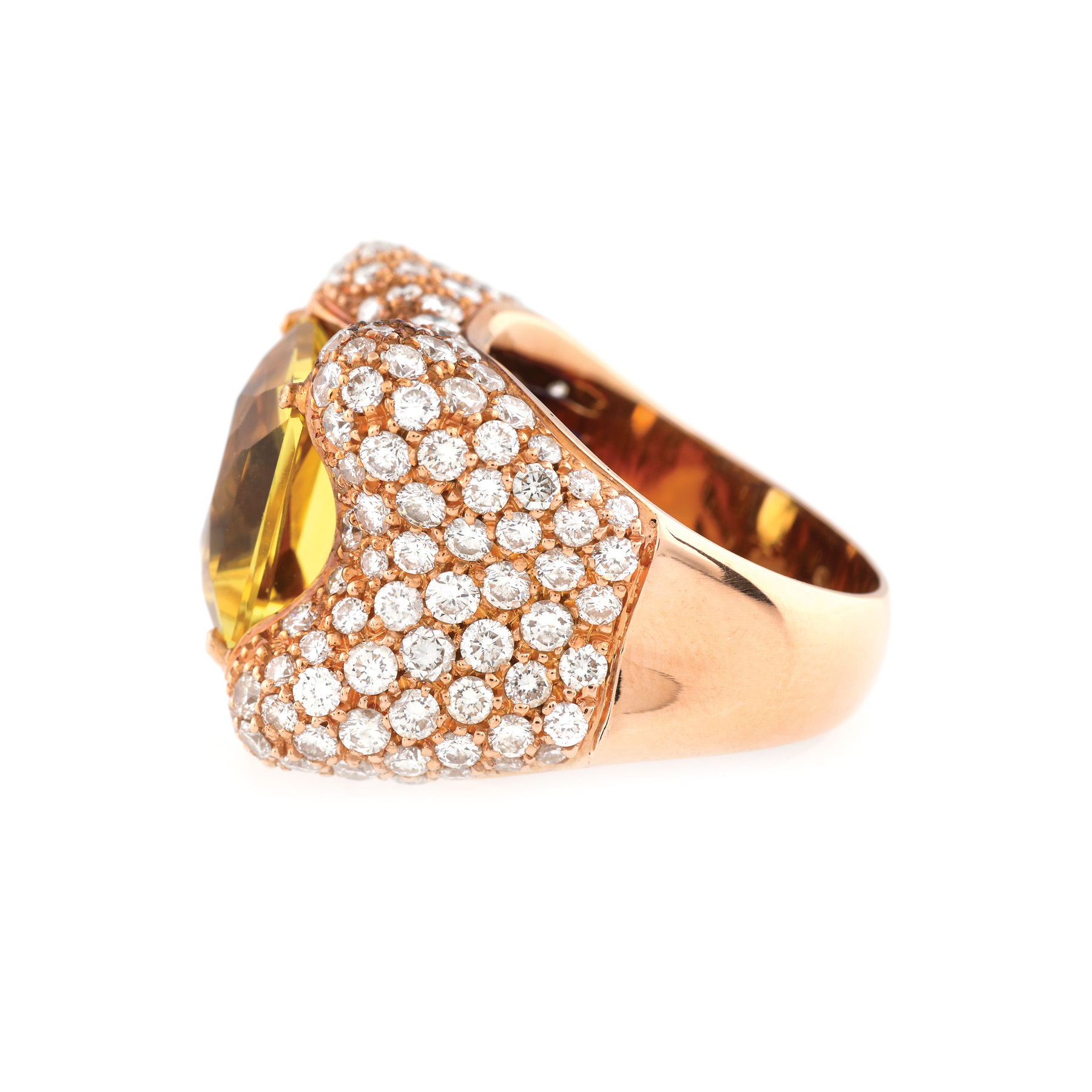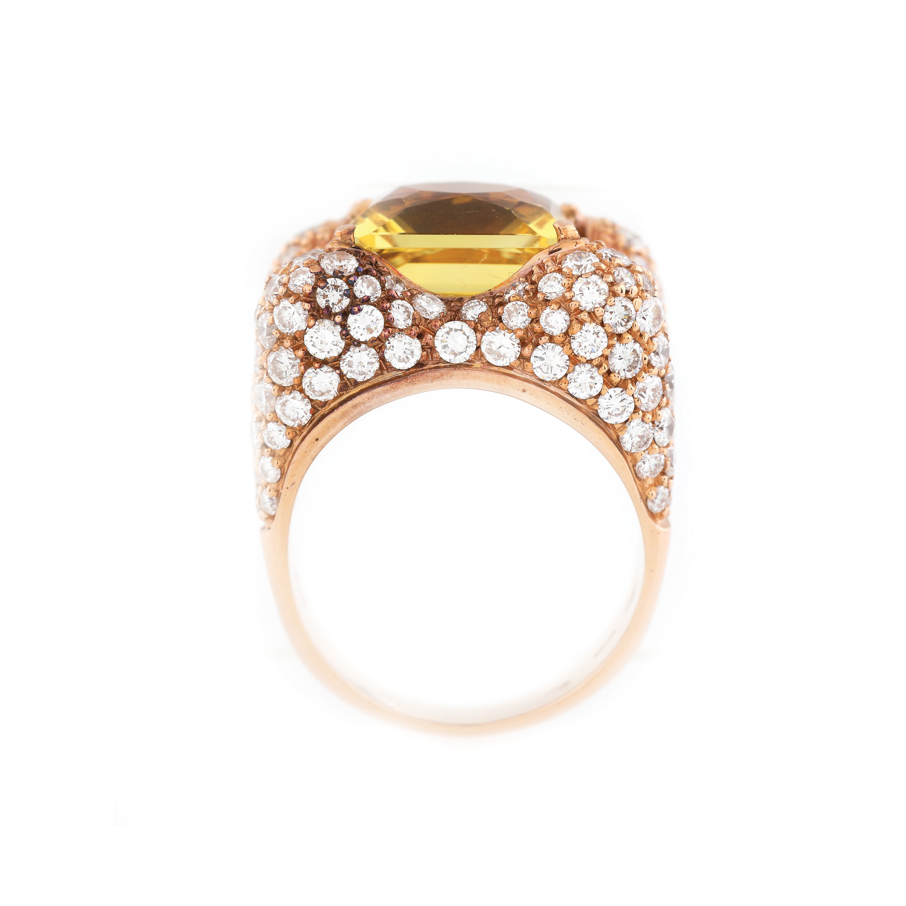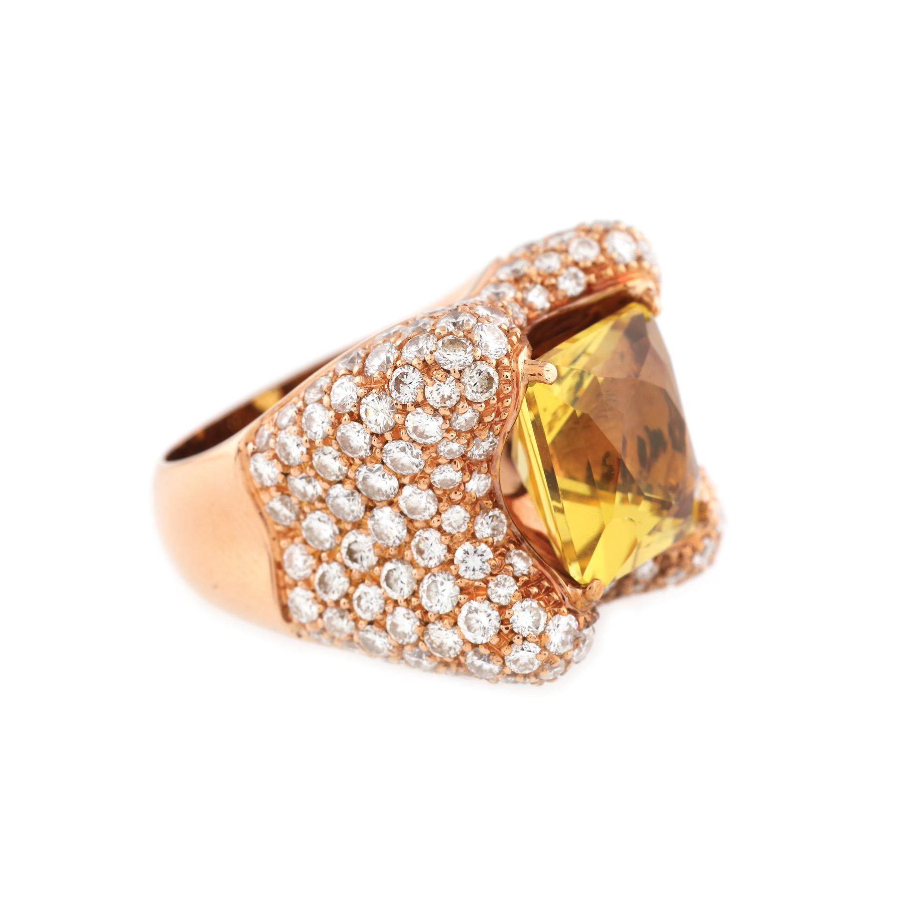 216. Inel din aur roz, decorat cu un citrin central și pavaj de diamante