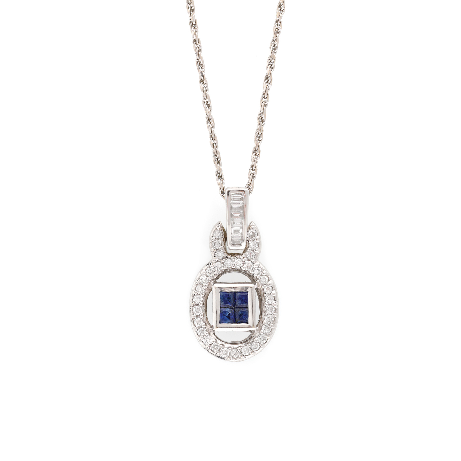 235. Lanț cu pandantiv din aur alb, decorat cu diamante și safire
