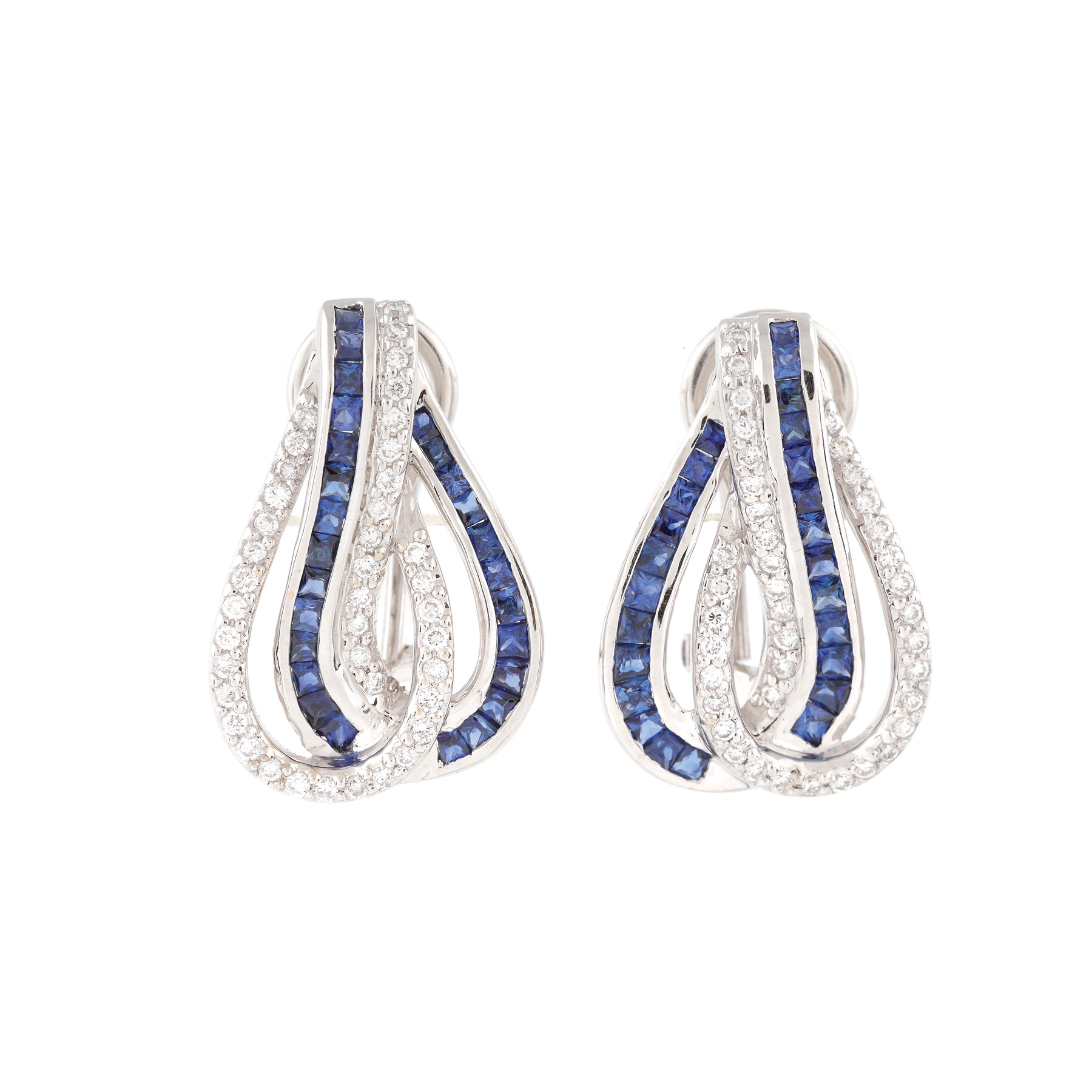 232. Pereche de cercei din aur alb, ornată cu safire și diamante