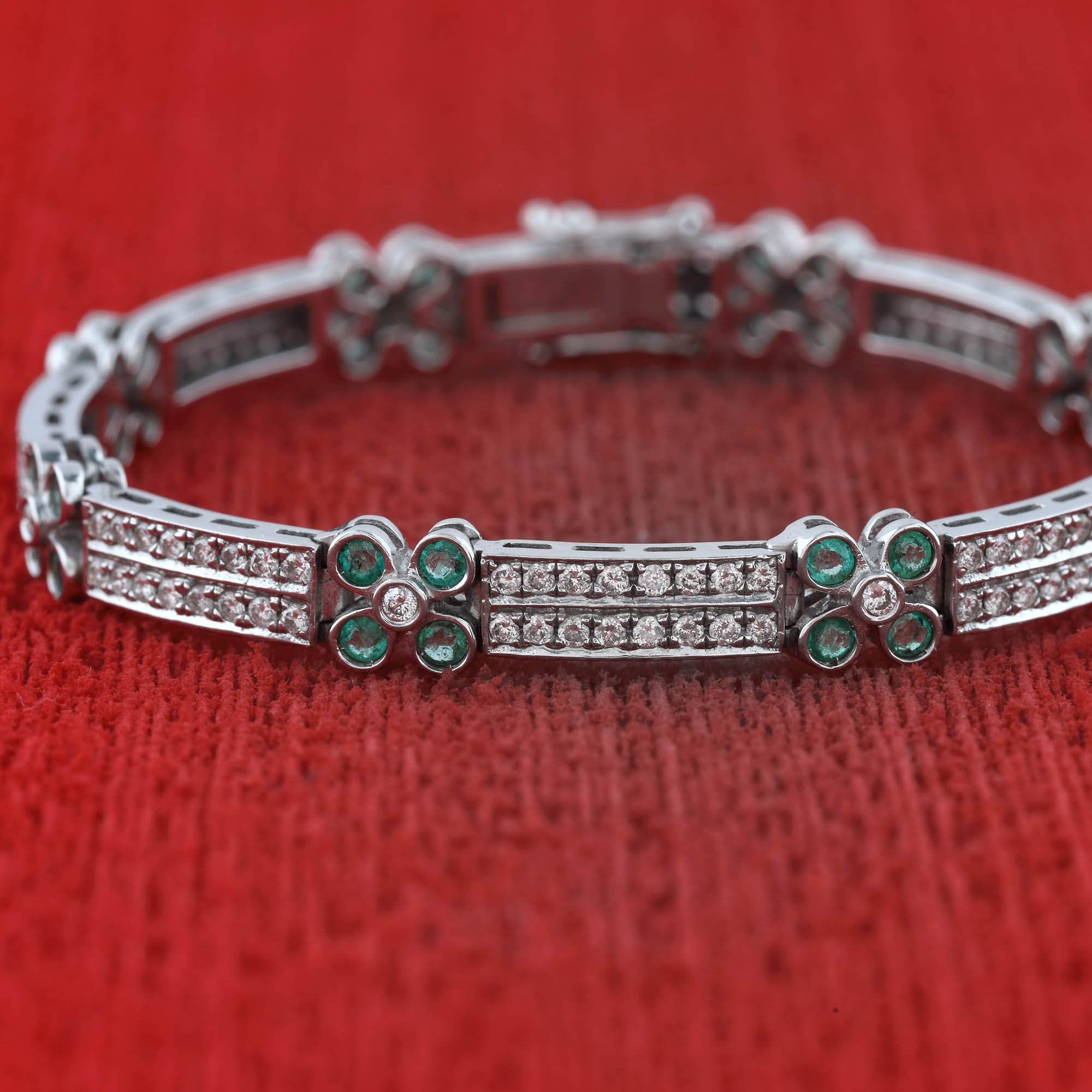 276. Brățară din aur alb, decorată cu smaralde și diamante