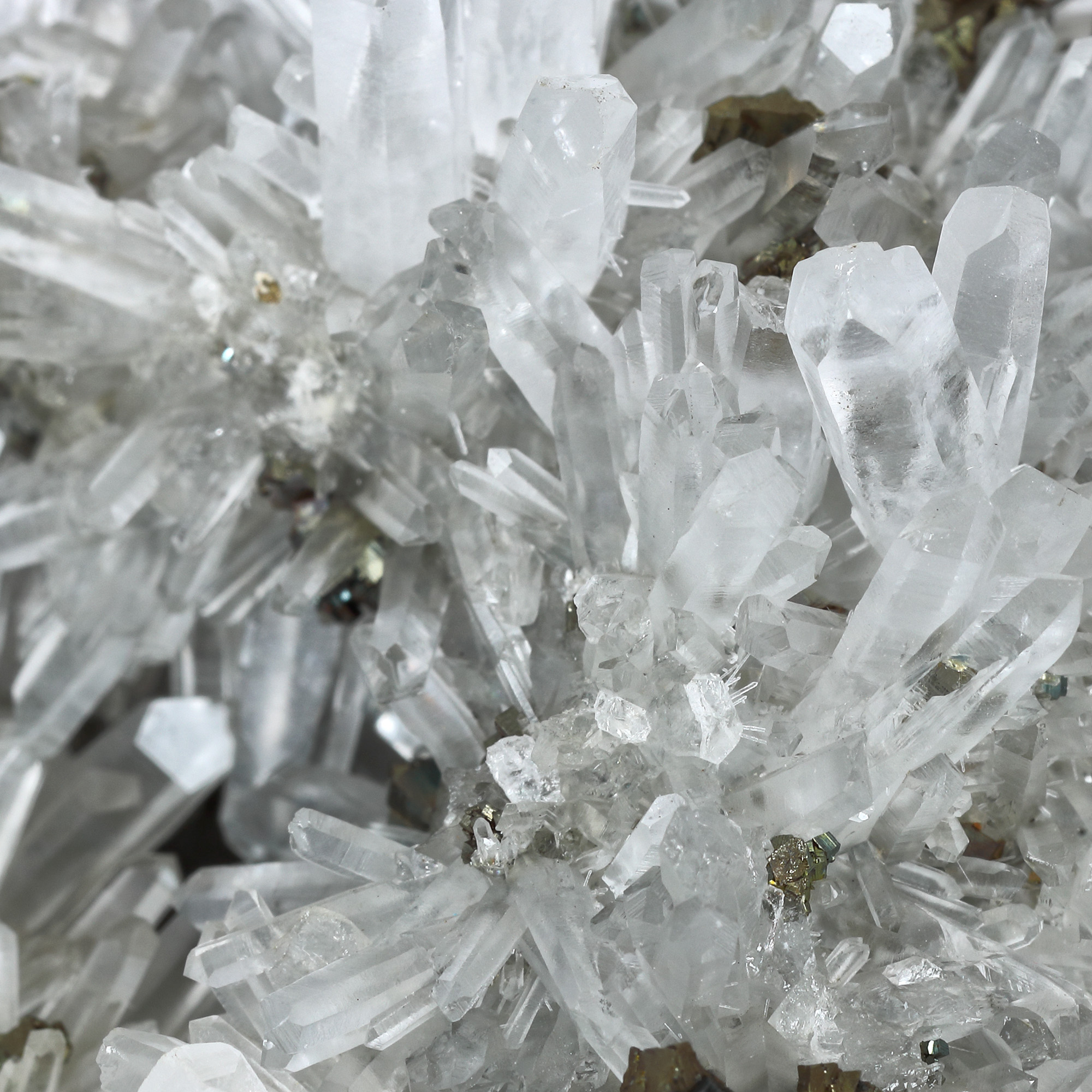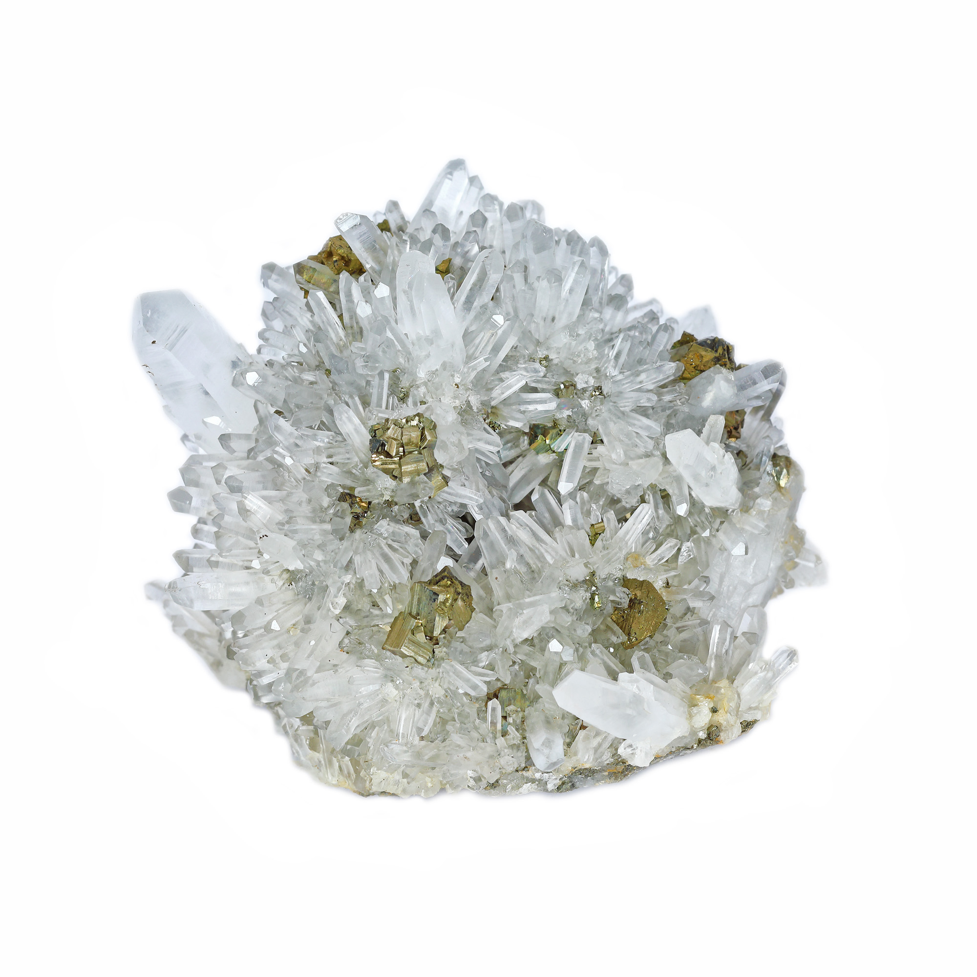 263. Cuarț transparent radiar cu pirită, sector Bolduț, mina Cavnic