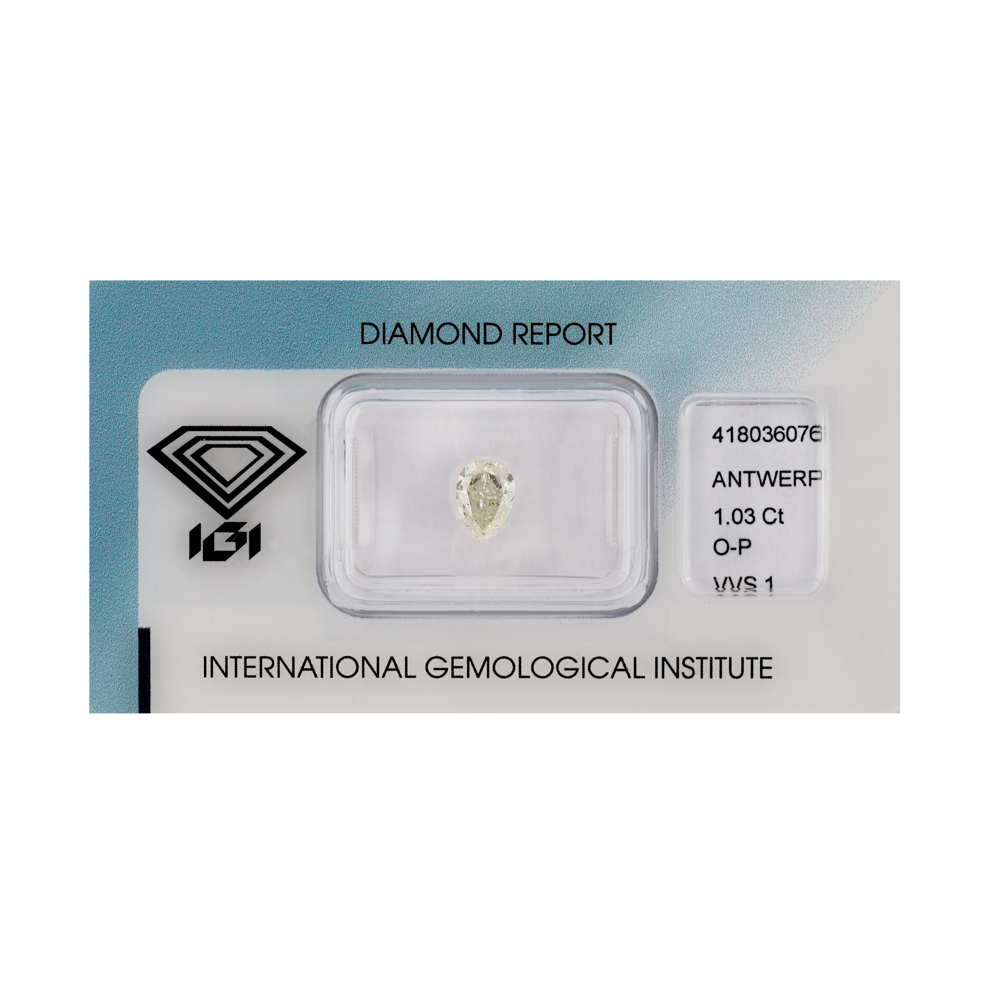 1 diamant pear cut, culoare O-P, claritate VVS1, cca. 1,03 ct.