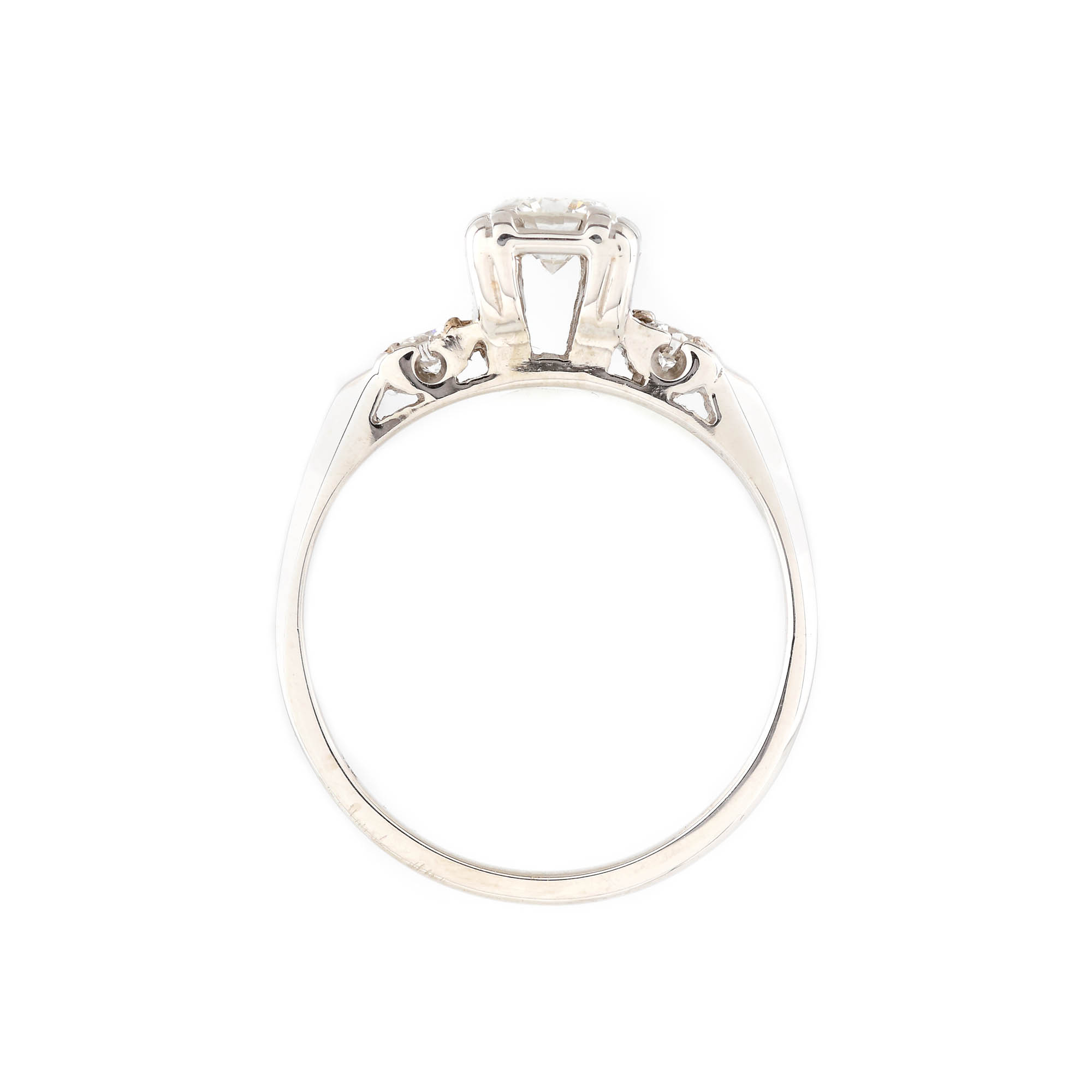 1 diamant rotund briliant, culoare F-G, claritate VS2, cca. 0,34 ct. și 2 diamante rotunde briliant, culoare F-G, claritate SI2, cca. 0,2 ct.