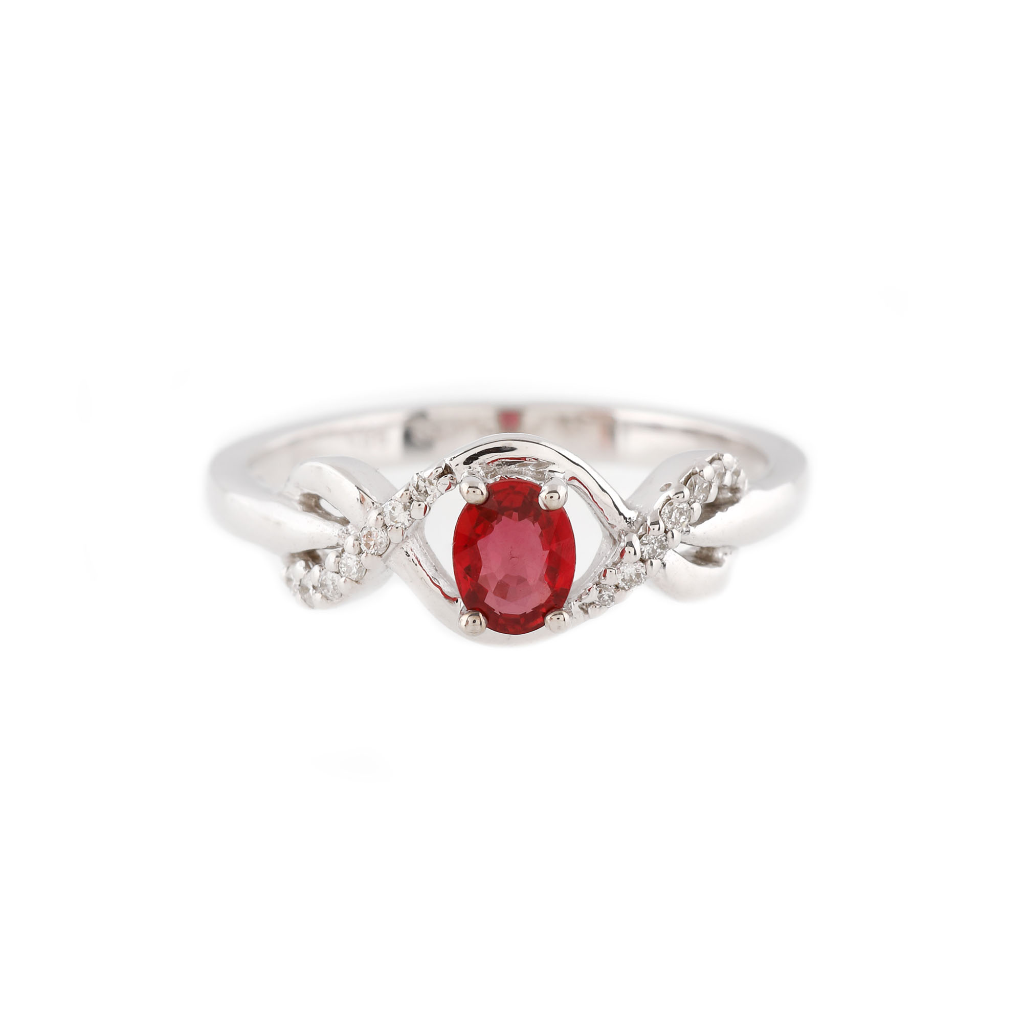 235. Inel din aur alb, decorat cu un rubin și diamante