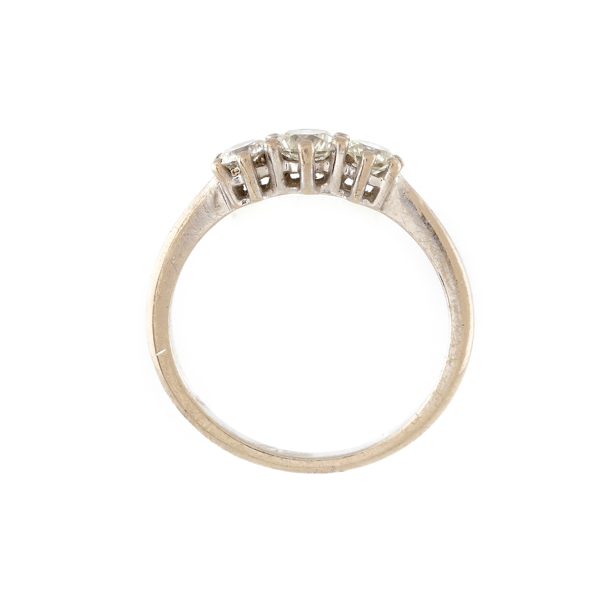 253. Inel din aur alb, ornat cu triadă de diamante