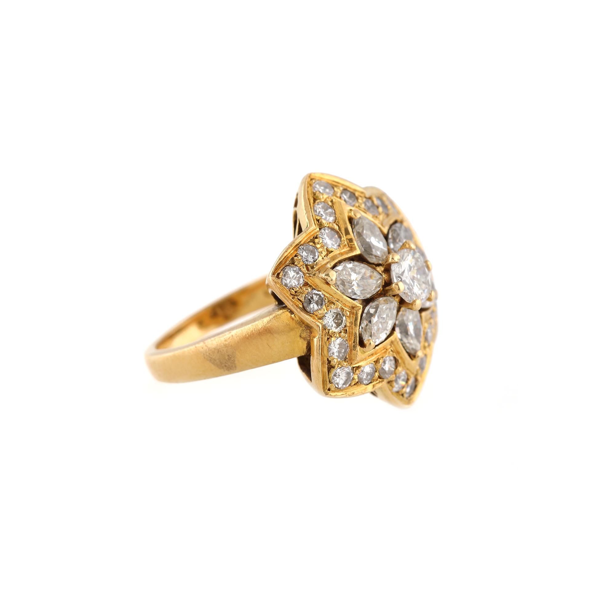 299. Inel din aur, decorat cu diamante dispuse în formă florară