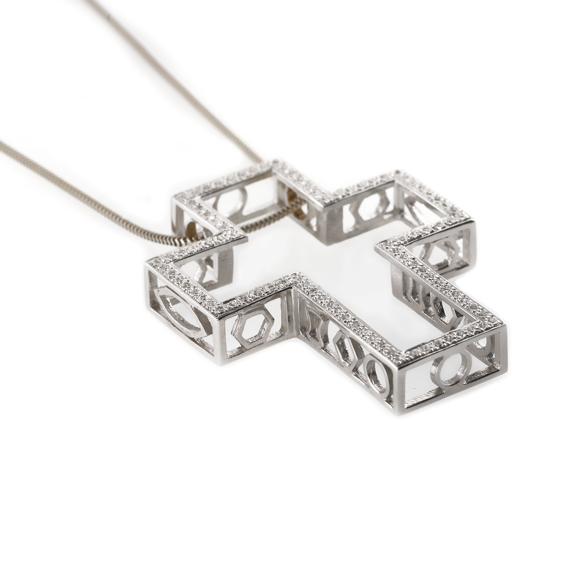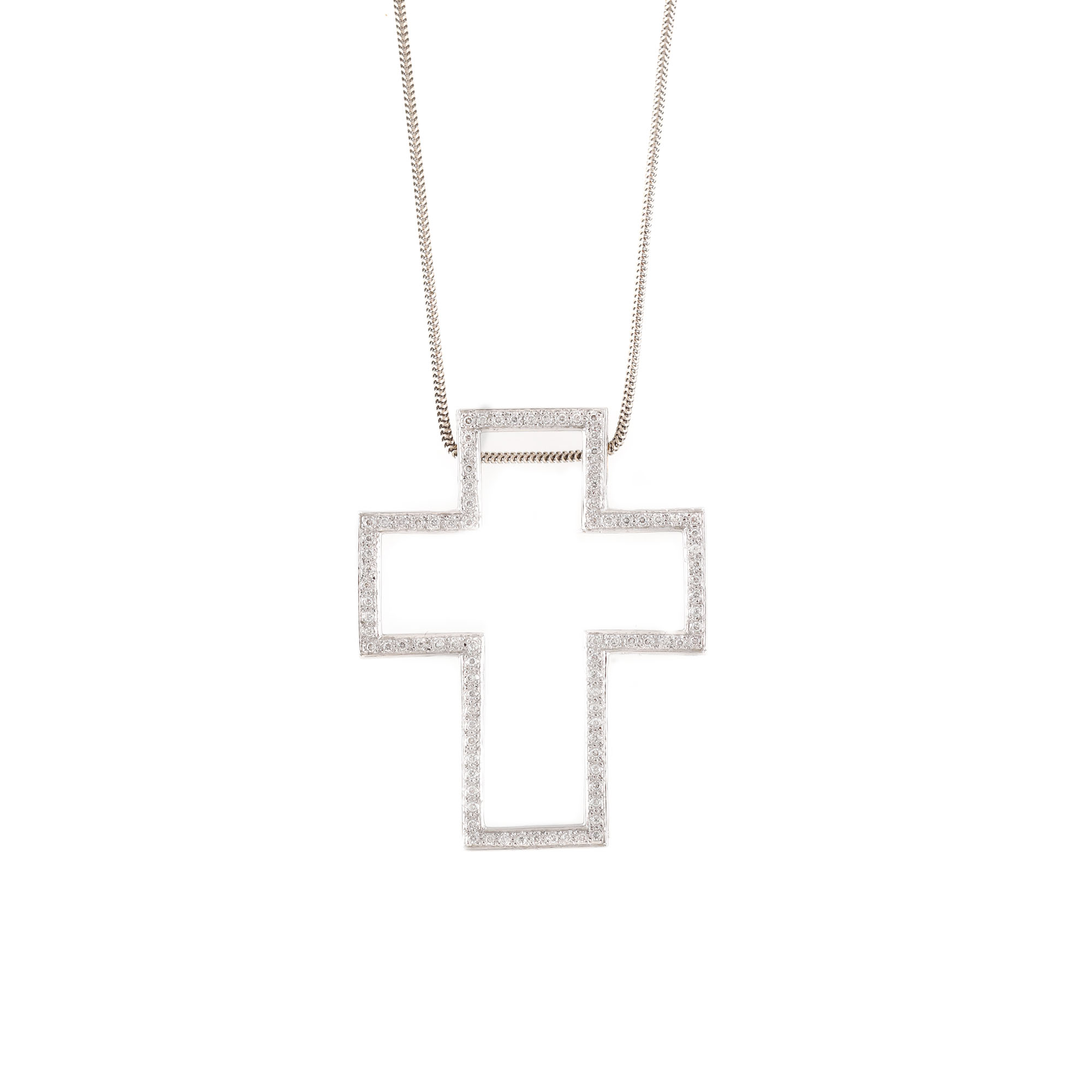 237. Lanț cu pandantiv-cruce din aur alb, decorată cu diamante
