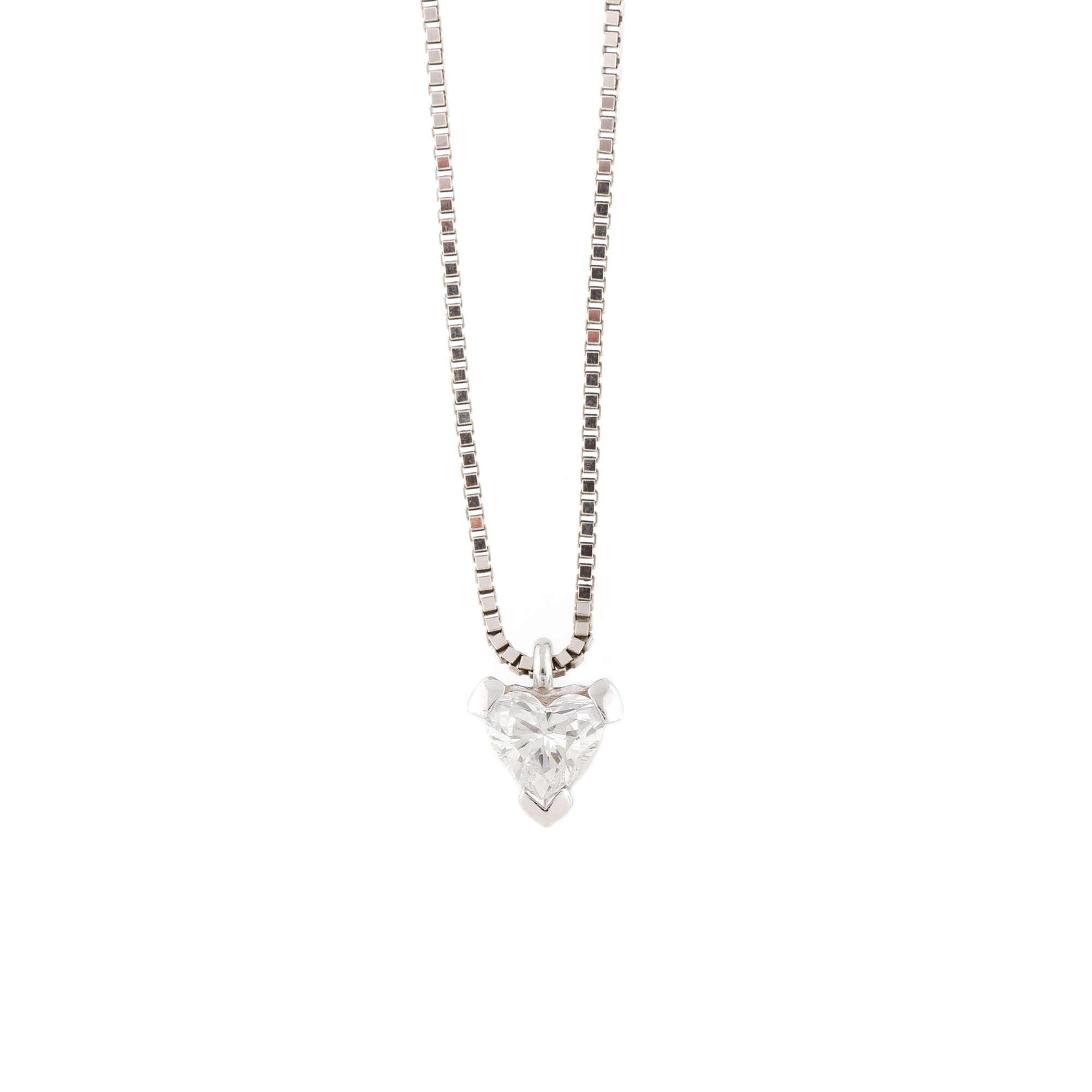 290. Lanț cu pandantiv Damiani, din aur alb, decorat cu diamant heart-shaped