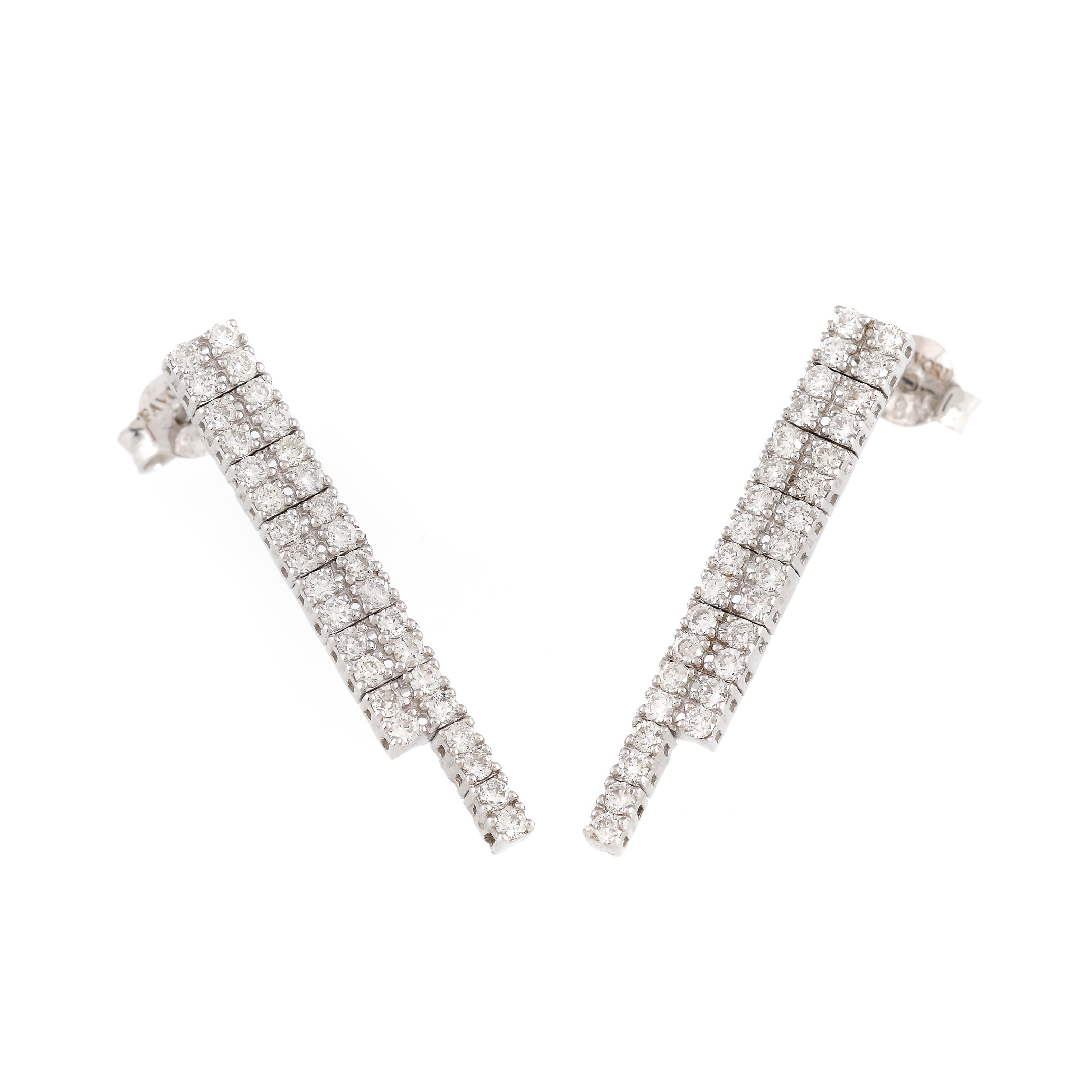 285. Pereche de cercei din aur alb, decorată cu două randuri de diamante
