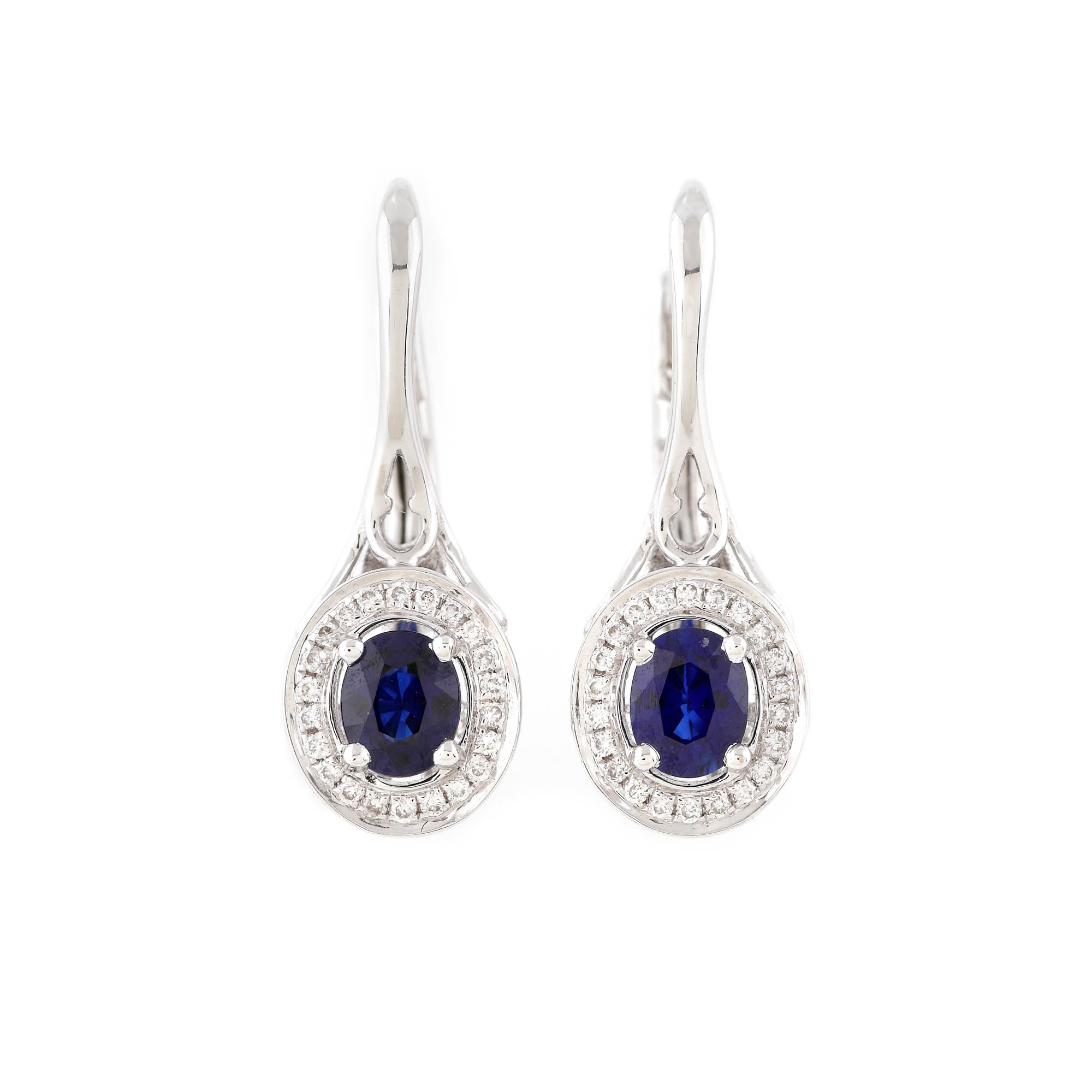 283. Pereche de cercei din aur alb, decorată cu safire și diamante