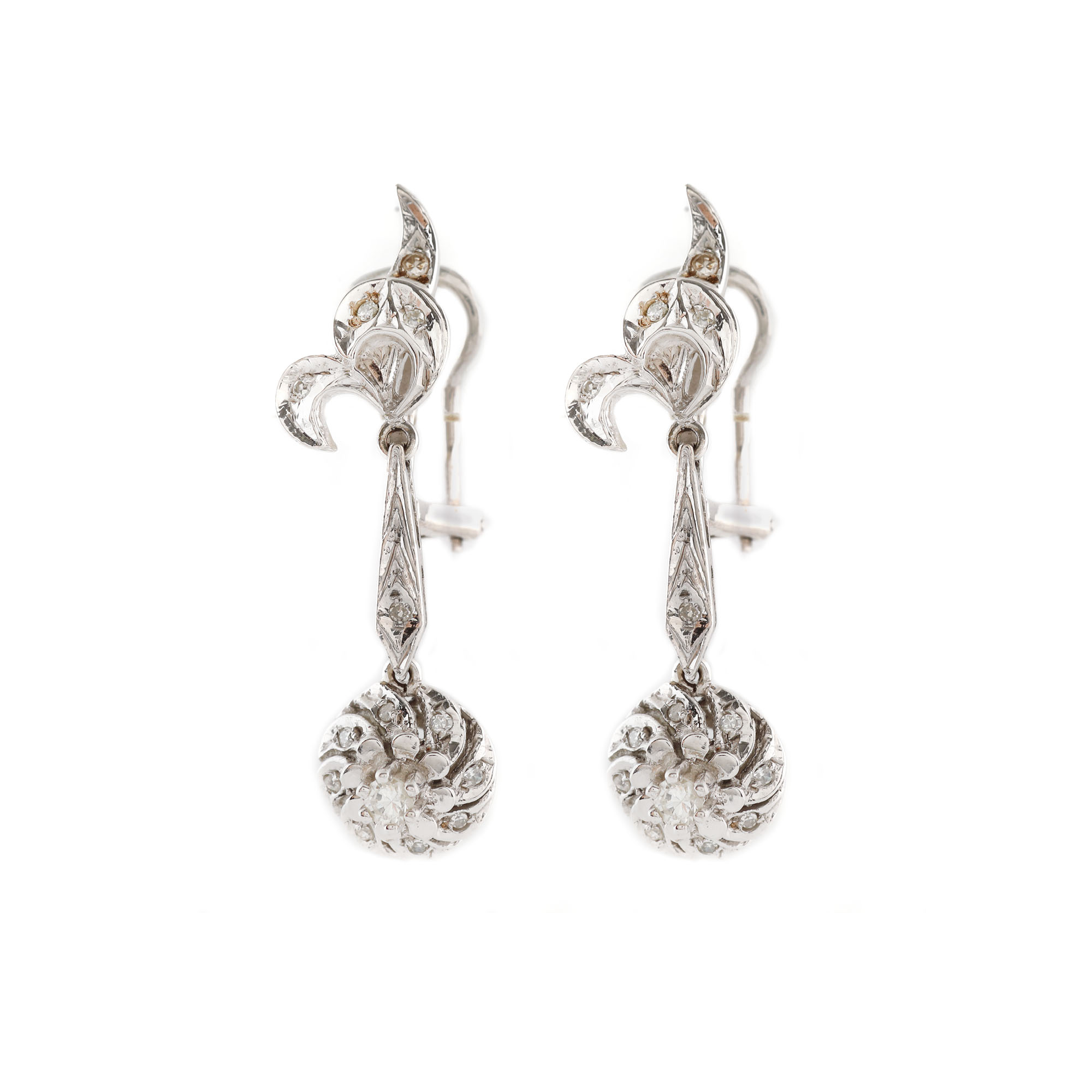223. Pereche de cercei din aur alb, ornată cu diamante