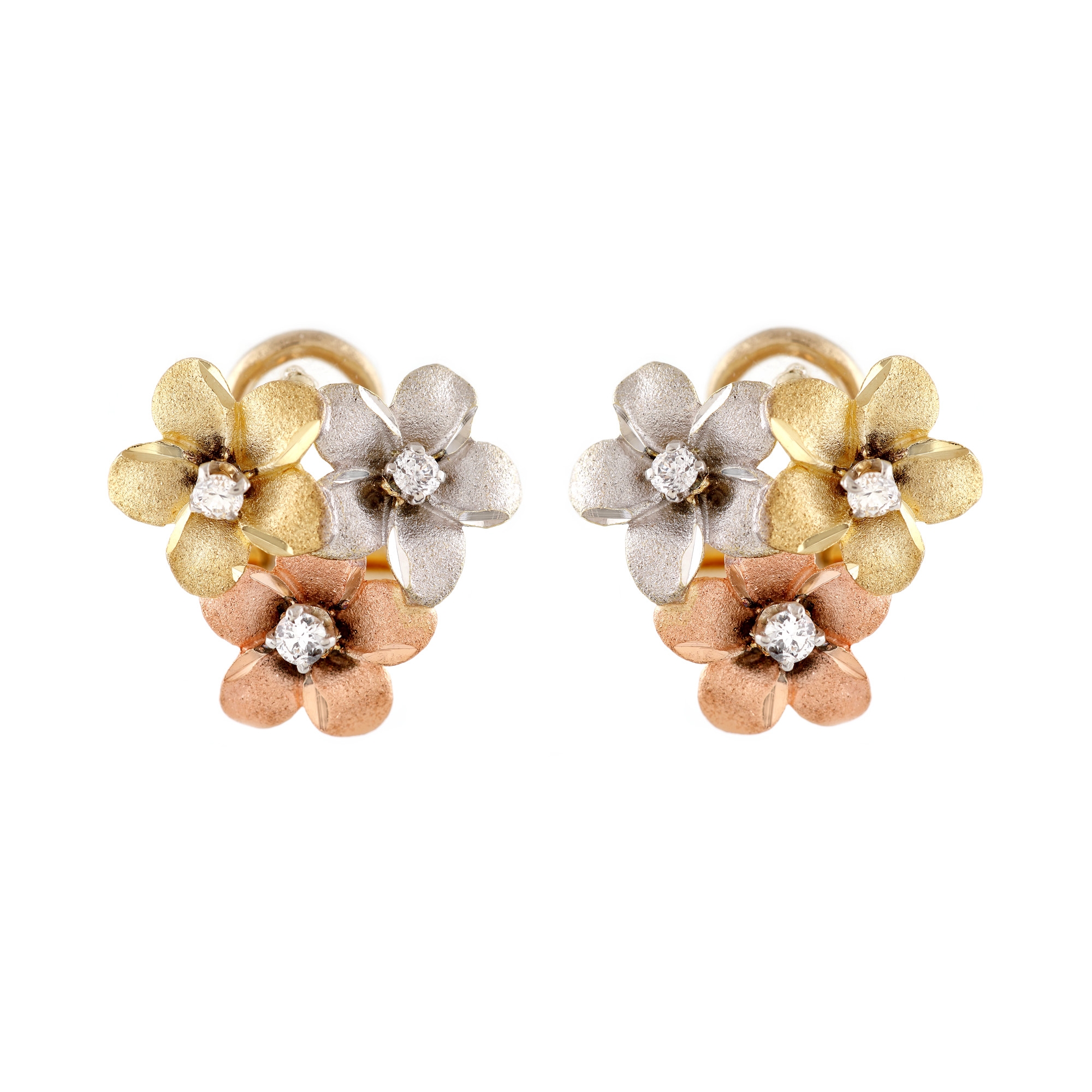 297. Pereche de cercei din aur alb, roz și galben, decorată cu diamante