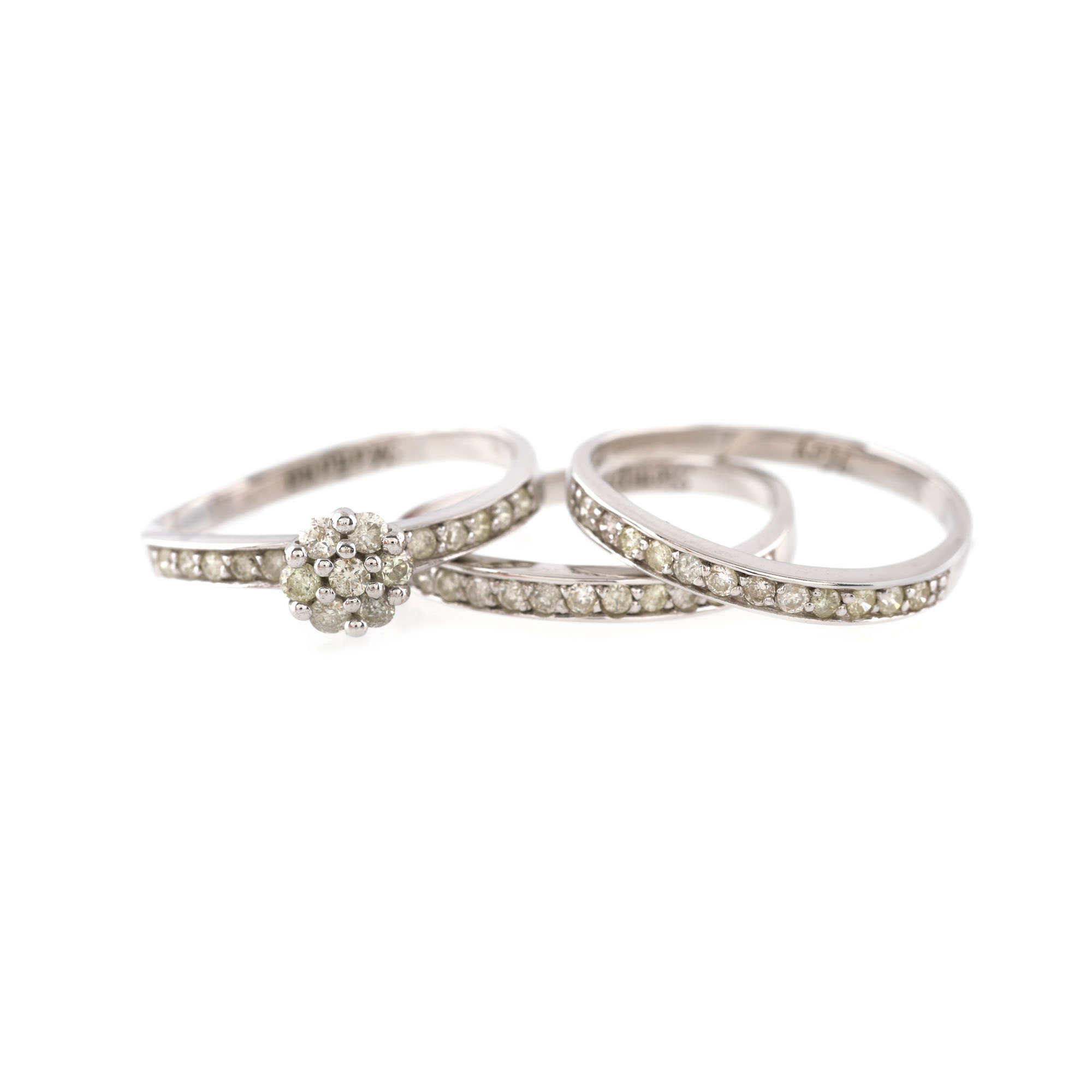 233. Triadă de inele din aur alb, decorată cu diamante