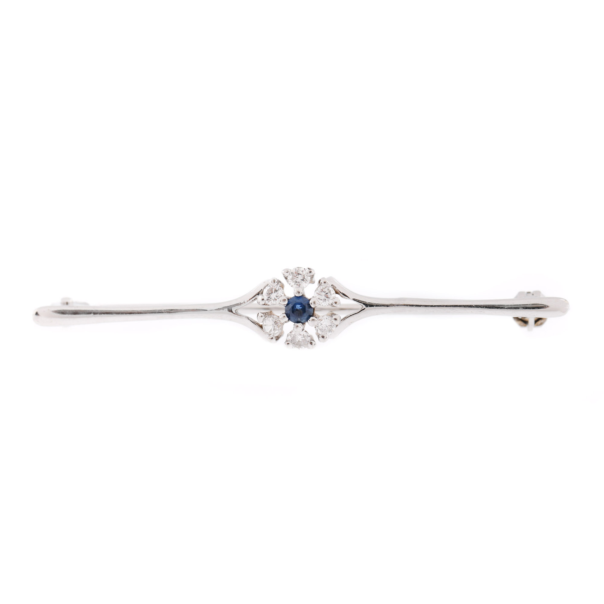 82. Broșă din aur alb, decorată cu safir și diamante