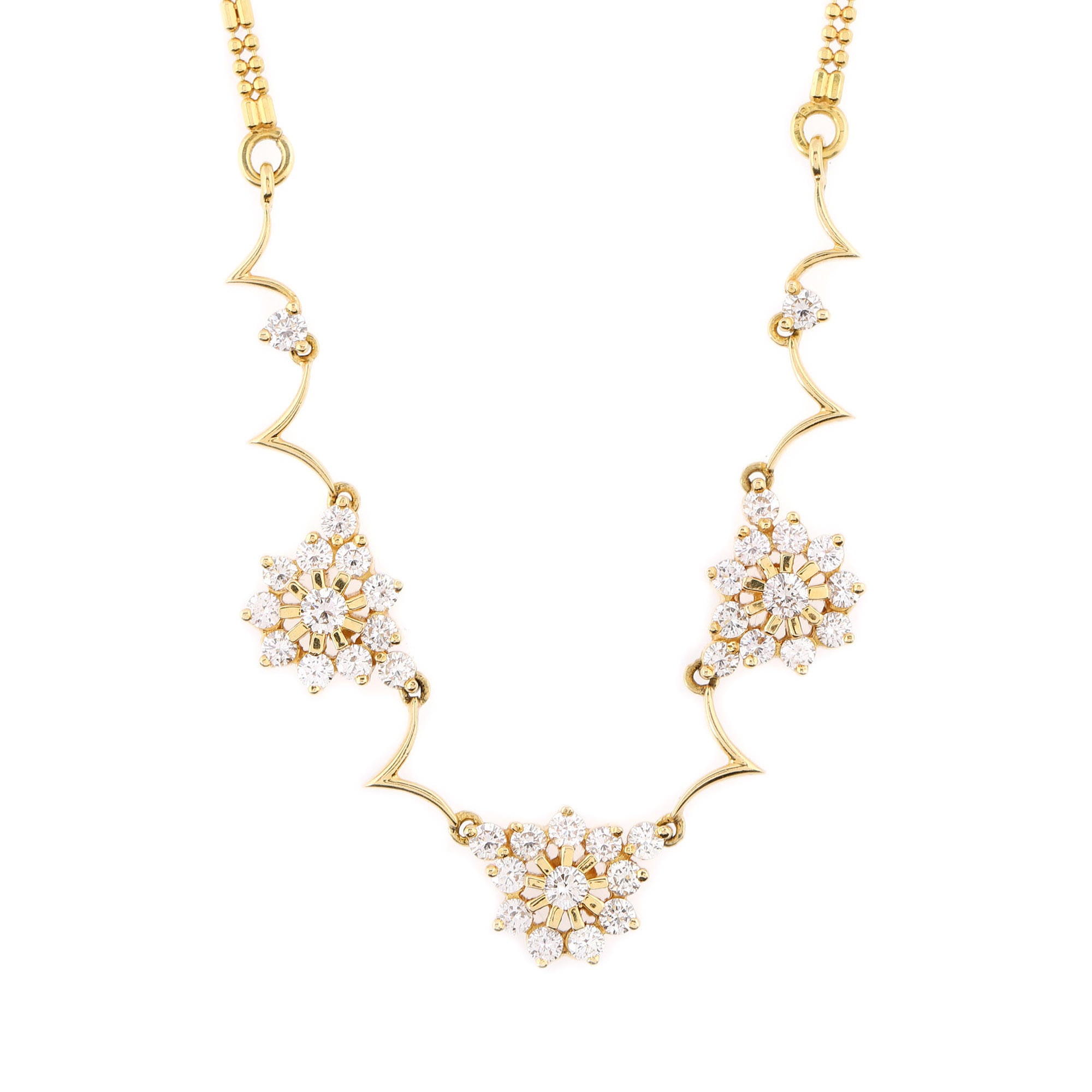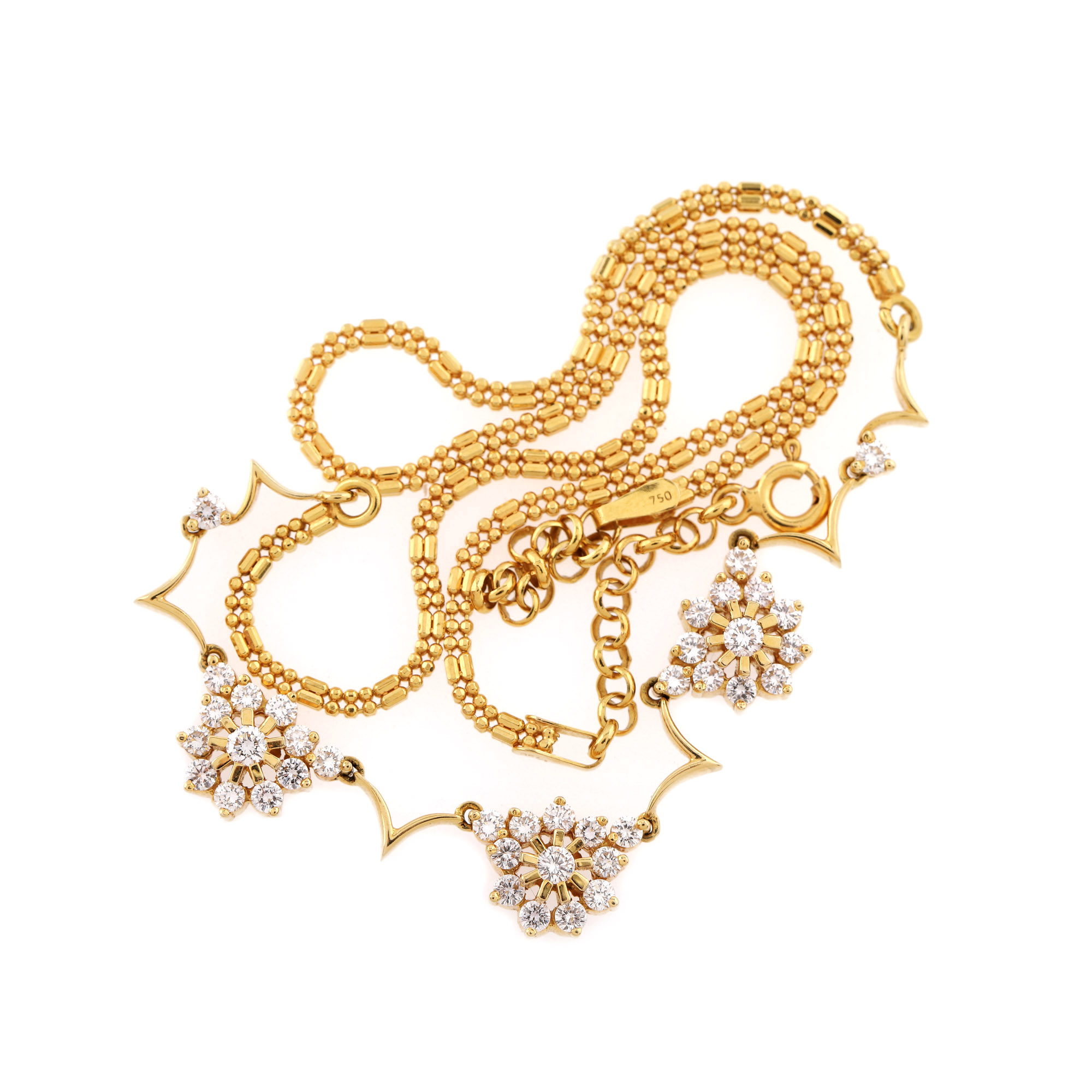 151. Colier din aur, decorat cu diamante dispuse în modele florale