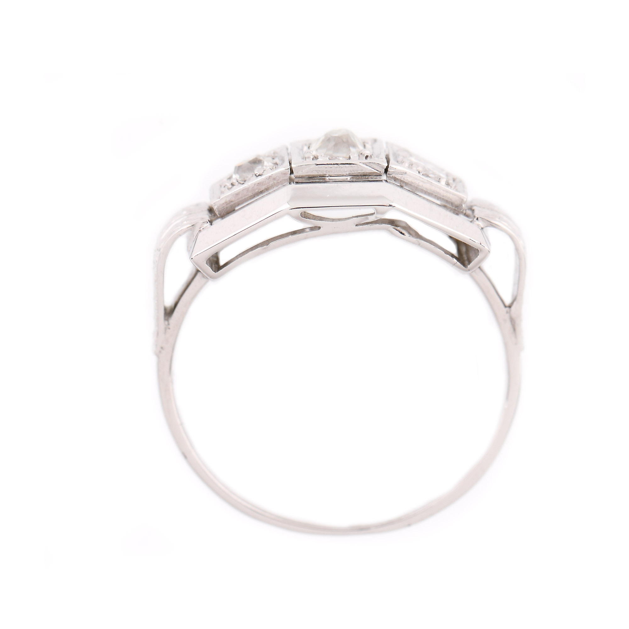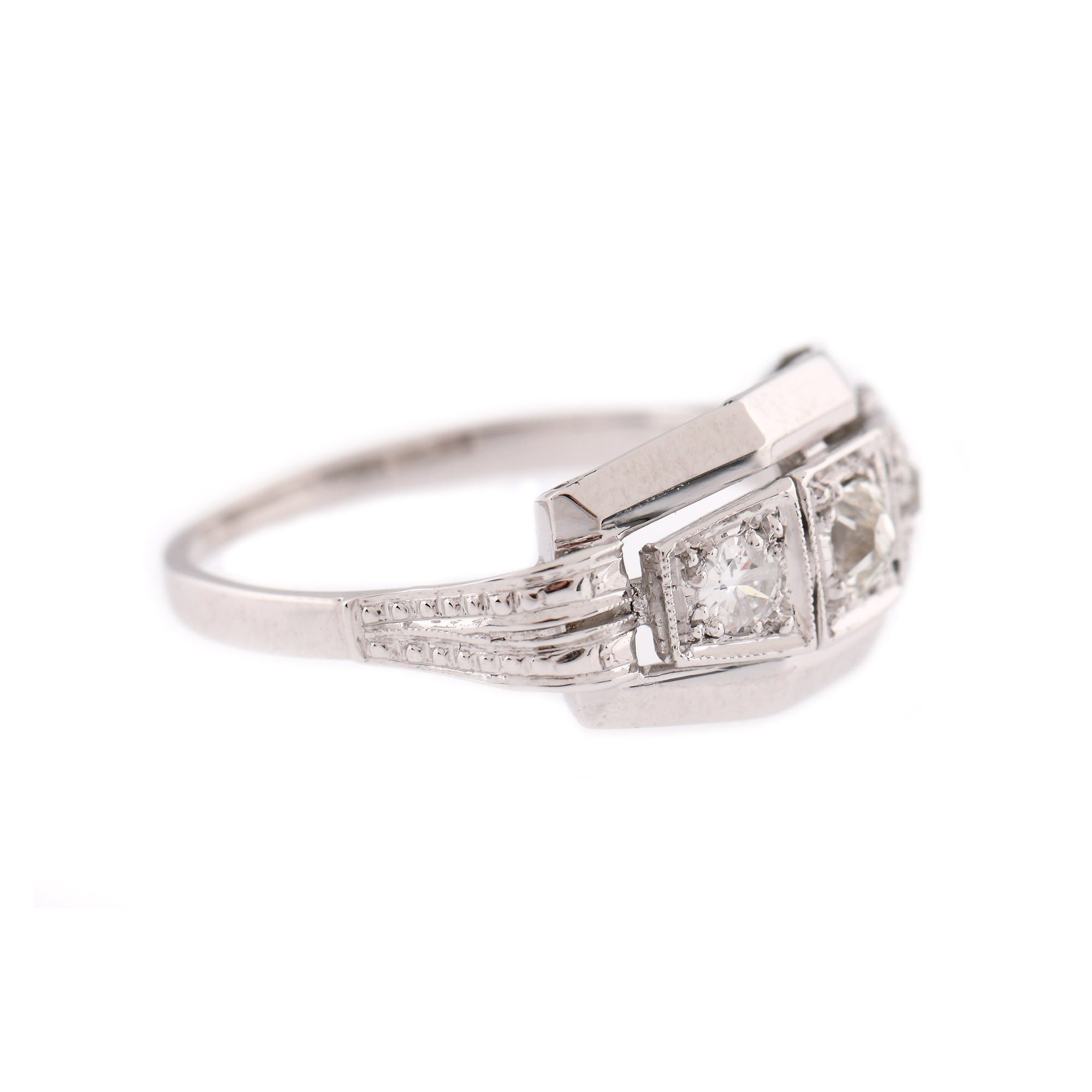 3 diamante (2 old mine cut, 1 rotund briliant), culoare I-K, claritate SI-I1, cca. 0,22 ct.