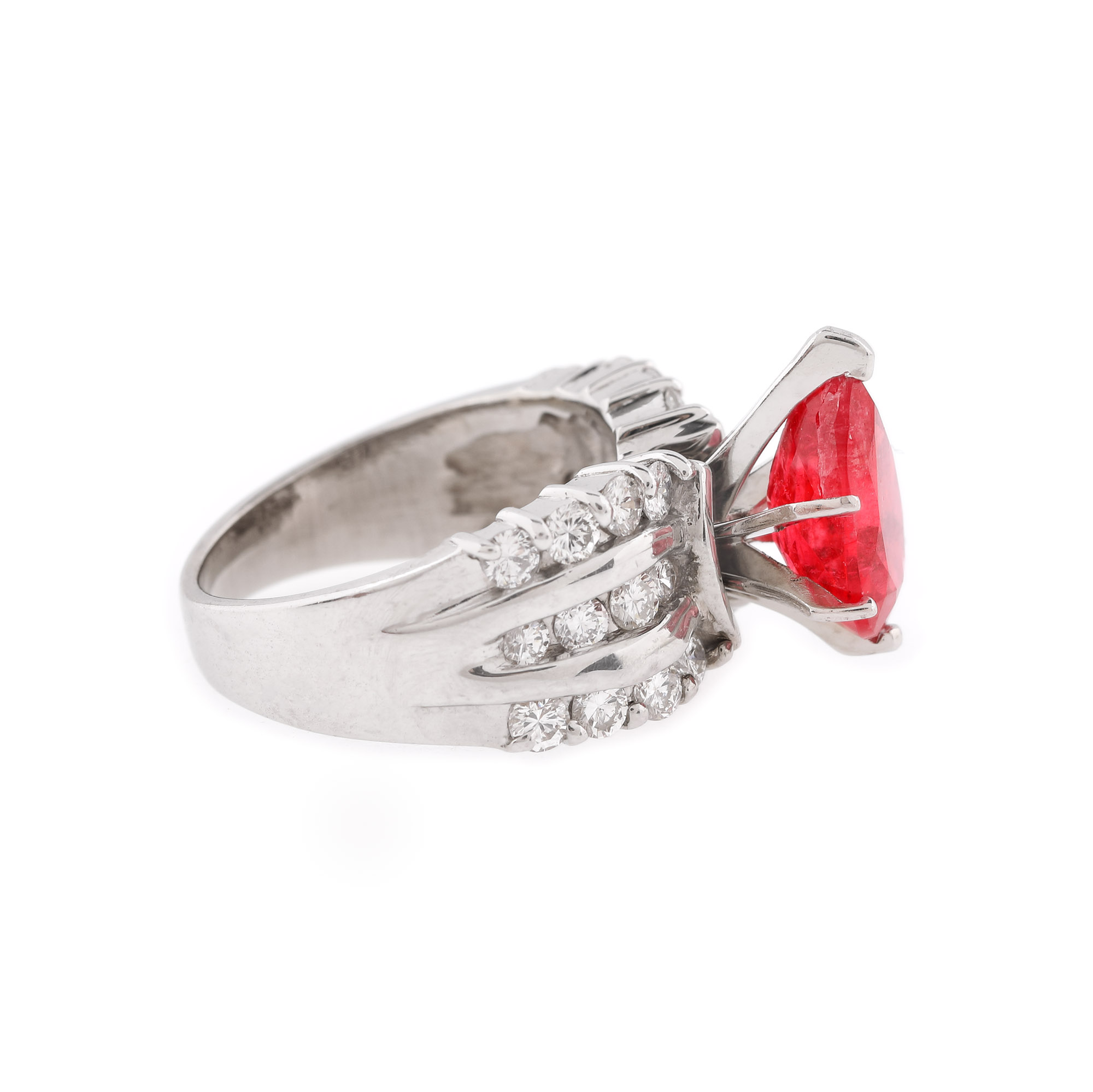 1 rodonit pară fațetat, culoare roșu-orange, claritate SI, cca. 4,26 ct. și 24 diamante rotunde briliant, culoare I-K, claritate VS2-I1, cca. 1,20 ct.