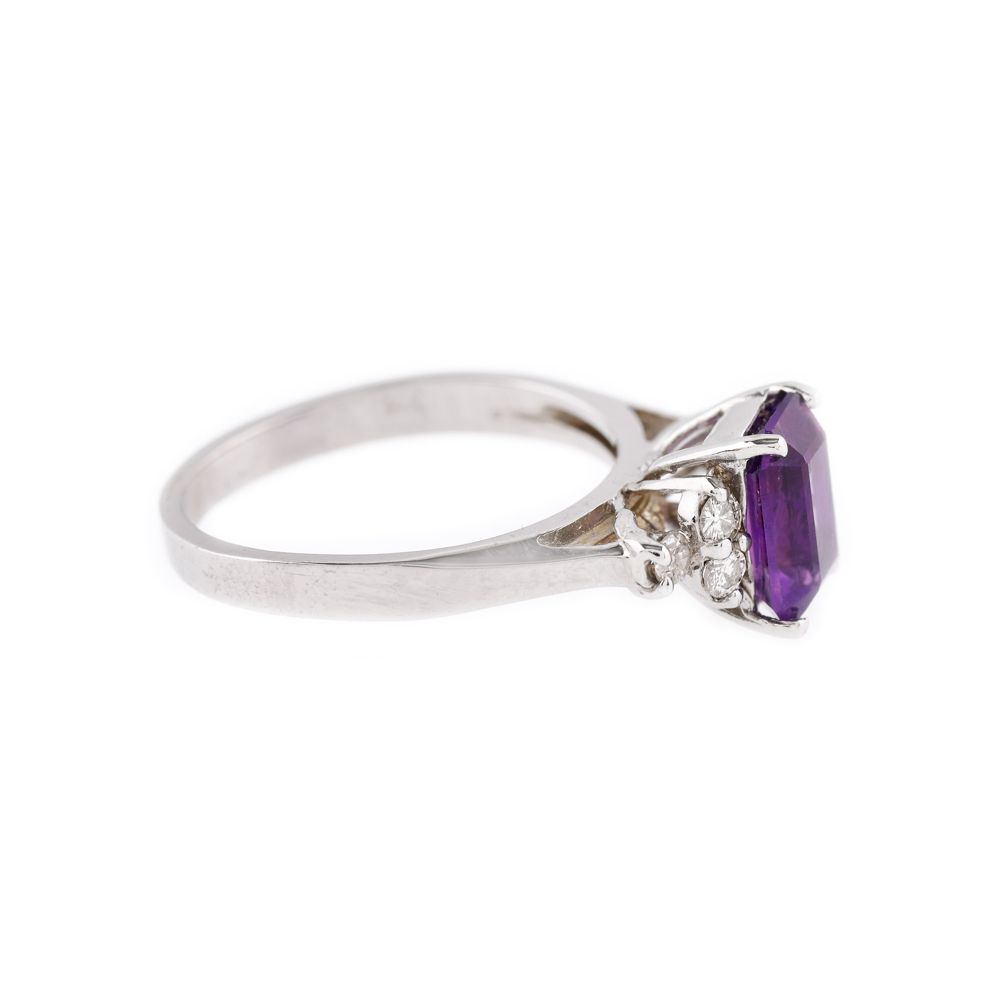 72. Inel din aur alb, decorat cu ametist și diamante alăturate