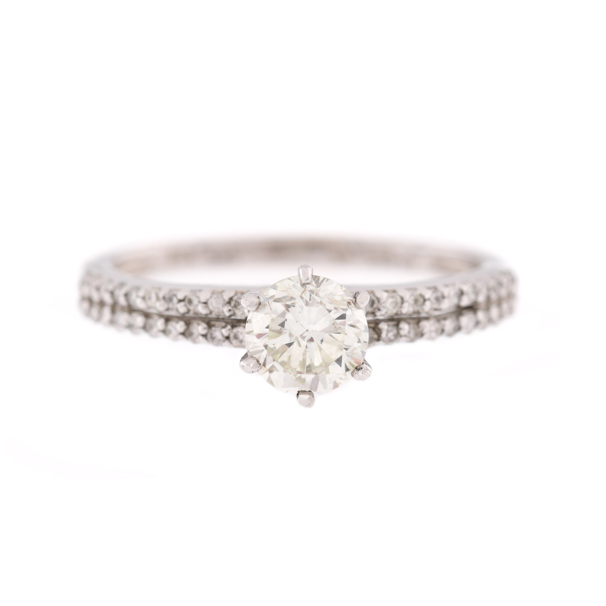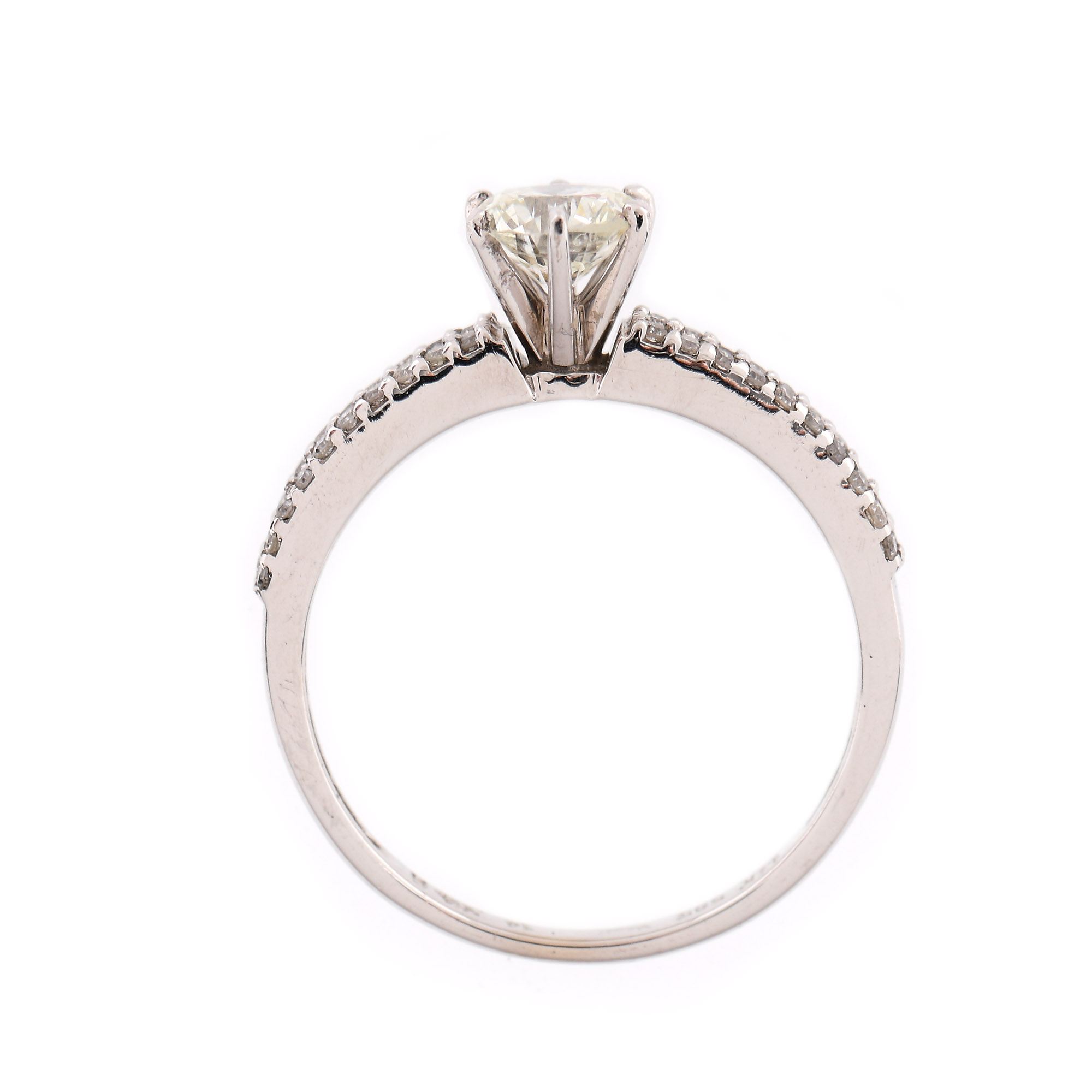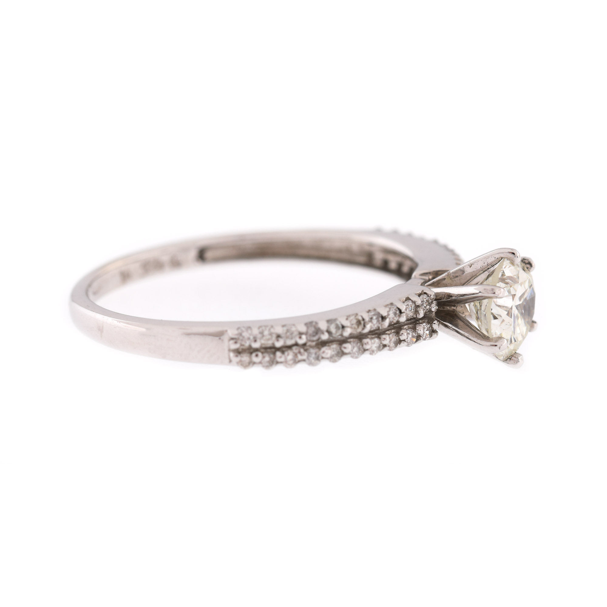78. Inel din aur alb, decorat cu diamant central și înșiruiri alăturate de diamante