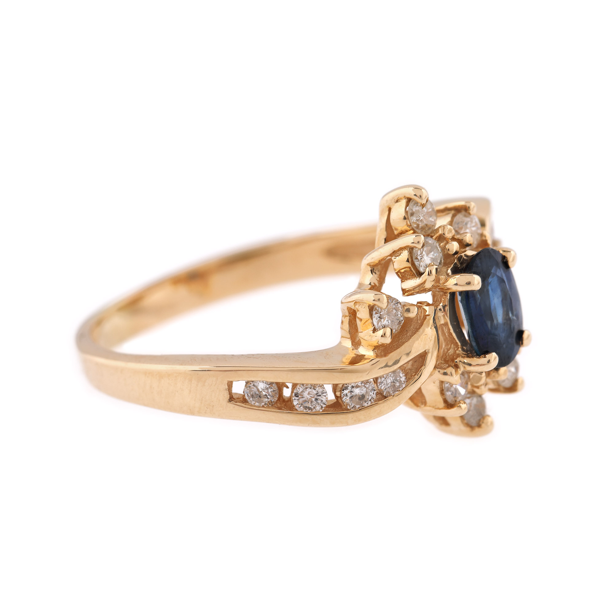 54. Inel din aur, decorat cu diamante și safir central