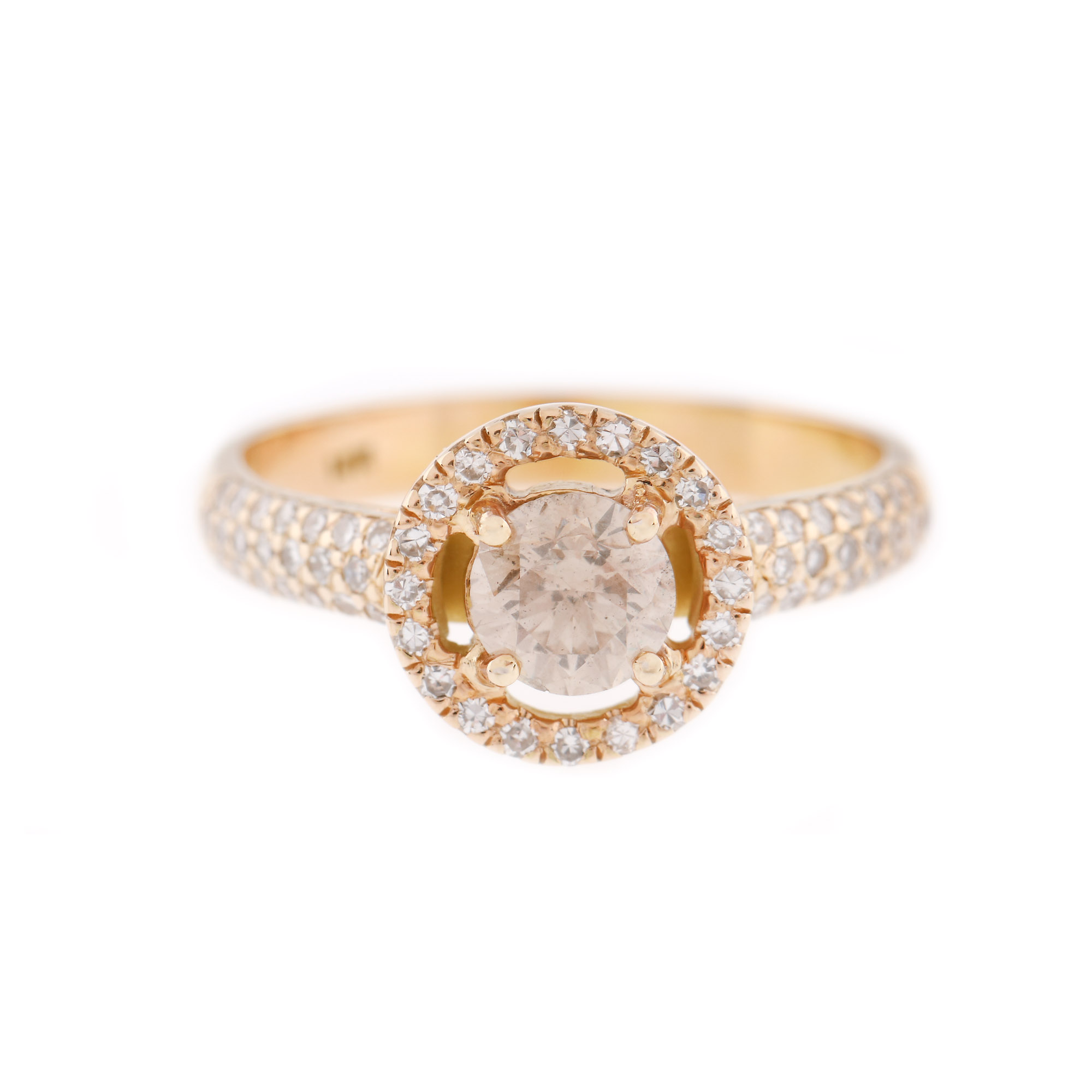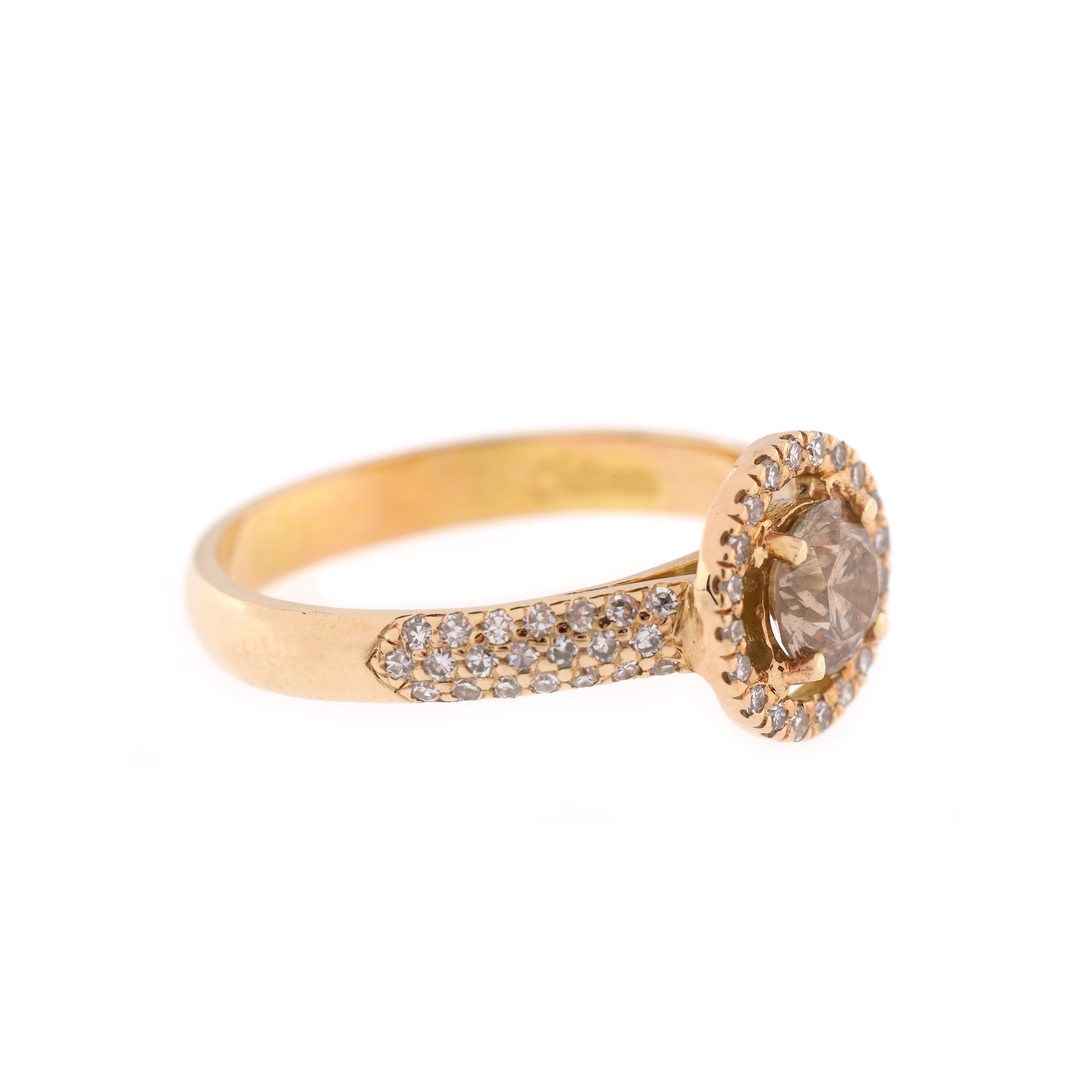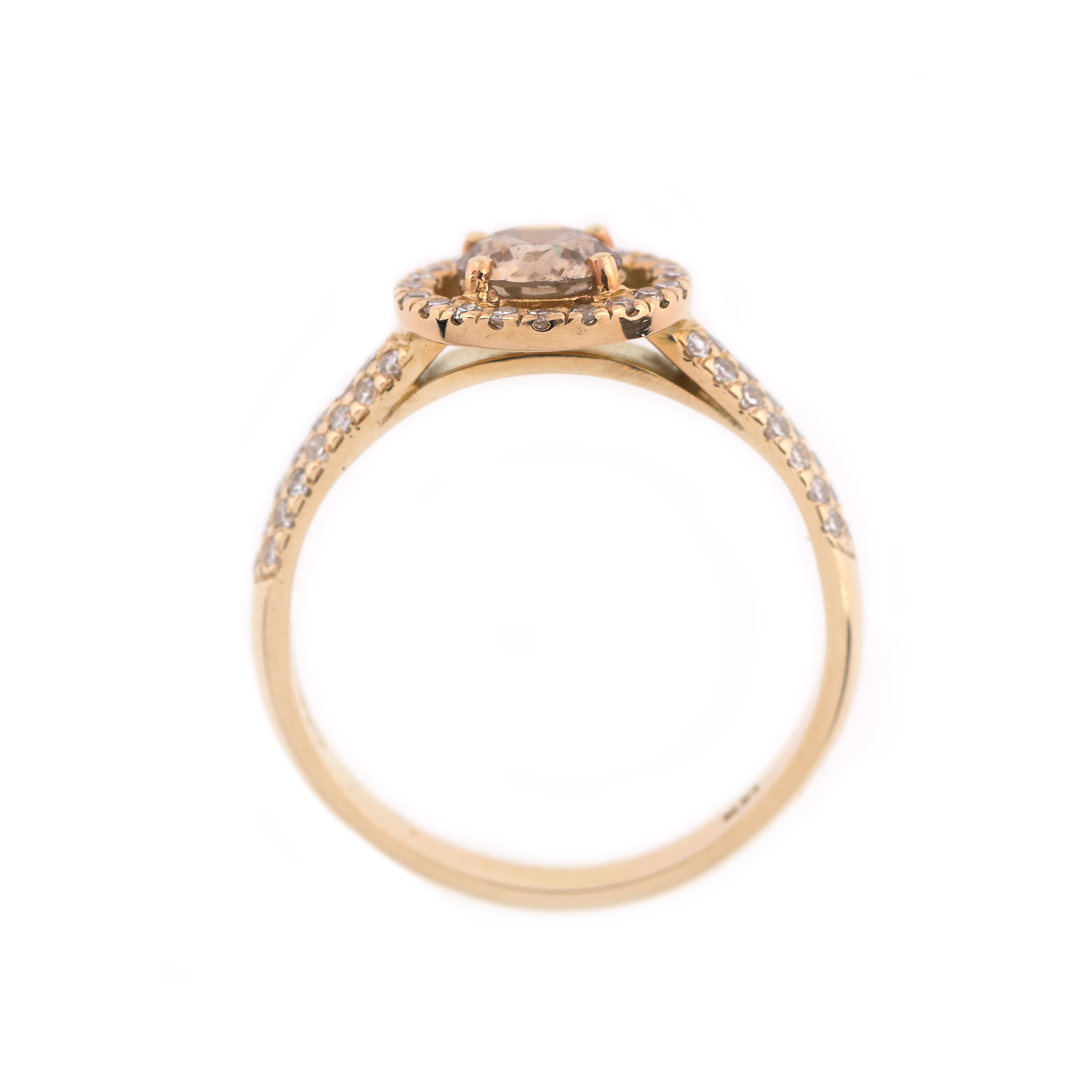 62. Inel din aur, decorat cu un diamant brun, anturat de alte diamante