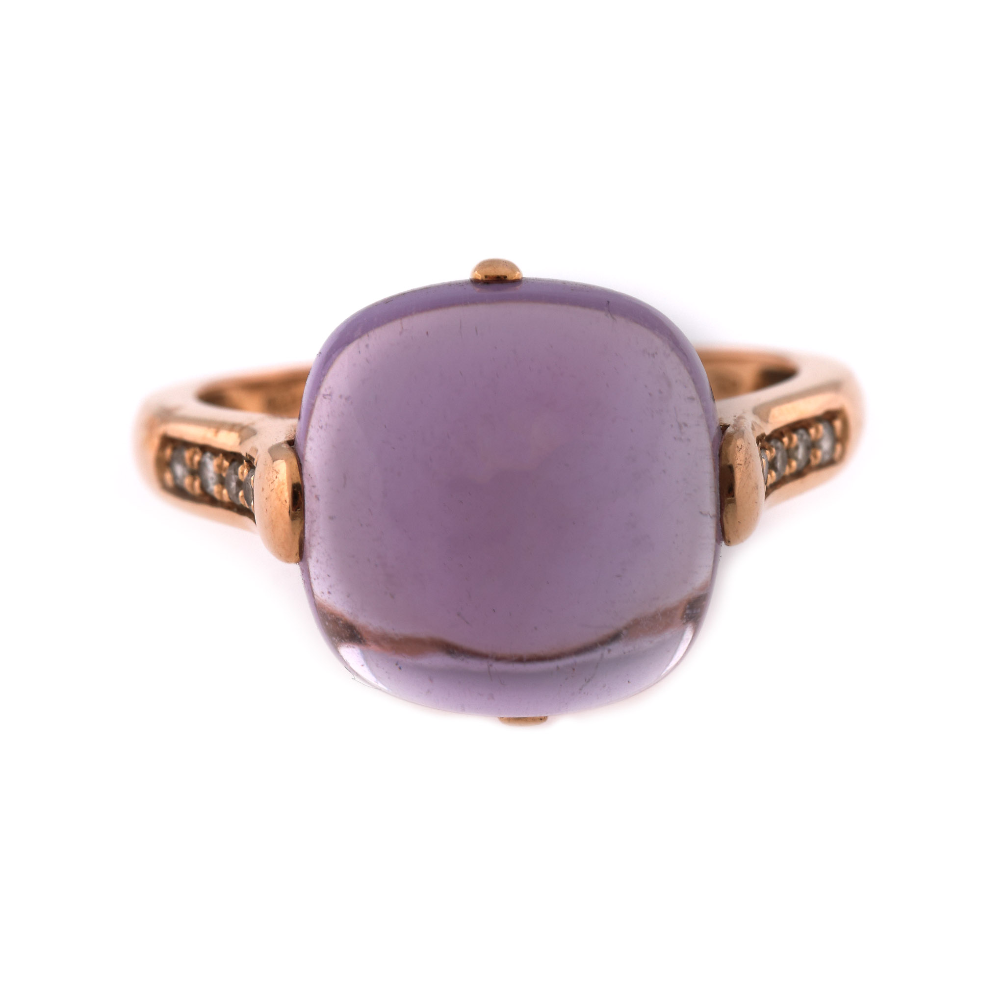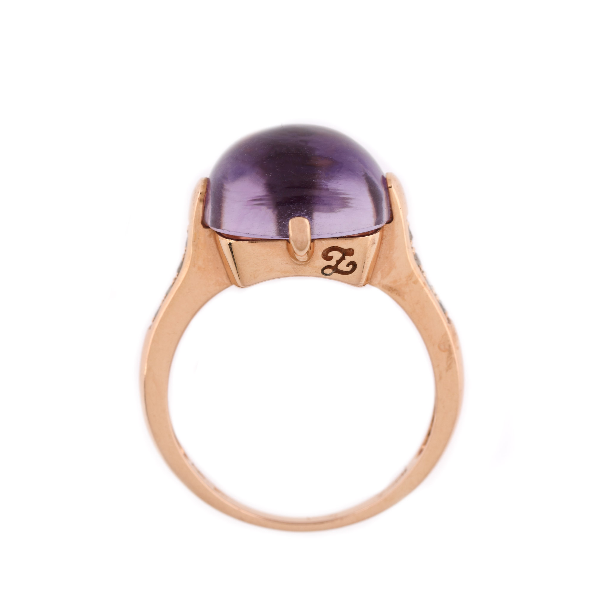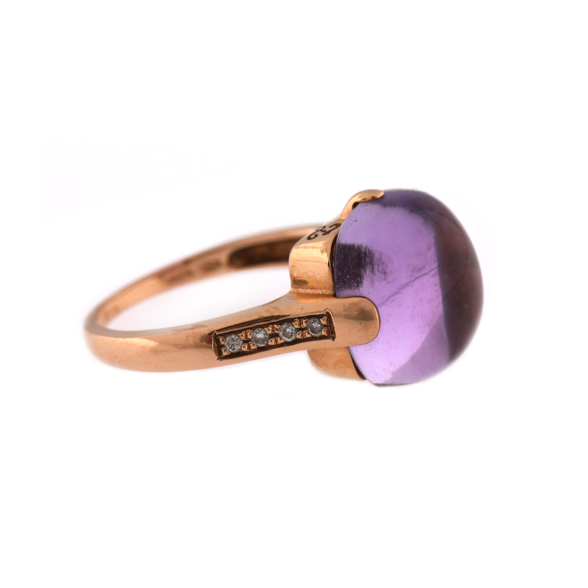99. Inel din aur roz, decorat cu ametist și diamante alăturate