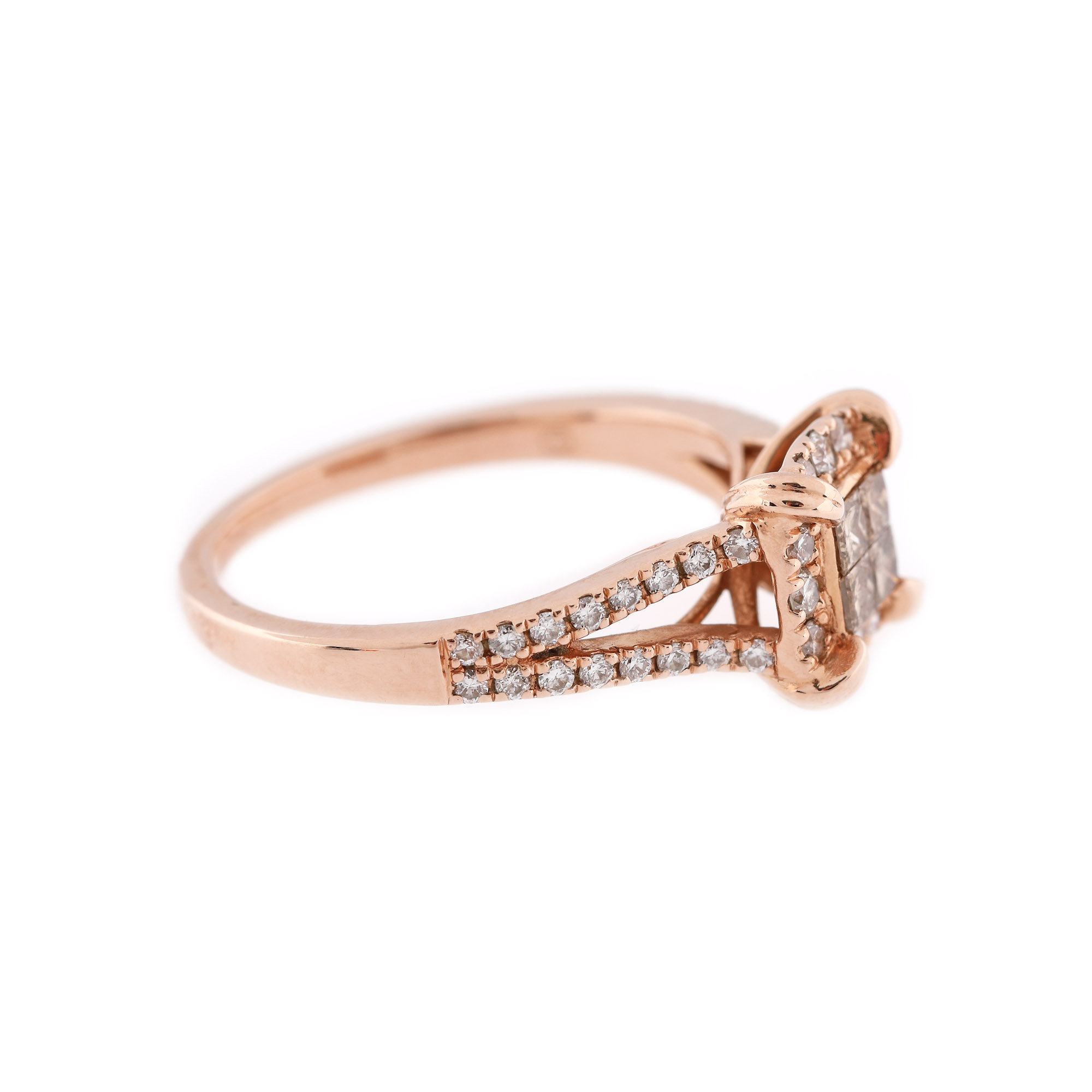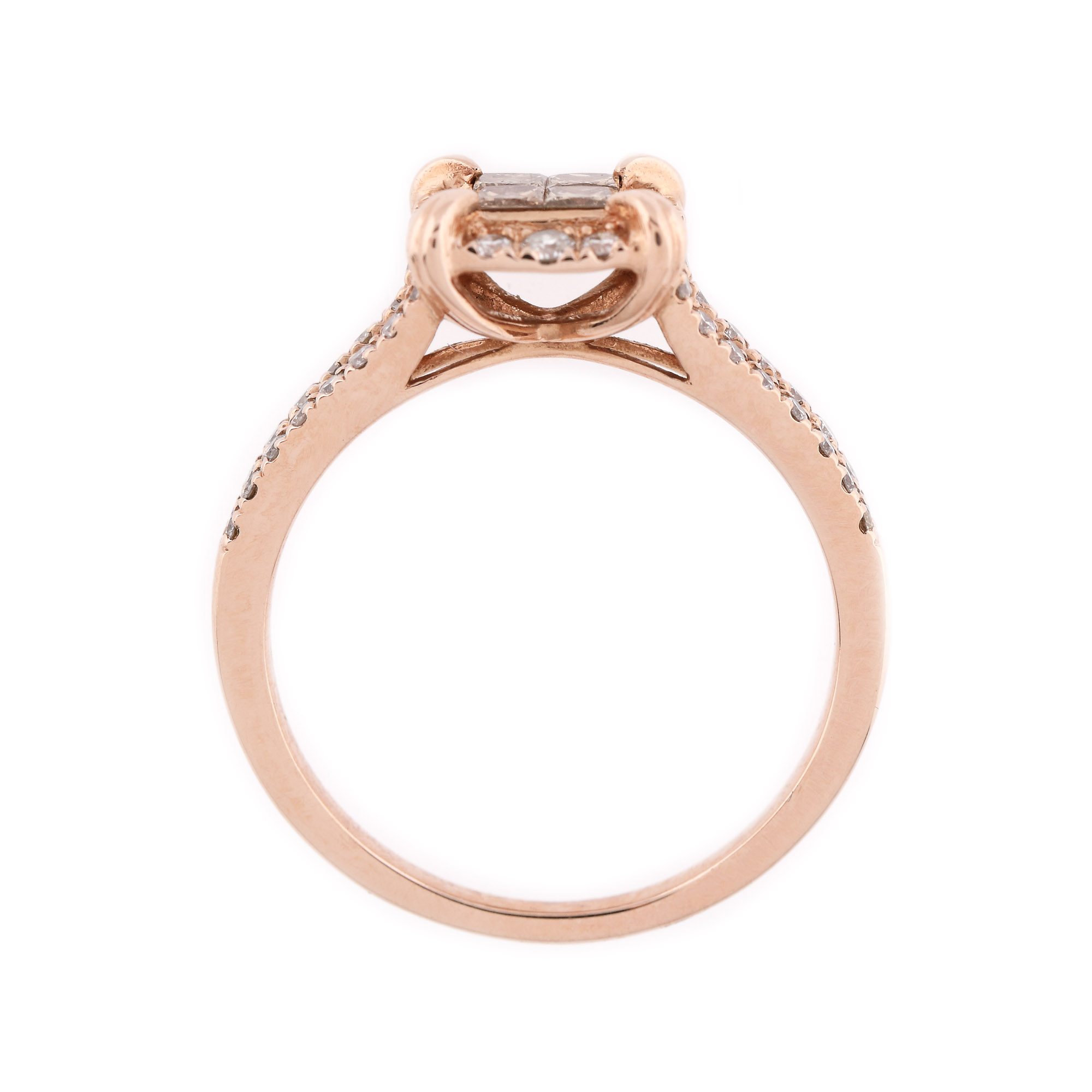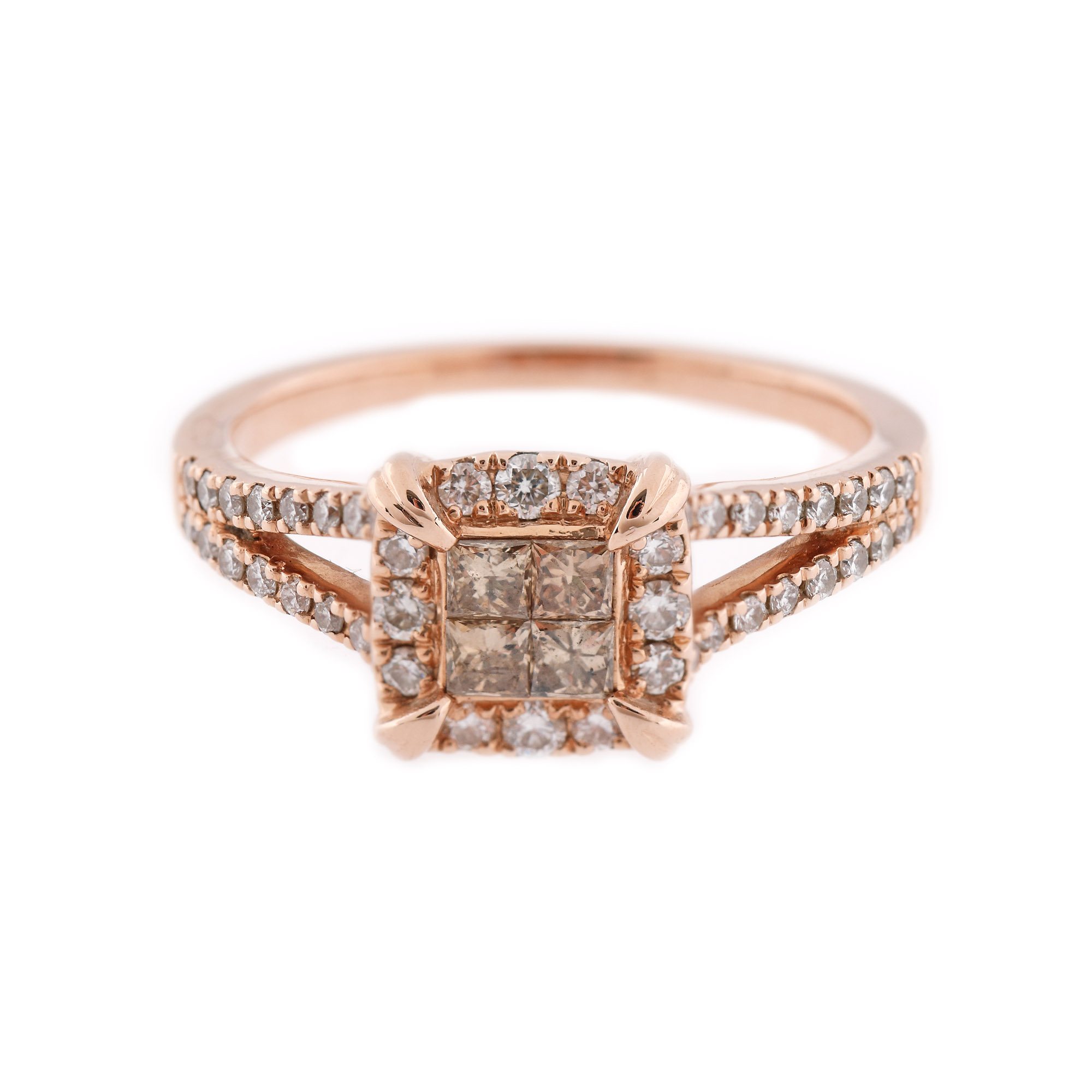106. Inel din aur roz, decorat cu diamante brune și briliante