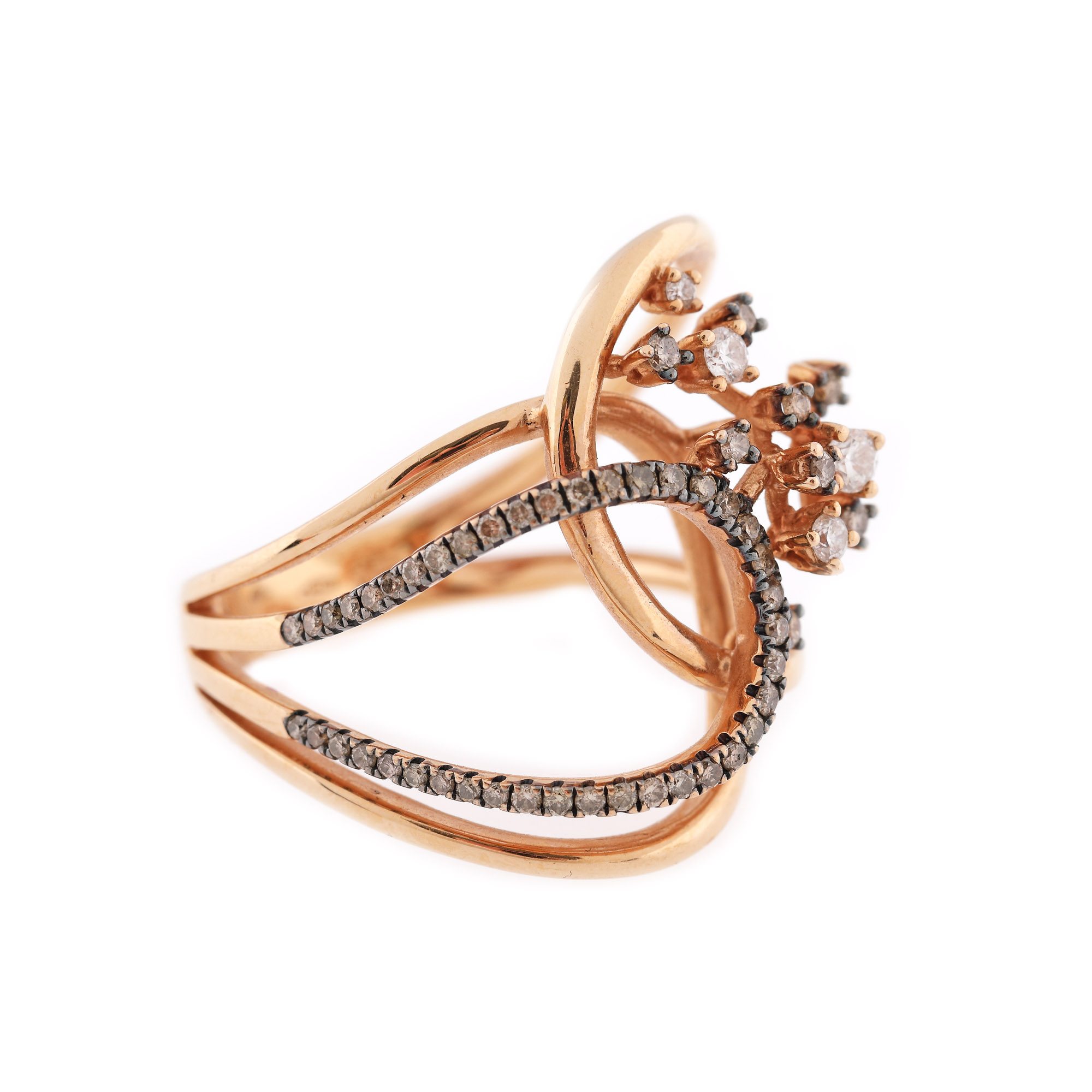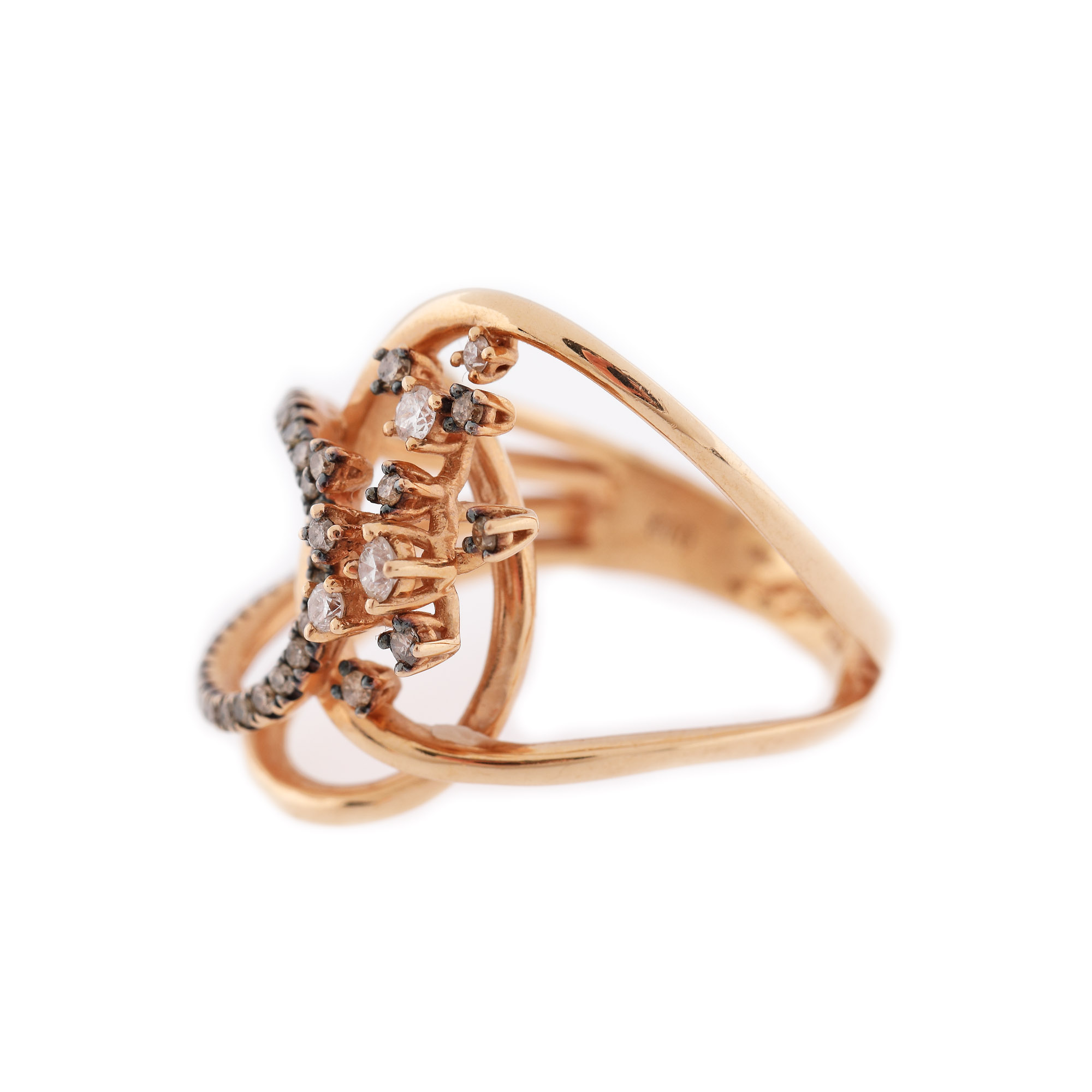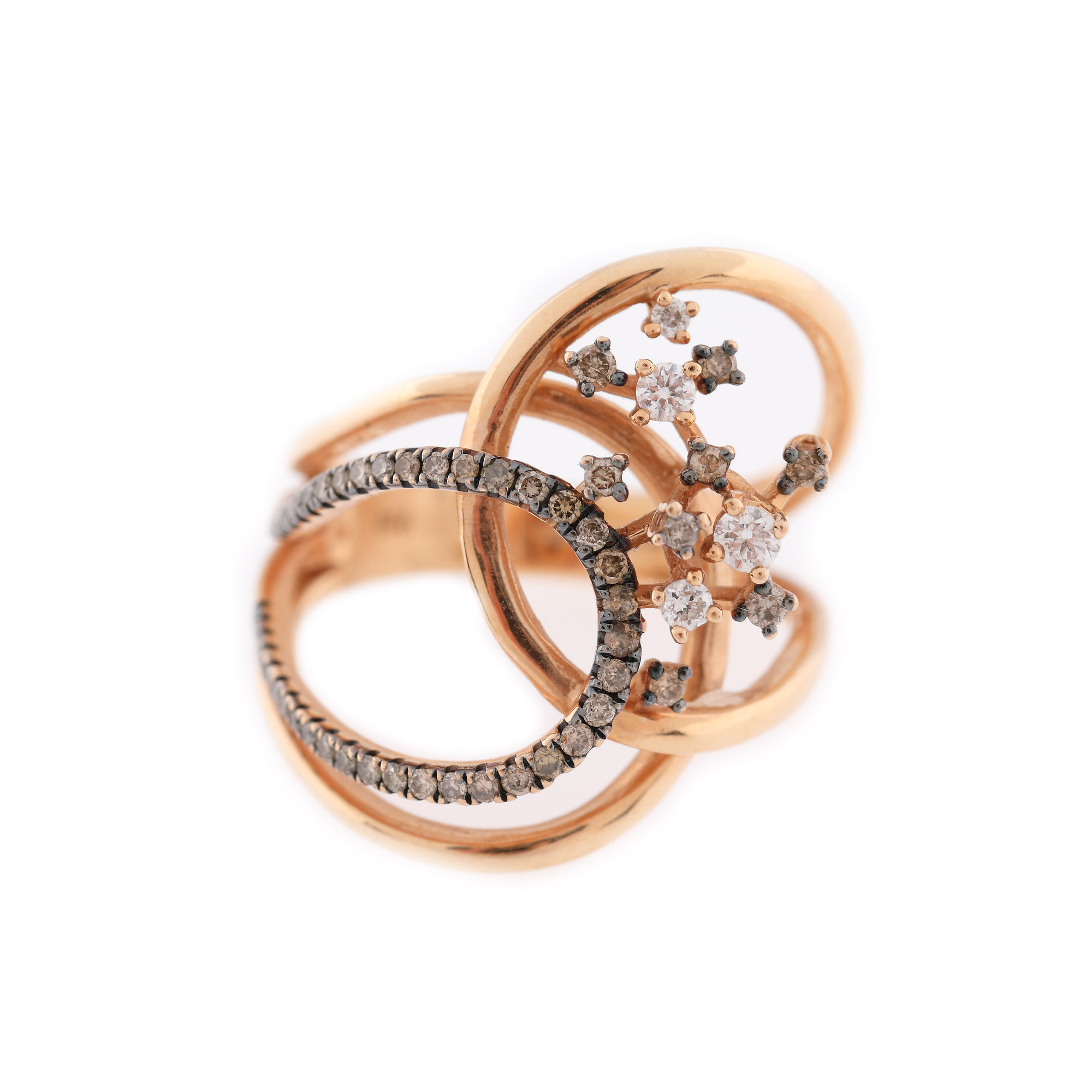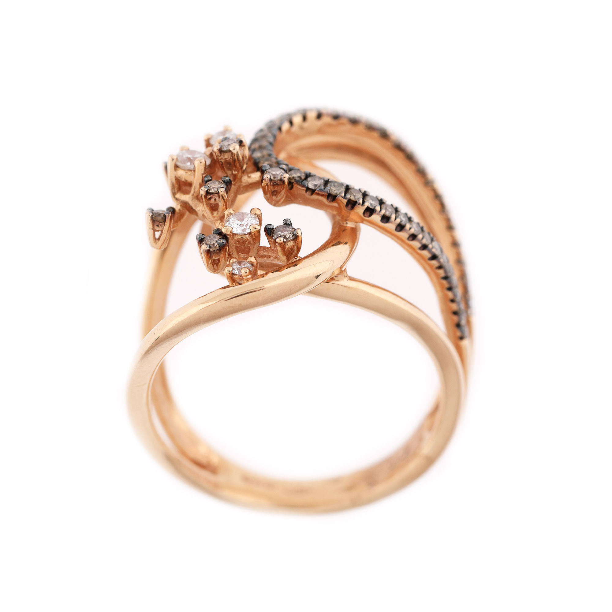 108. Inel din aur roz, decorat cu diamante maro și briliante