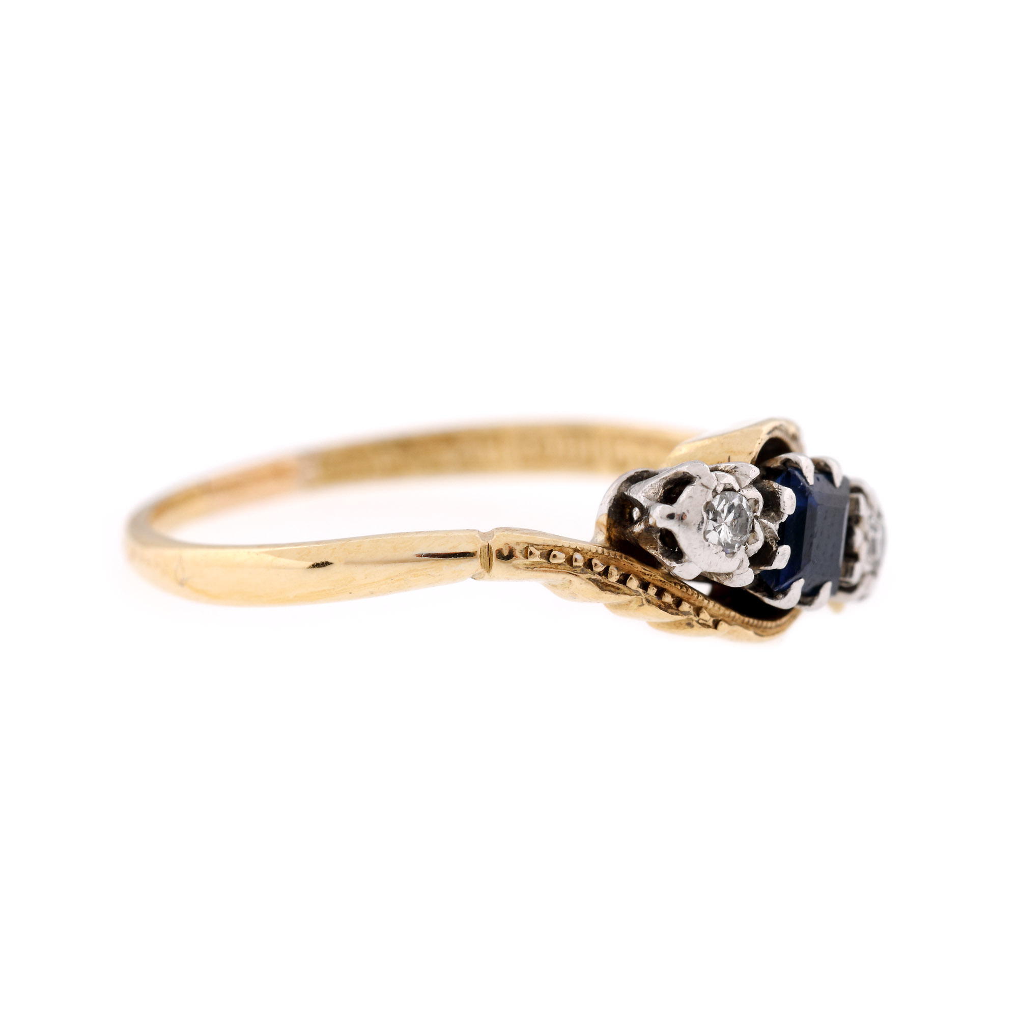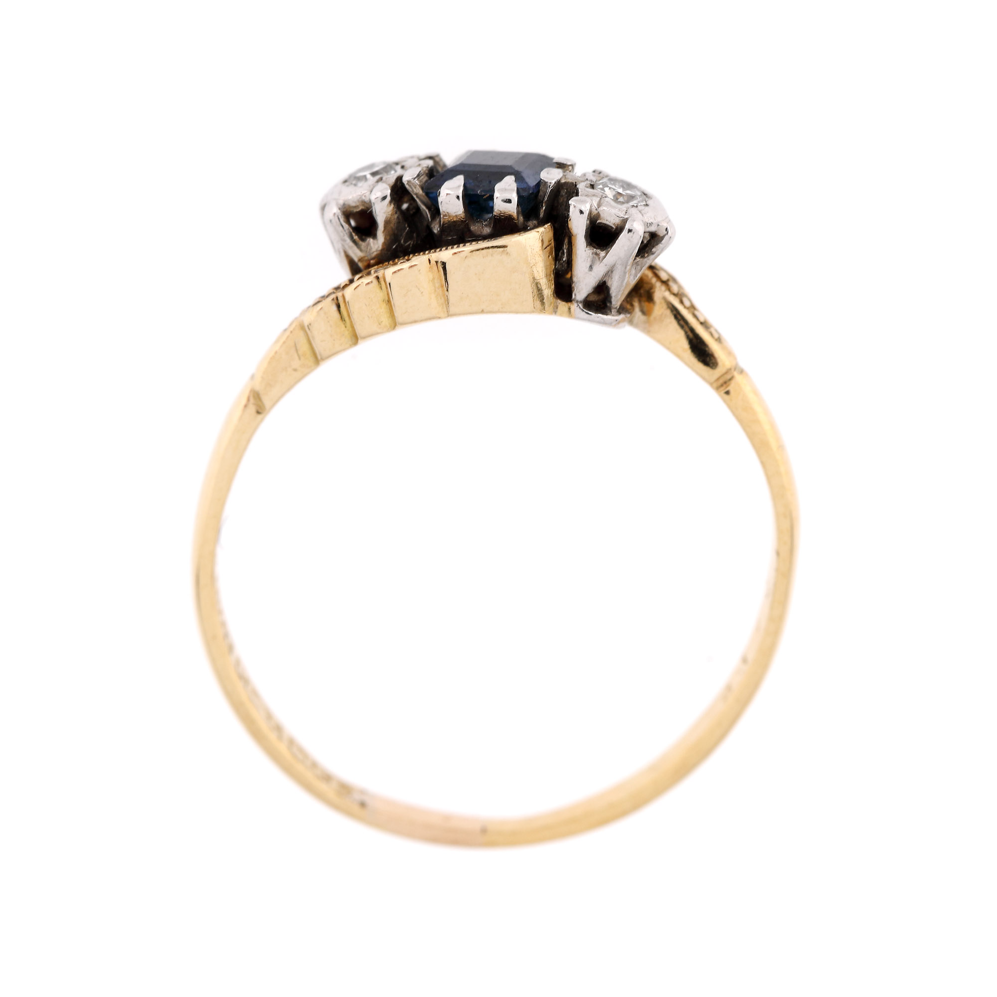 60. Inel din aur și platină, decorat cu safir și două diamante alăturate